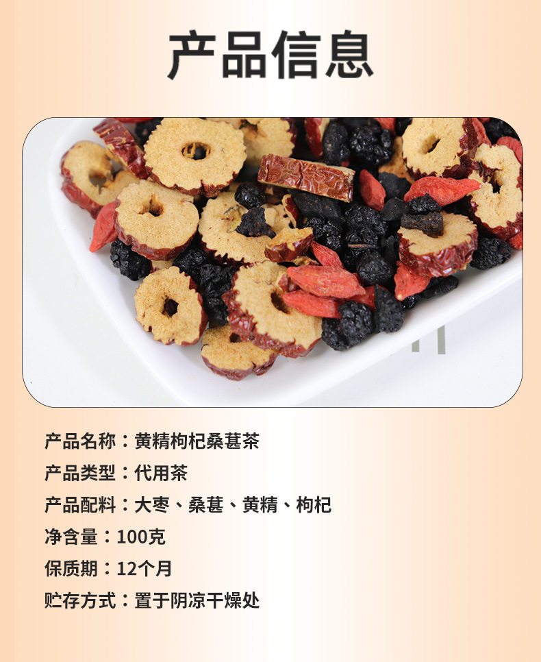 | Packaging specifications | Polygonatum, wolfberry, ginger and jujube tea 100g |