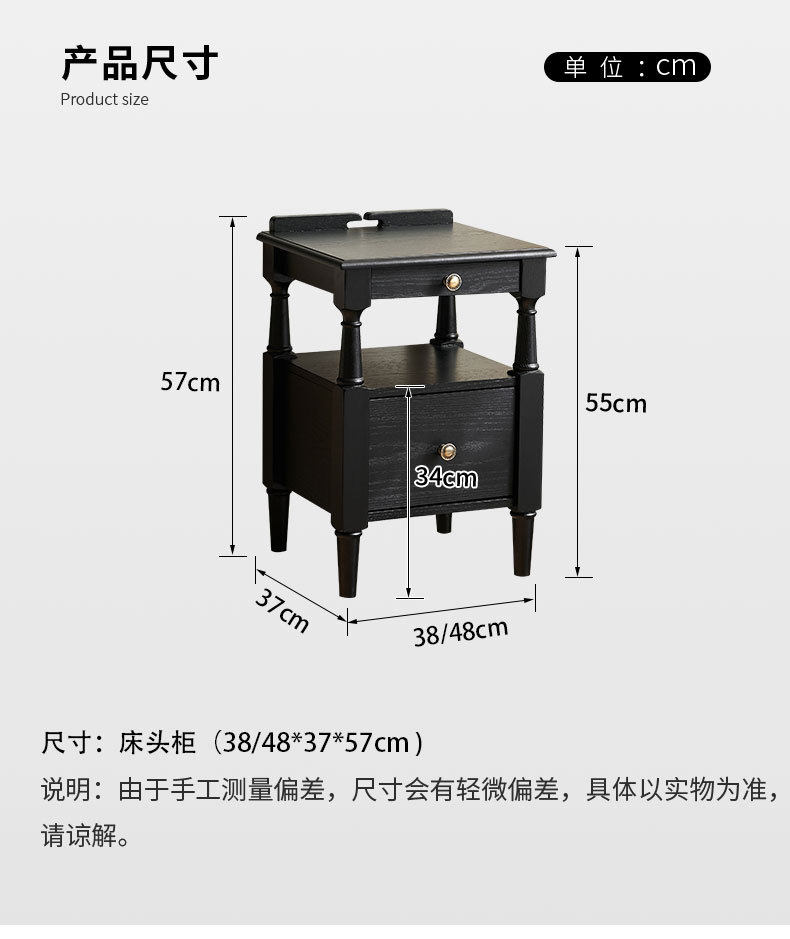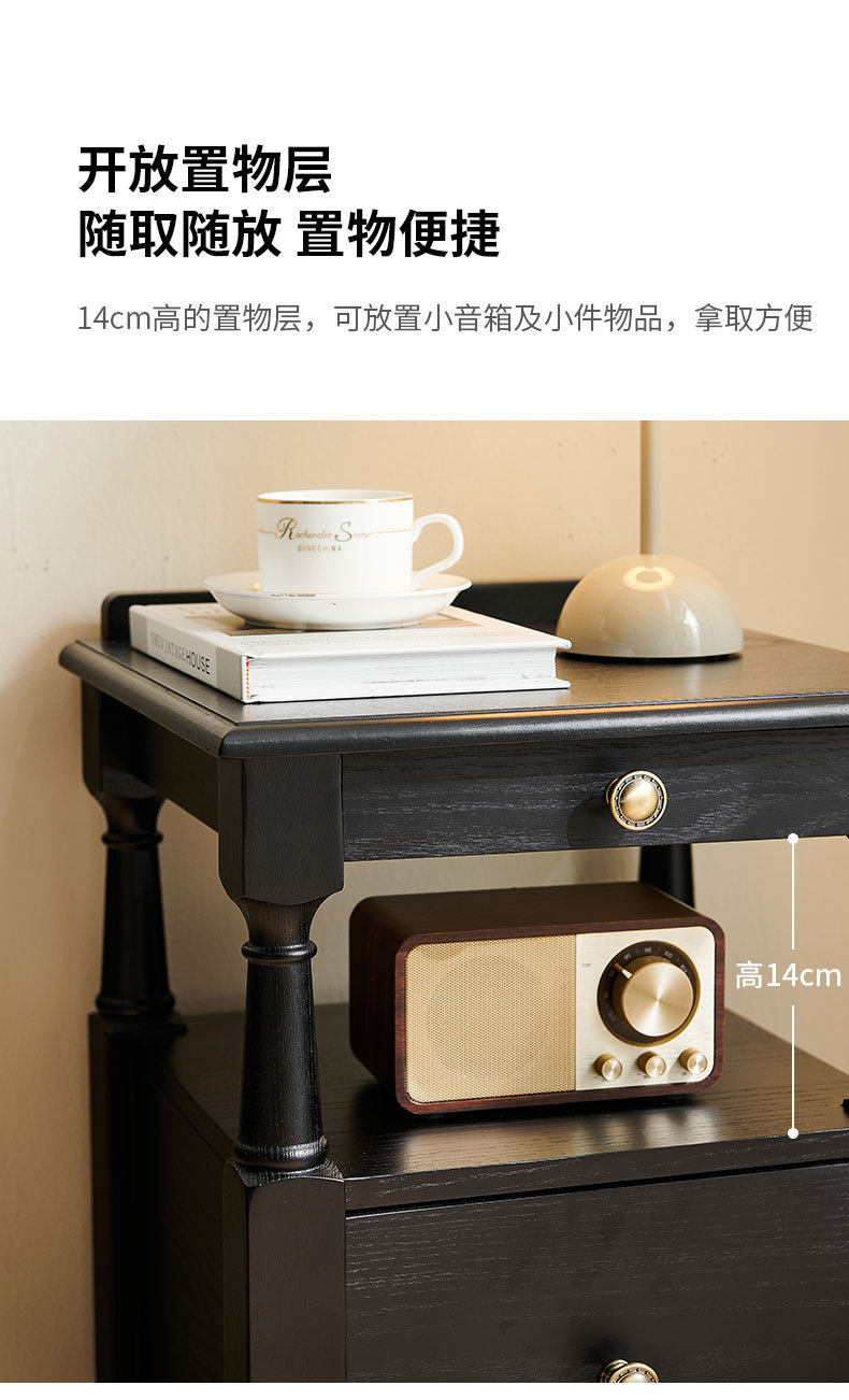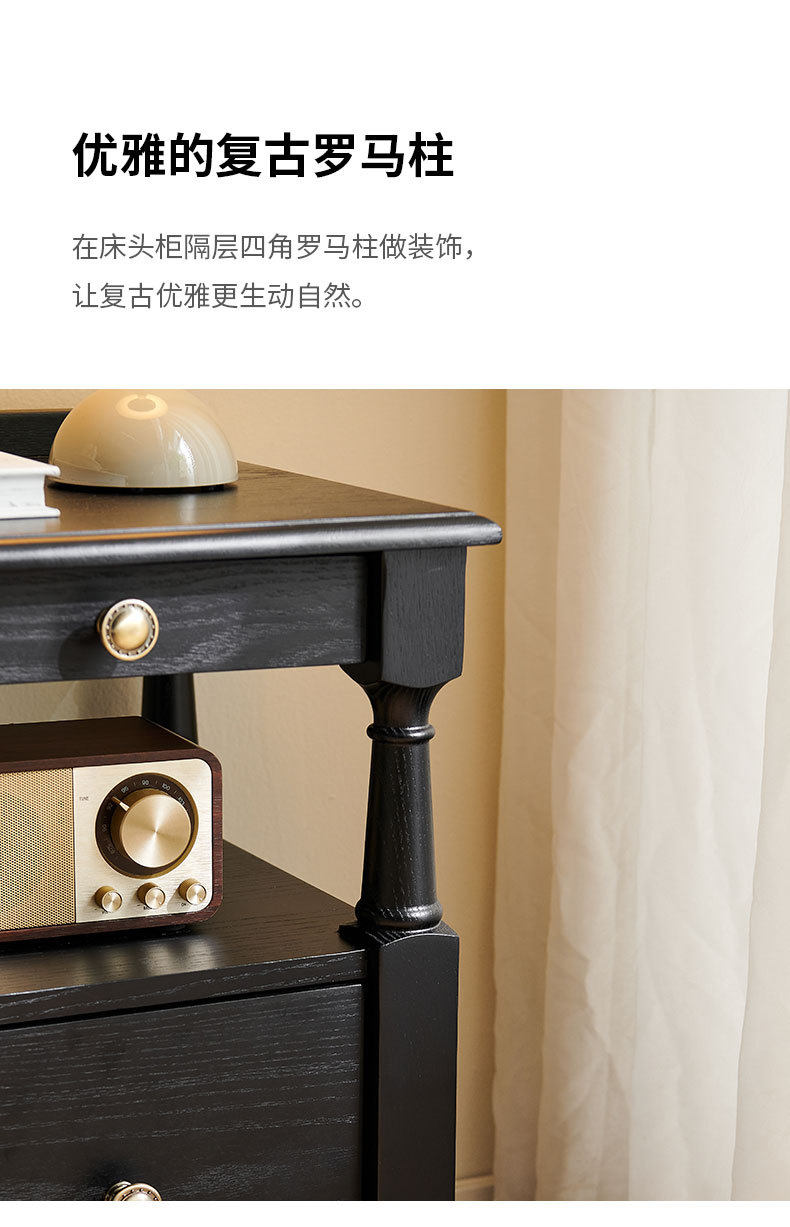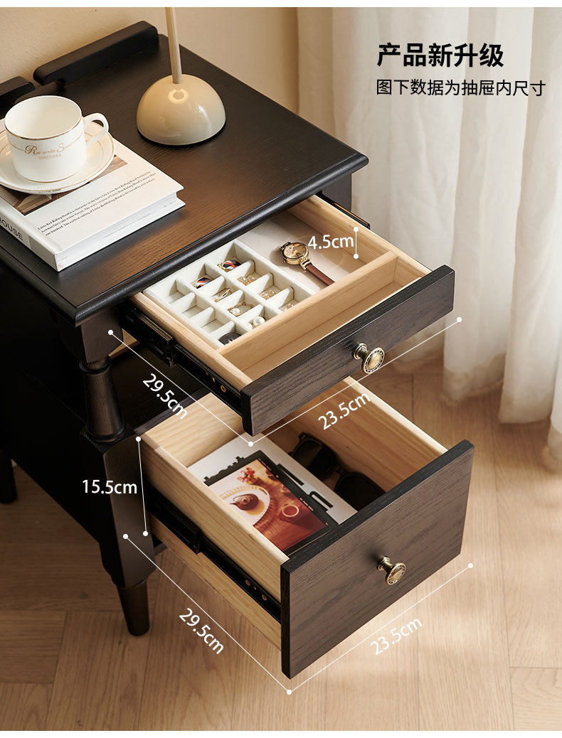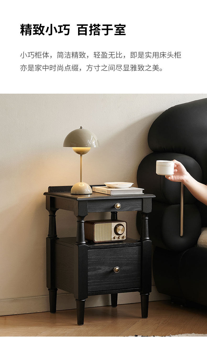 Small Apartment Bedside Table, French Retro Solid Wood, Extremely Narrow Double-Layer Drawer Bedside Storage Cabinet for Small Apartments