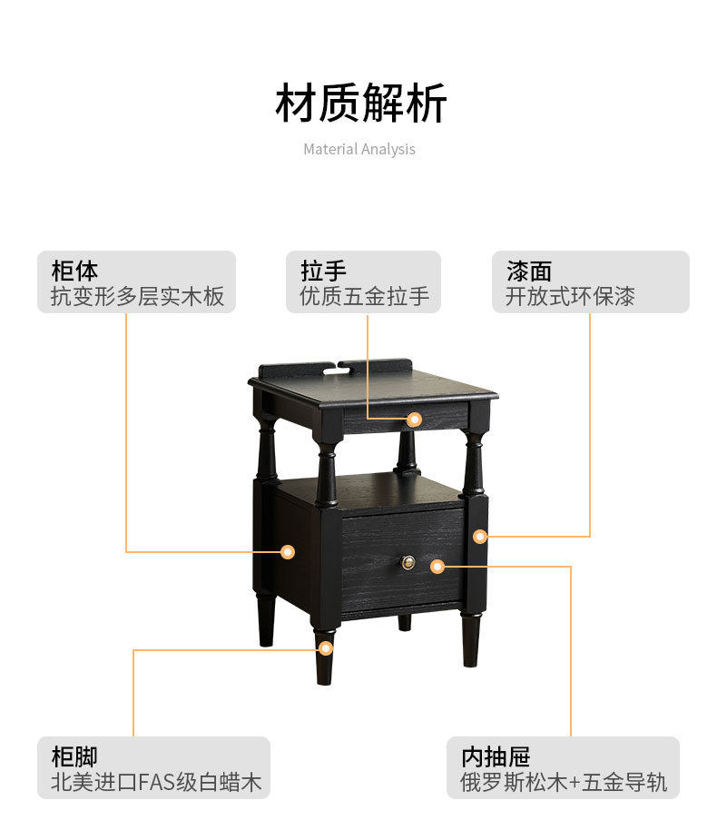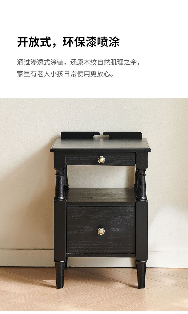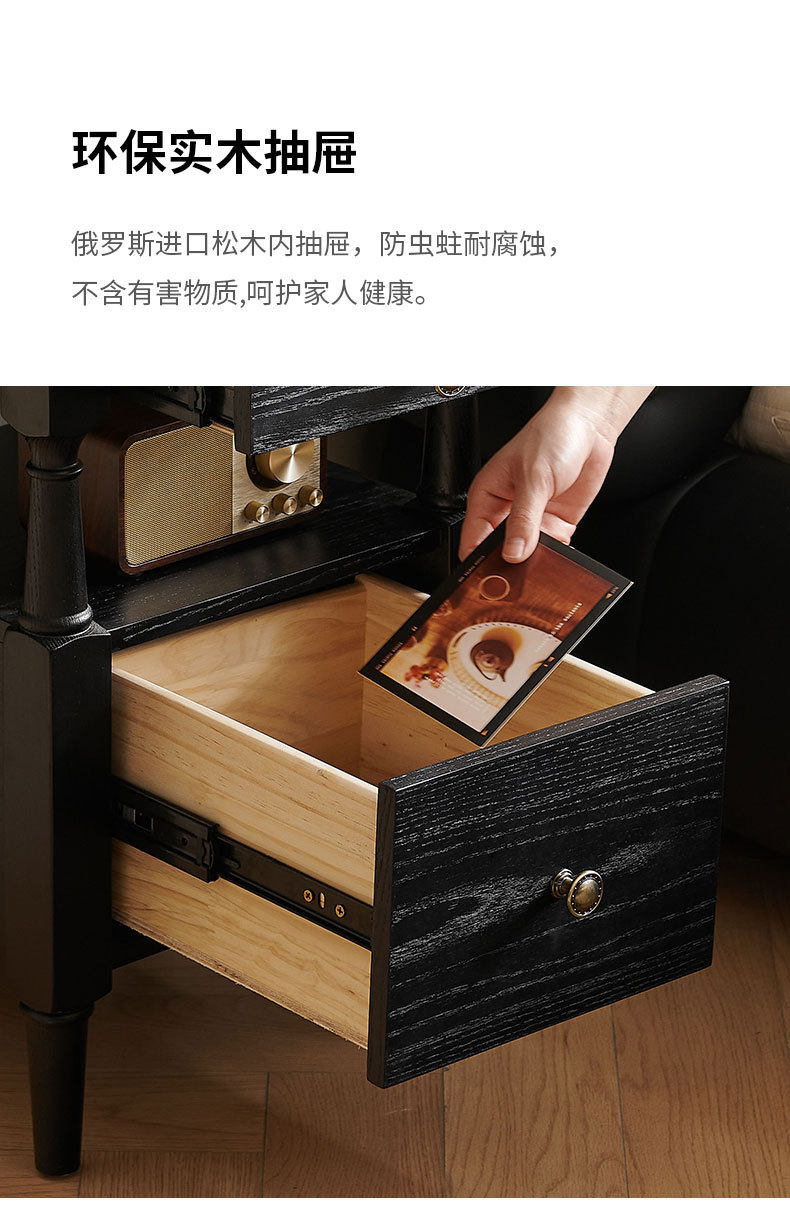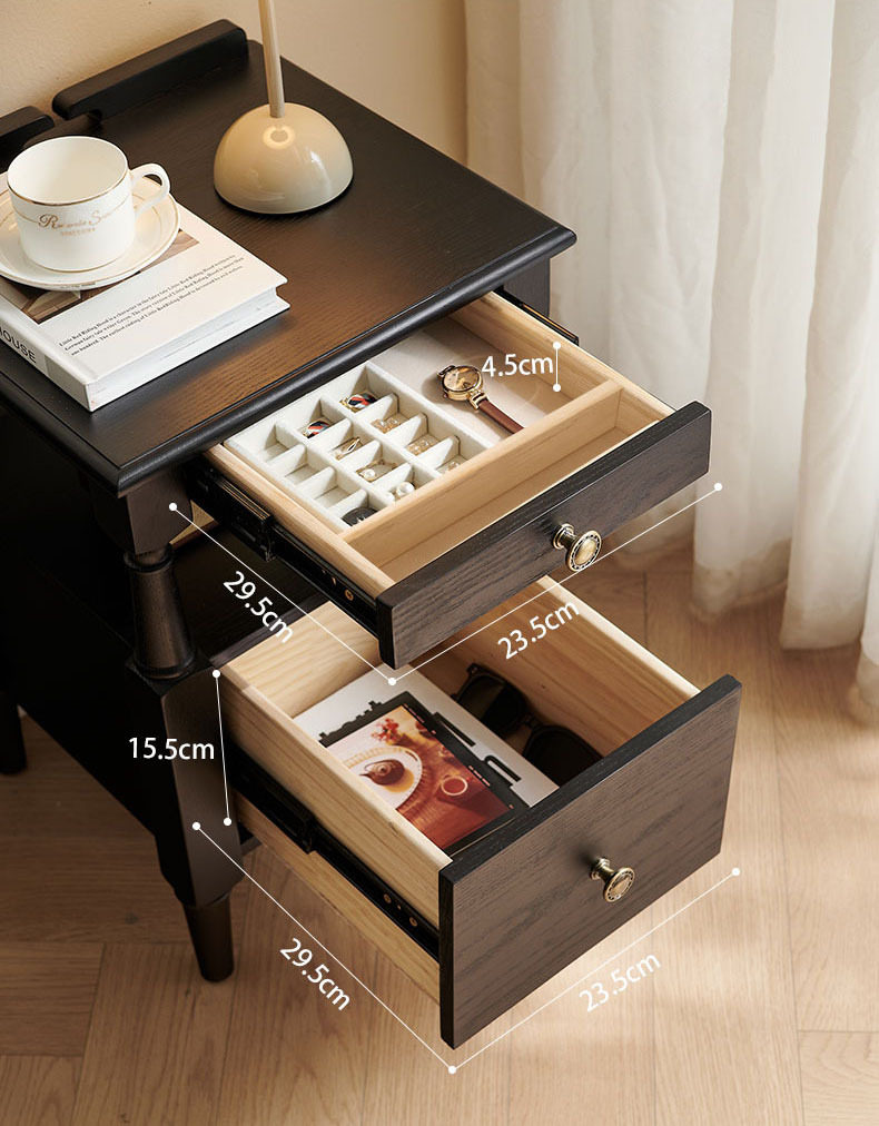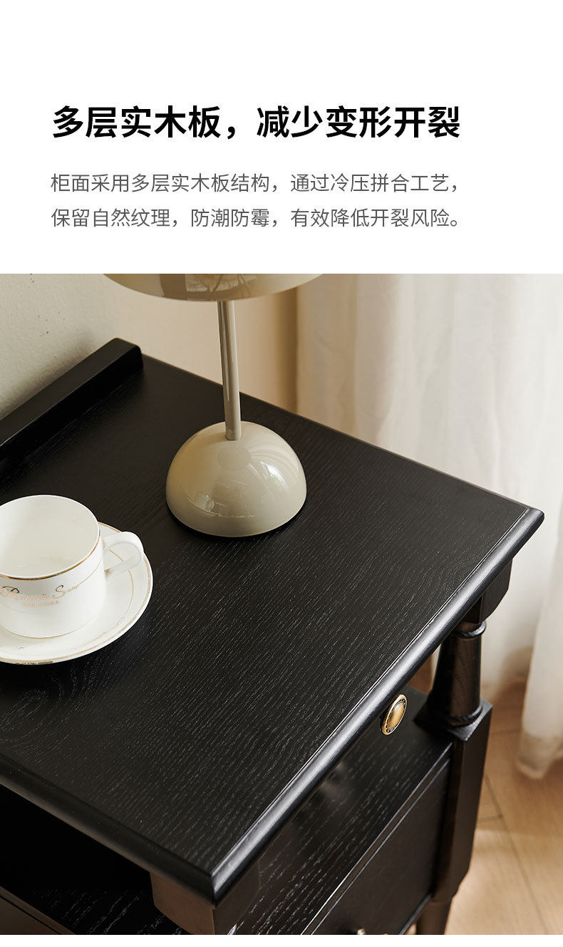Small Apartment Bedside Table, French Retro Solid Wood, Extremely Narrow Double-Layer Drawer Bedside Storage Cabinet for Small Apartments