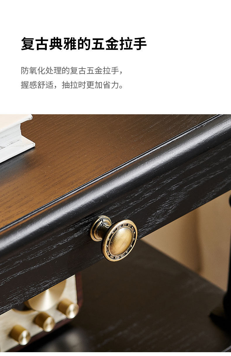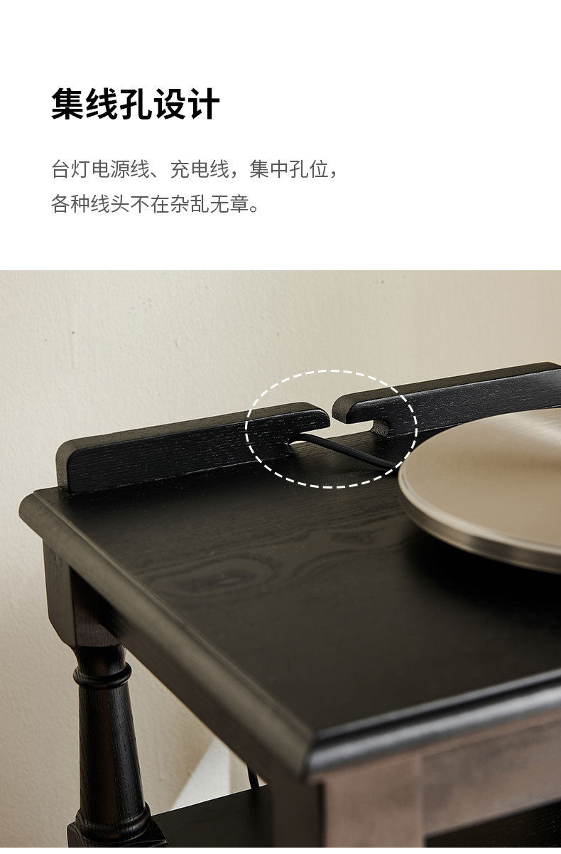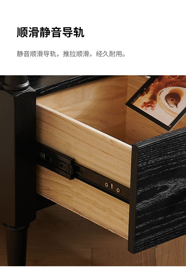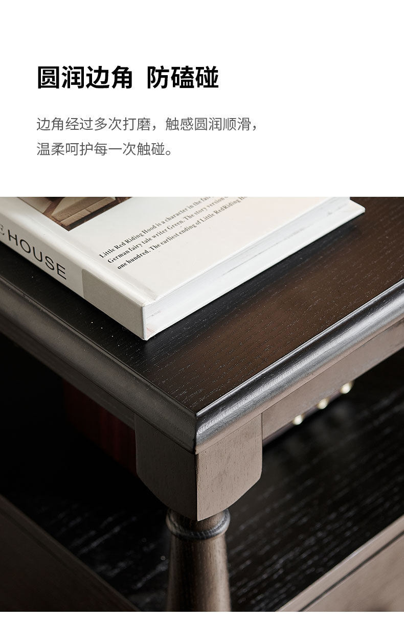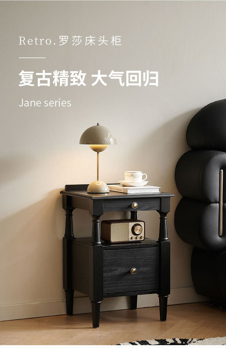 Small Apartment Bedside Table, French Retro Solid Wood, Extremely Narrow Double-Layer Drawer Bedside Storage Cabinet for Small Apartments