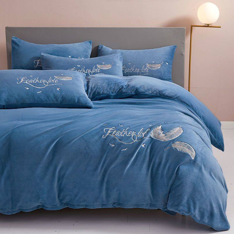 Winter Thickeneded Warm Milk Velvet Four-Piece Bed Bed Sheets Quilt Cover Coral Velvet Bedding Three-Piece Set Amazon