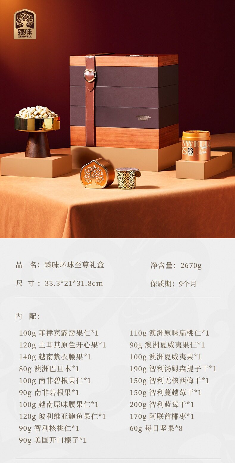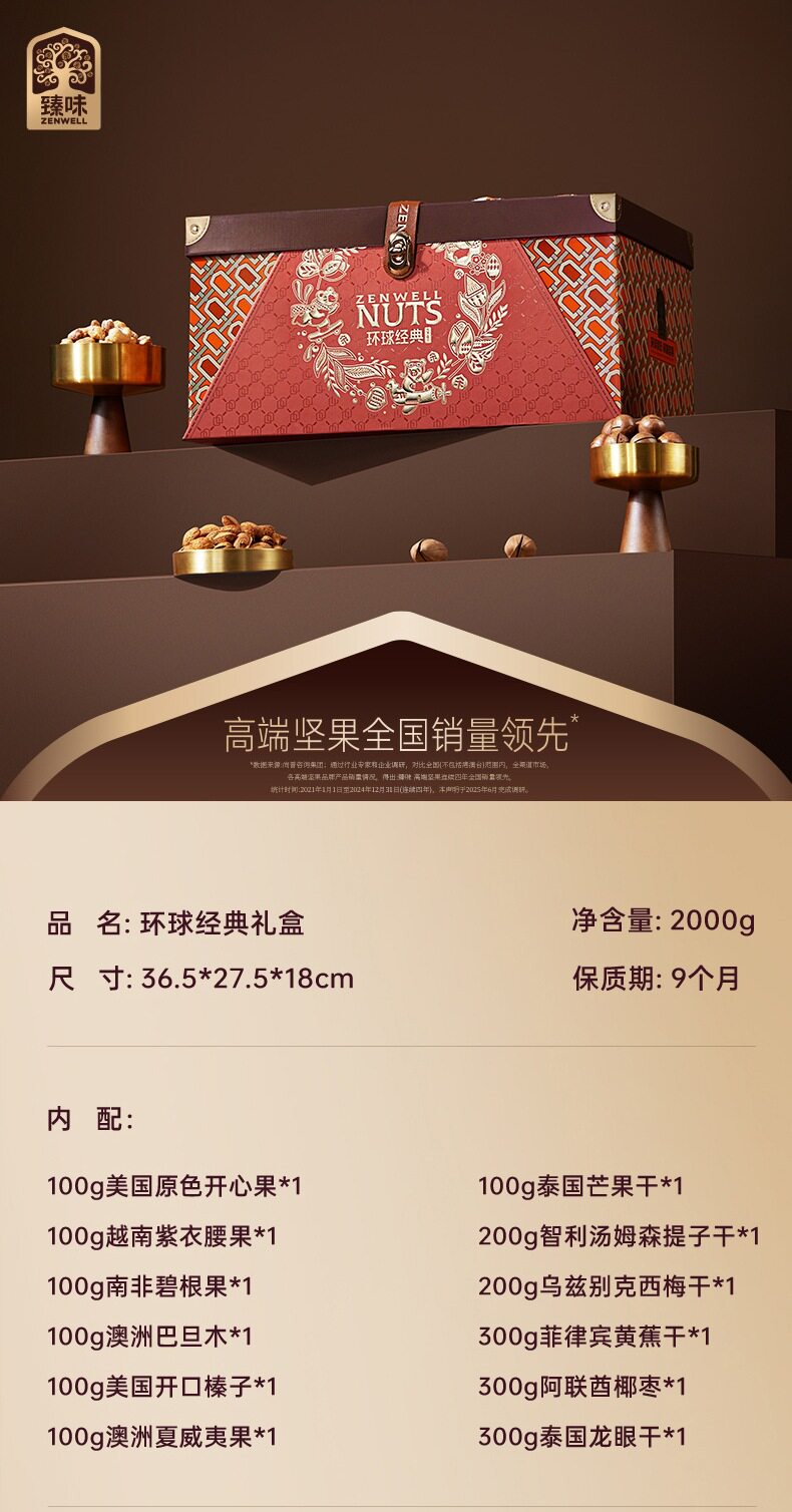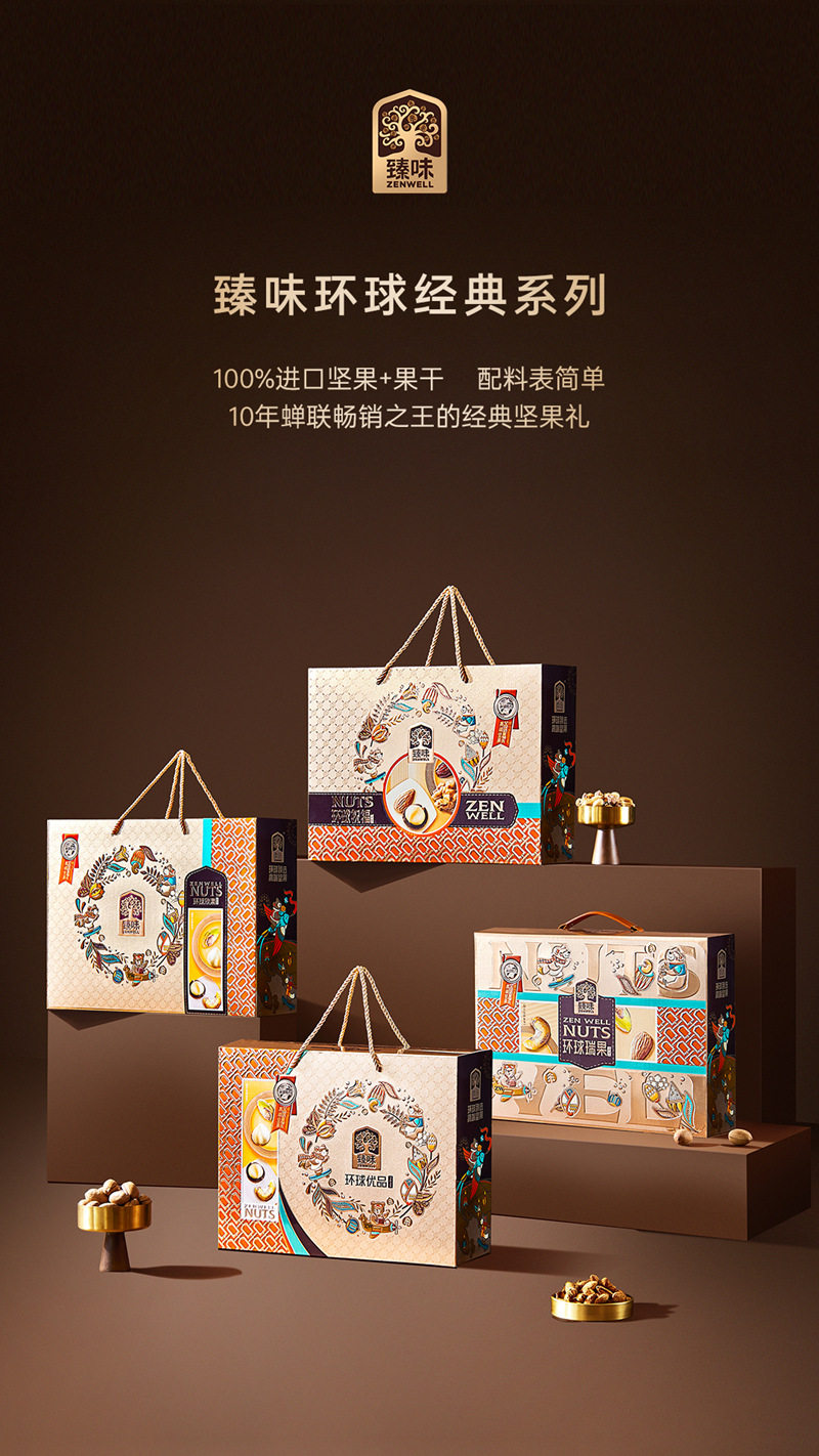 Zhenwei Classic Global Series Nut Gift Box Mixed Dried Fruit Snacks Spring Festival New Year Gifts Various Wholesale Options