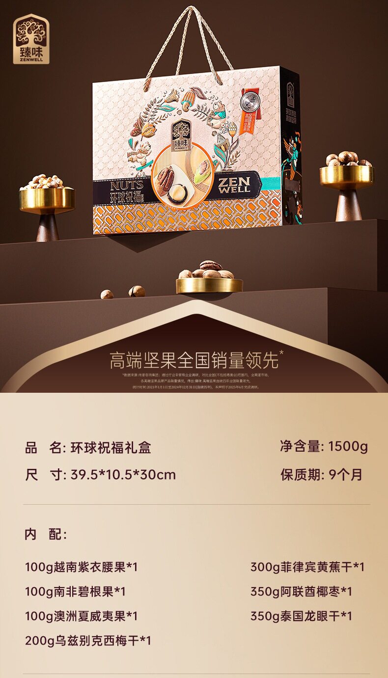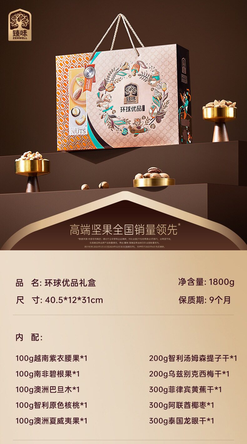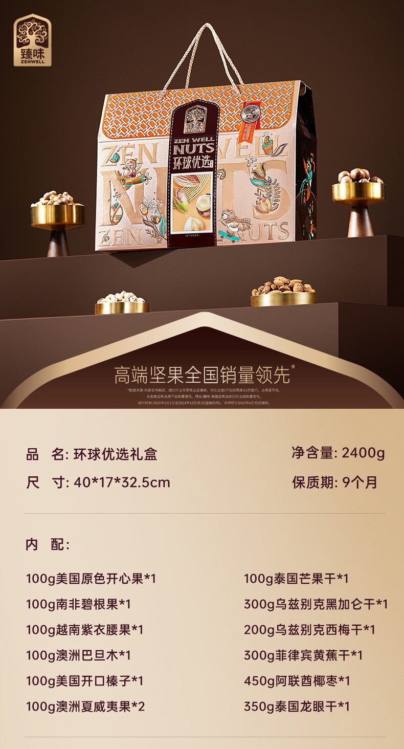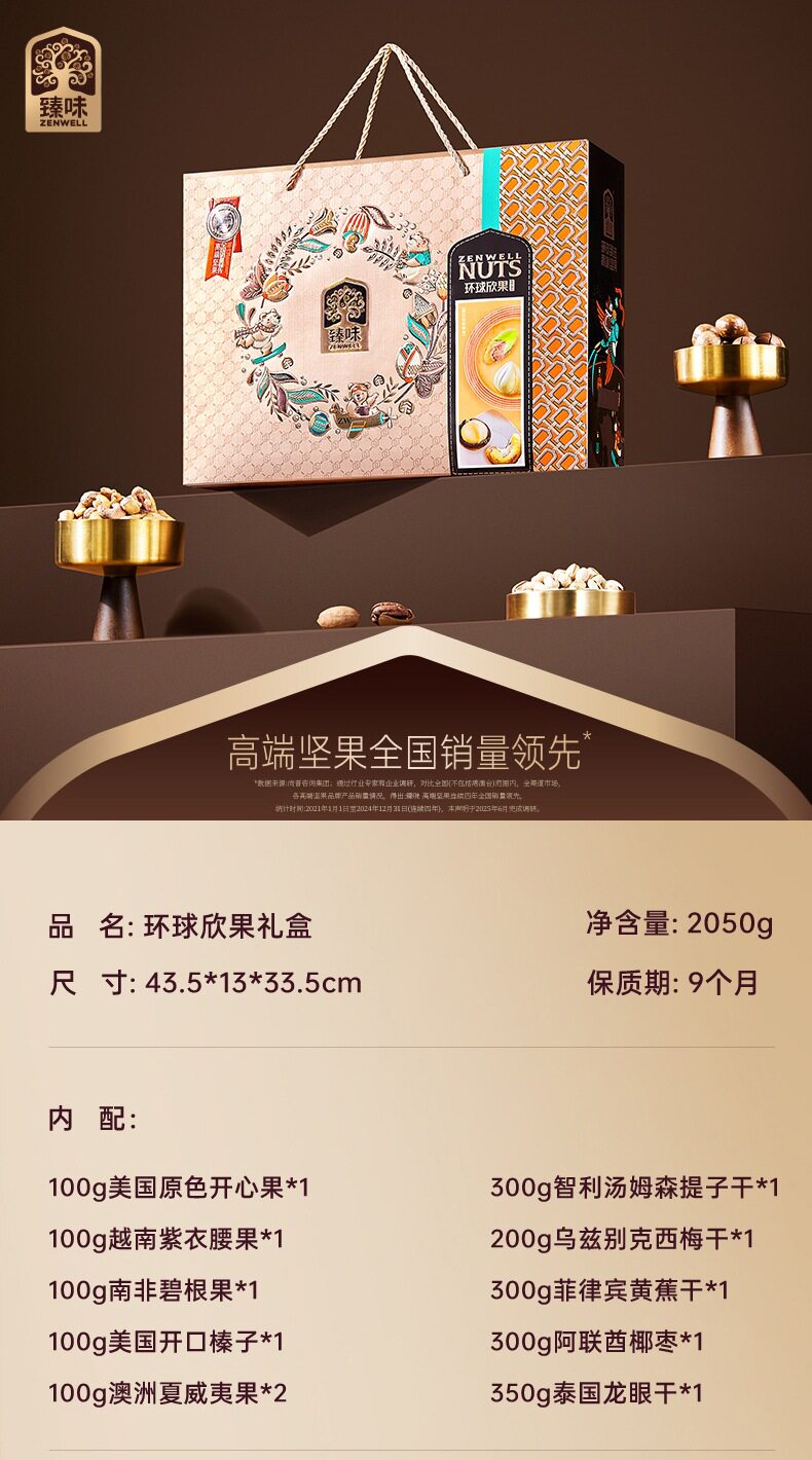 Zhenwei Classic Global Series Nut Gift Box Mixed Dried Fruit Snacks Spring Festival New Year Gifts Various Wholesale Options