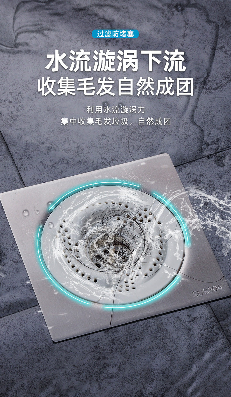 Japanese-Style Swirl Floor Drain Bathroom Hair Catcher Kitchen Toilet Sewer Rotating Insect-Proof Anti-Clogging Filter Net