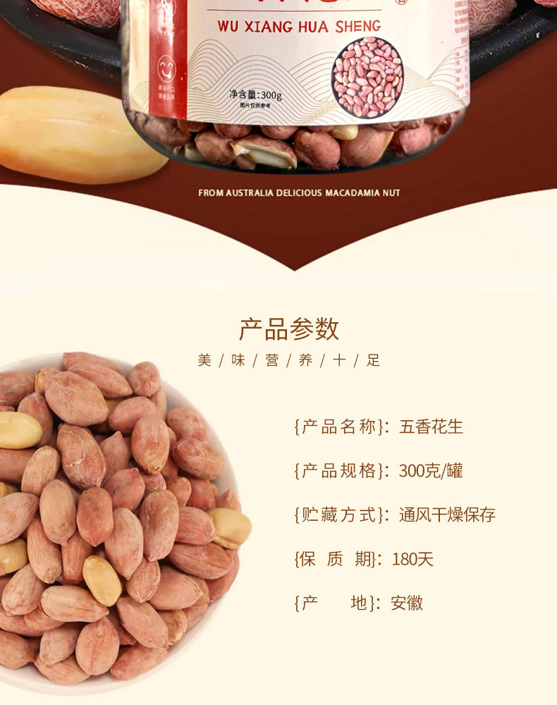 | Packaging specifications | Our unique five-spice peanuts 300g/can |