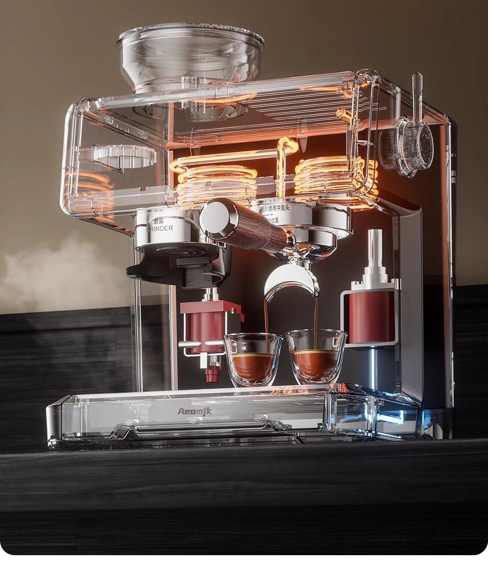 [New Model]Aeomjk Dual Pump Boiler Hot and Cold Extraction Home Coffee Machine Italian Style Grinding Integrated Commercial High Pressure