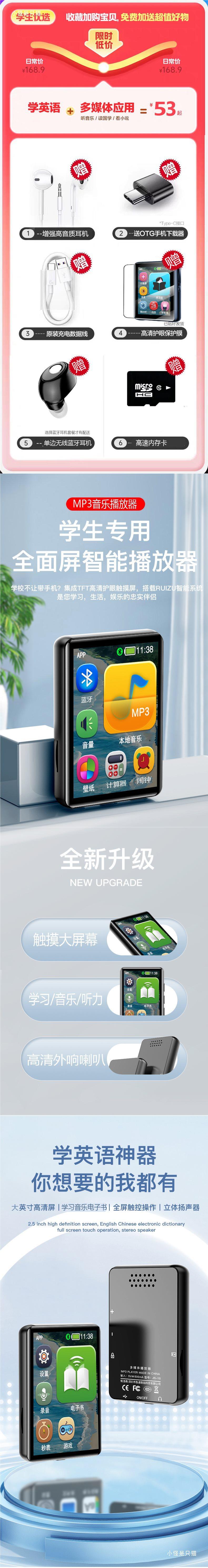 Student Mp4 Touch Screen Walkman Music Player Bluetooth Version Wireless Novel Listening to Music Mp3