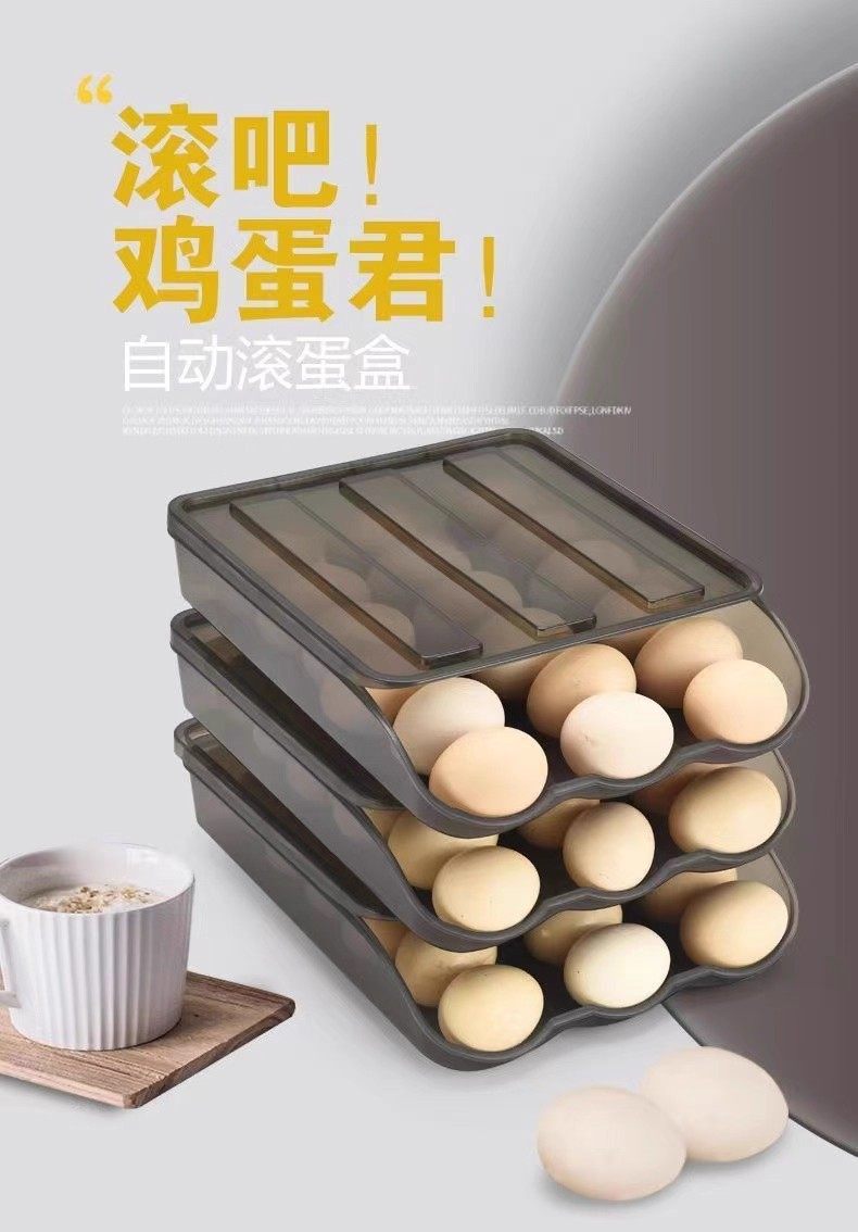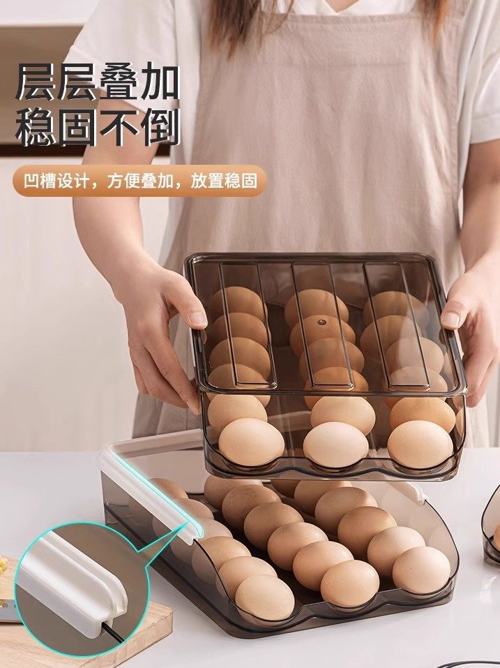 Refrigerator Egg Organizer Box Automatic Refill Egg Tray Flip Rolling Rack Storage Box Kitchen Organizer Space Saving