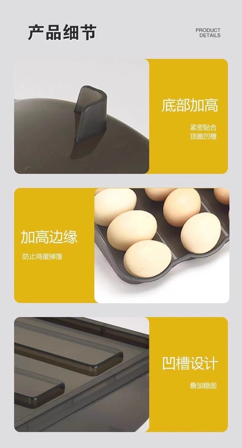 | Specifications | Transparent color second layer [can hold 36 pieces] automatically fills the space to extend freshness,Transparent white layer [can hold 18 pieces] automatically fills the space to extend freshness,Light brown color, two layers [can hold 36 pieces] automatically replenishes the space to extend the freshness,One layer of light brown color [can hold 18 pieces] automatically replenishes the space to extend freshness |