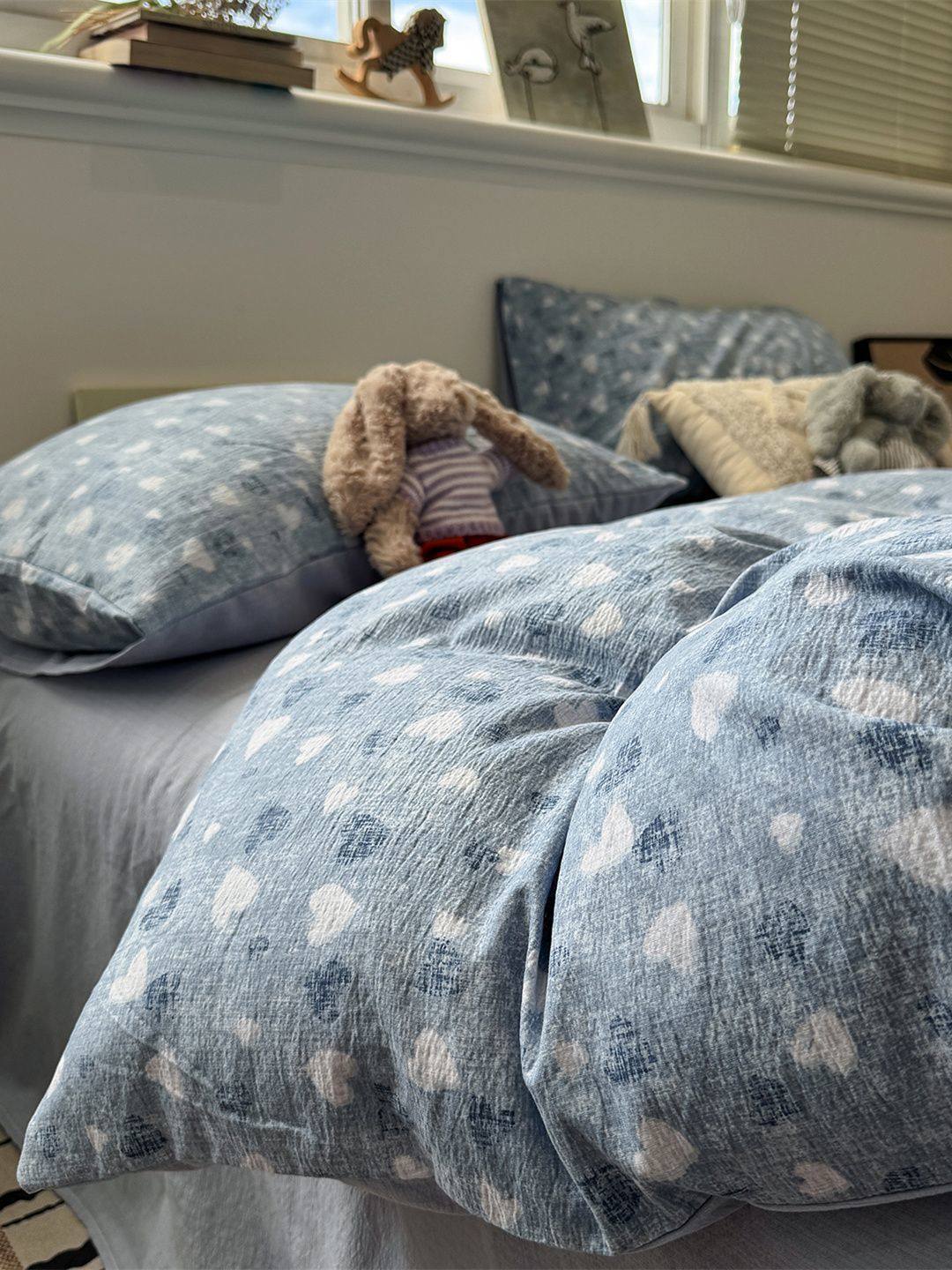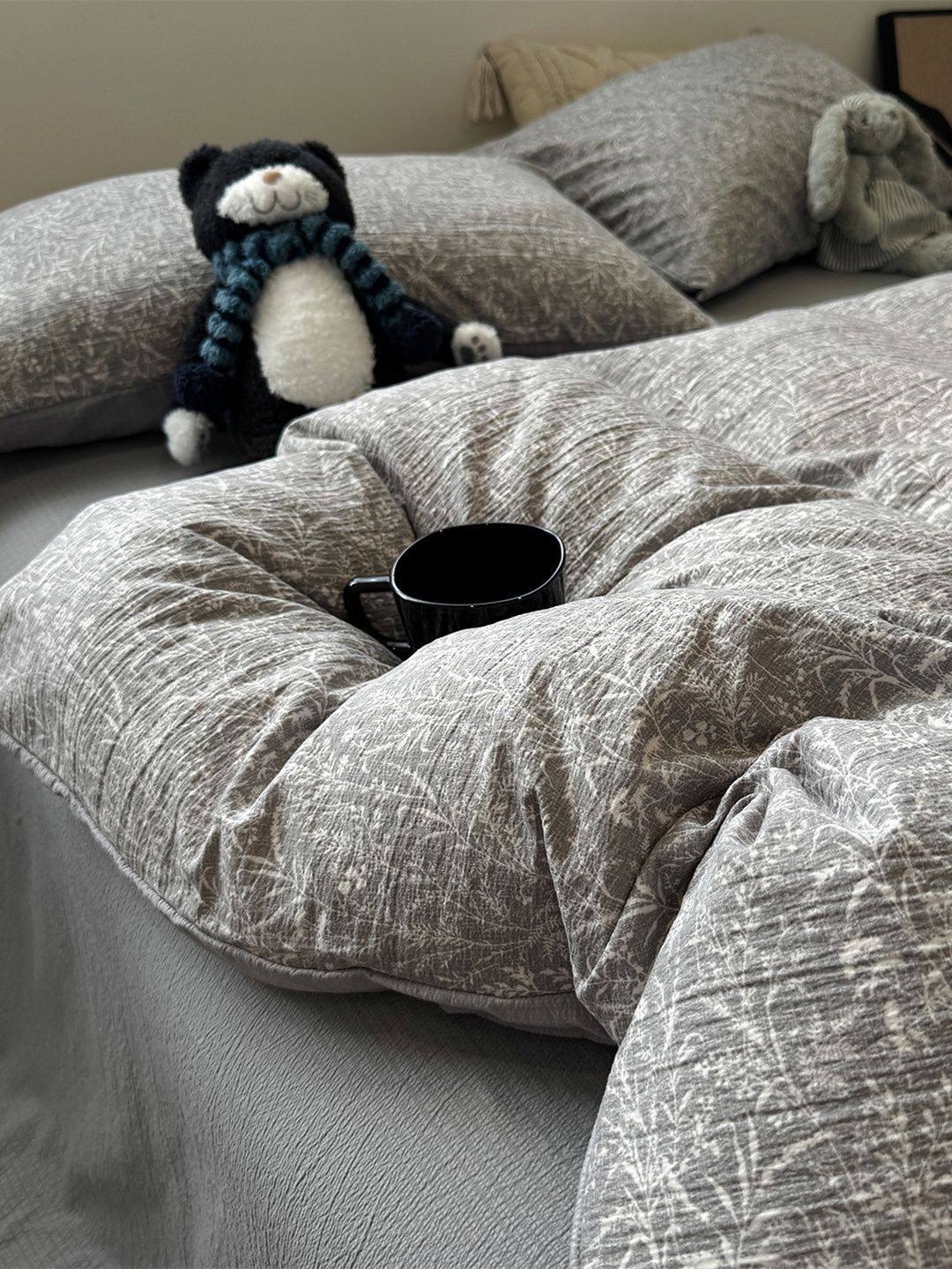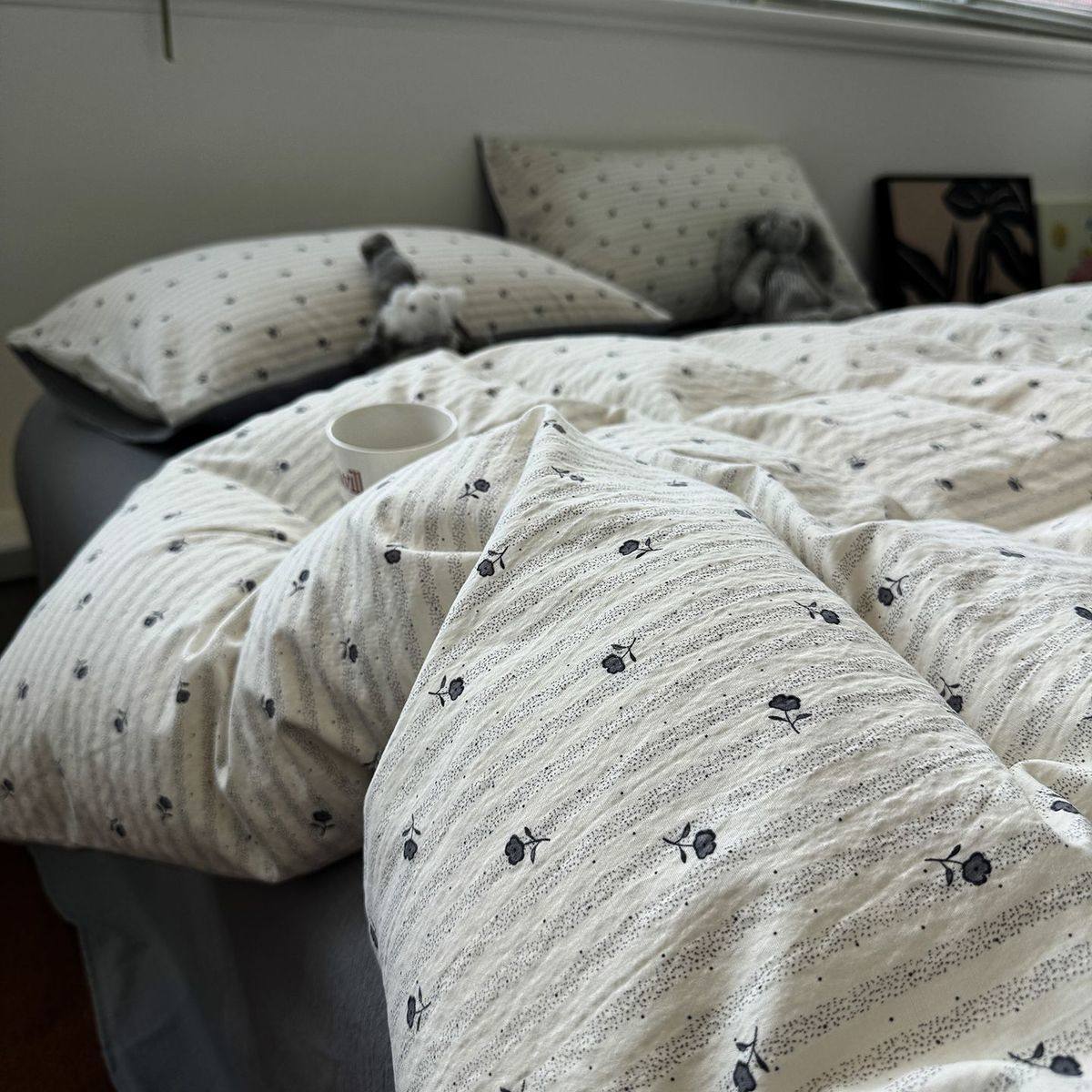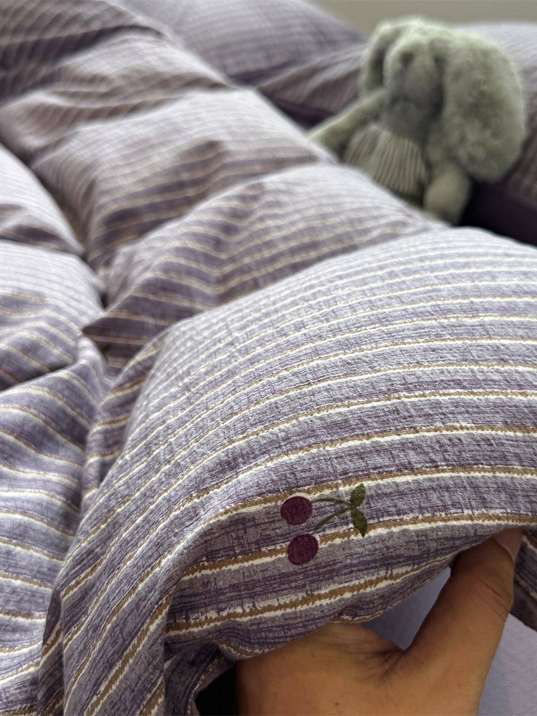 Washed Cotton Bed Four-Piece Fitted Sheet Set, Light Luxury Style Double-Layer Gauze Quilt Cover, Soft Bedroom Dormitory Bed Bed Sheets Three-Piece Set
