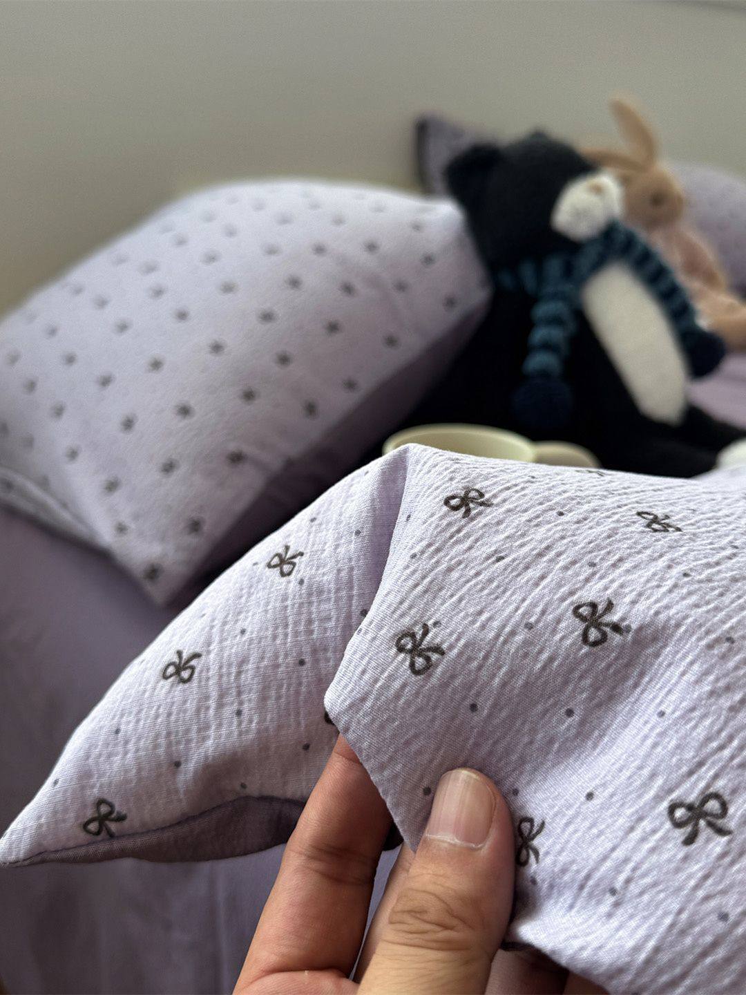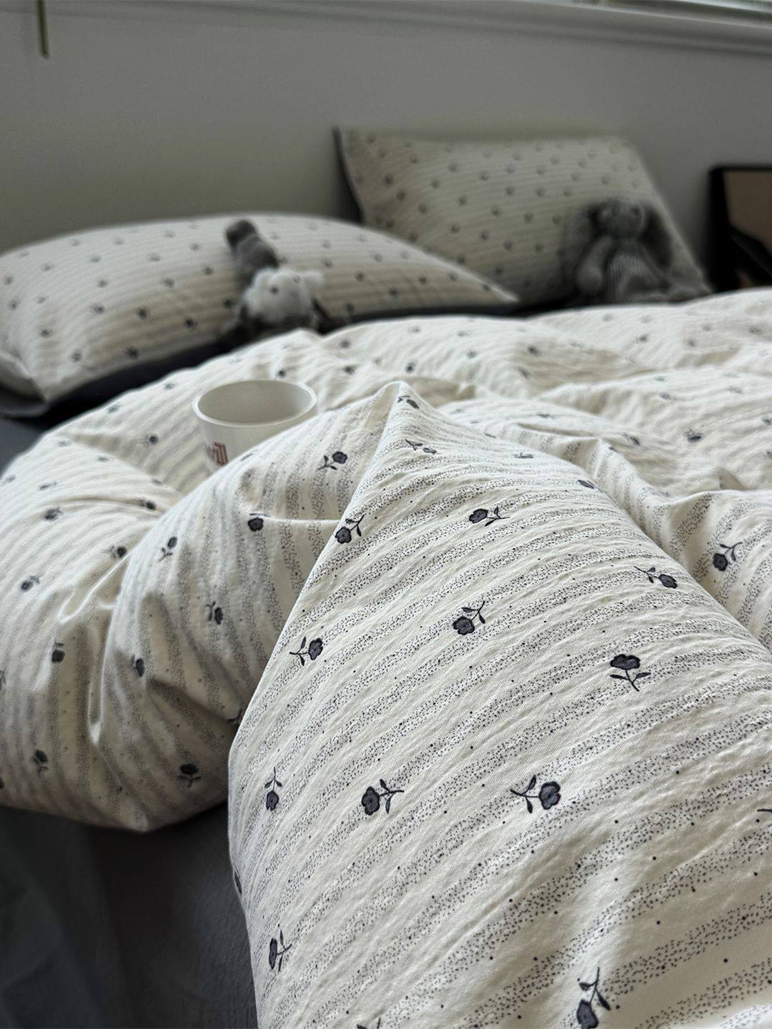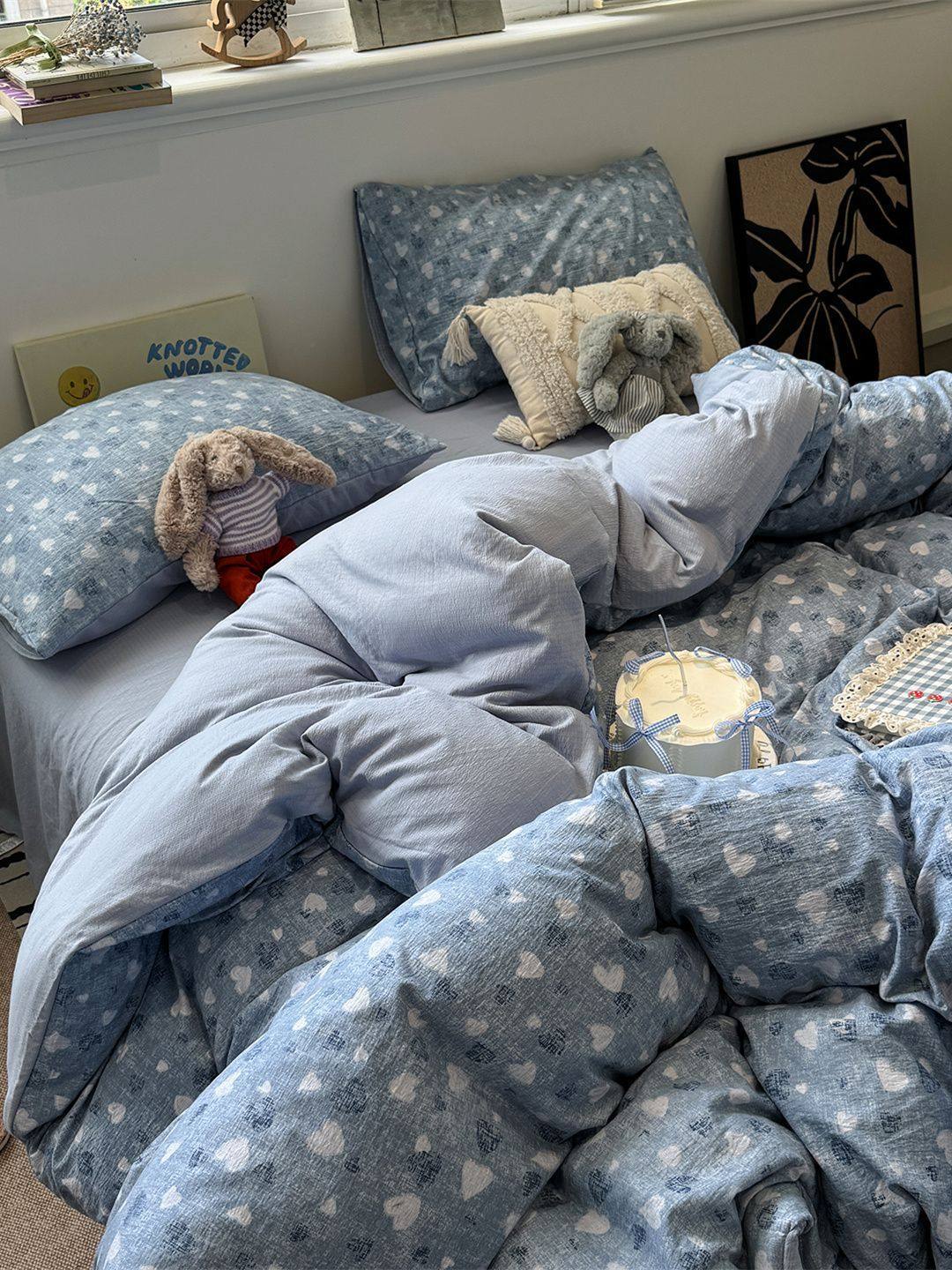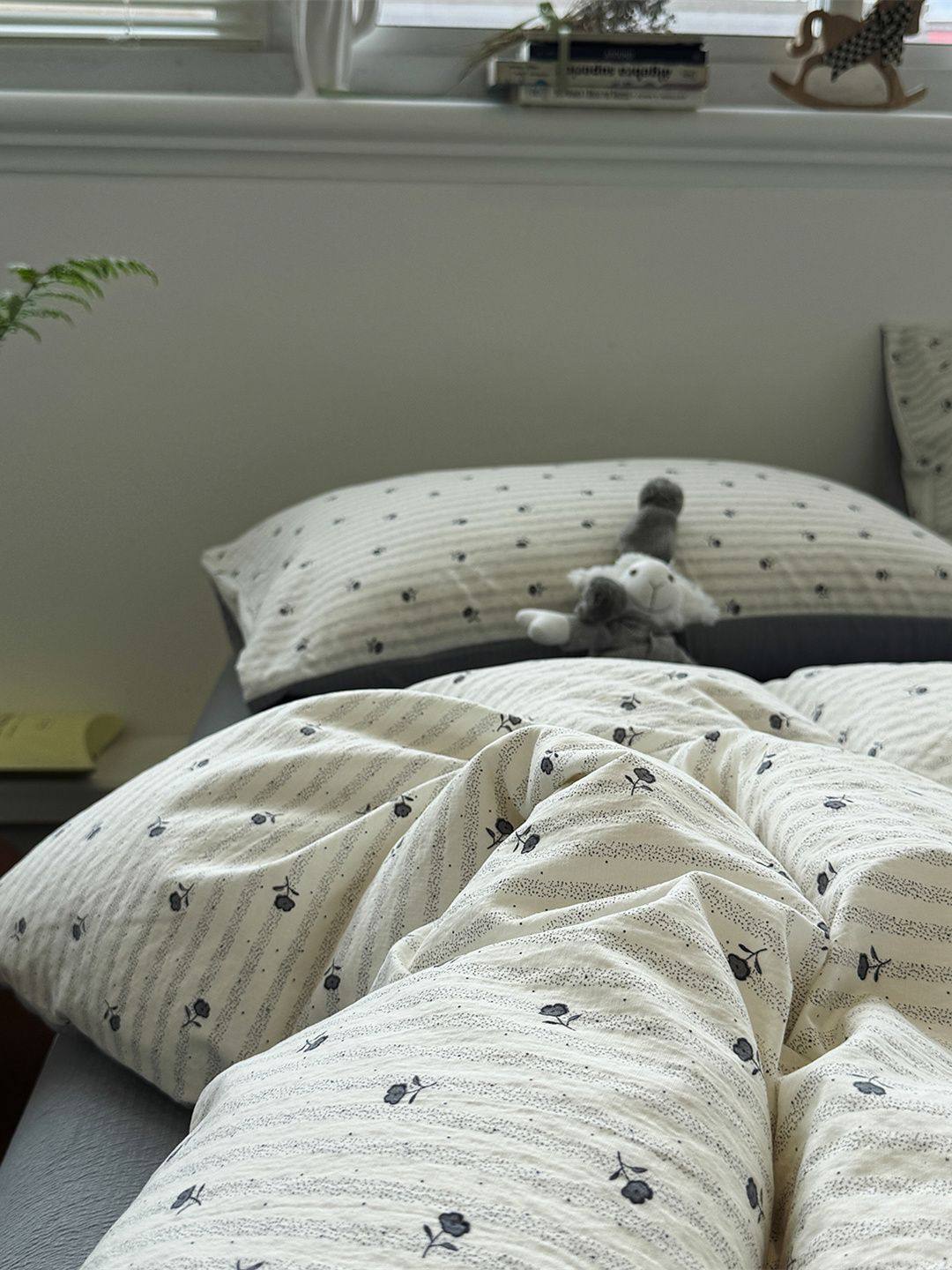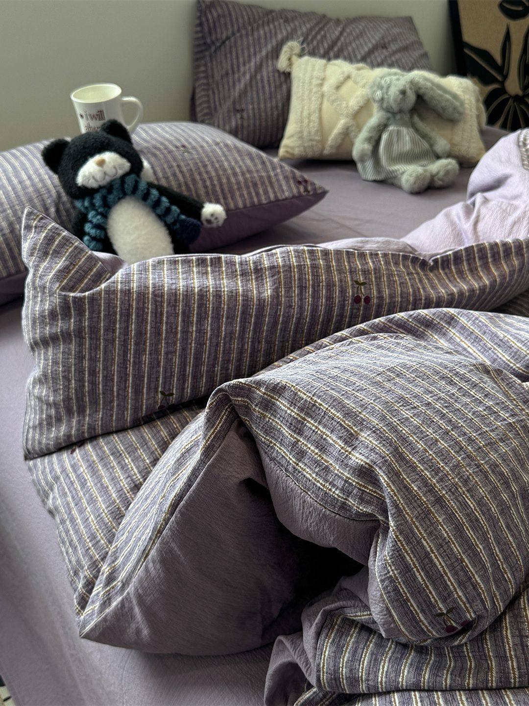 Washed Cotton Bed Four-Piece Fitted Sheet Set, Light Luxury Style Double-Layer Gauze Quilt Cover, Soft Bedroom Dormitory Bed Bed Sheets Three-Piece Set