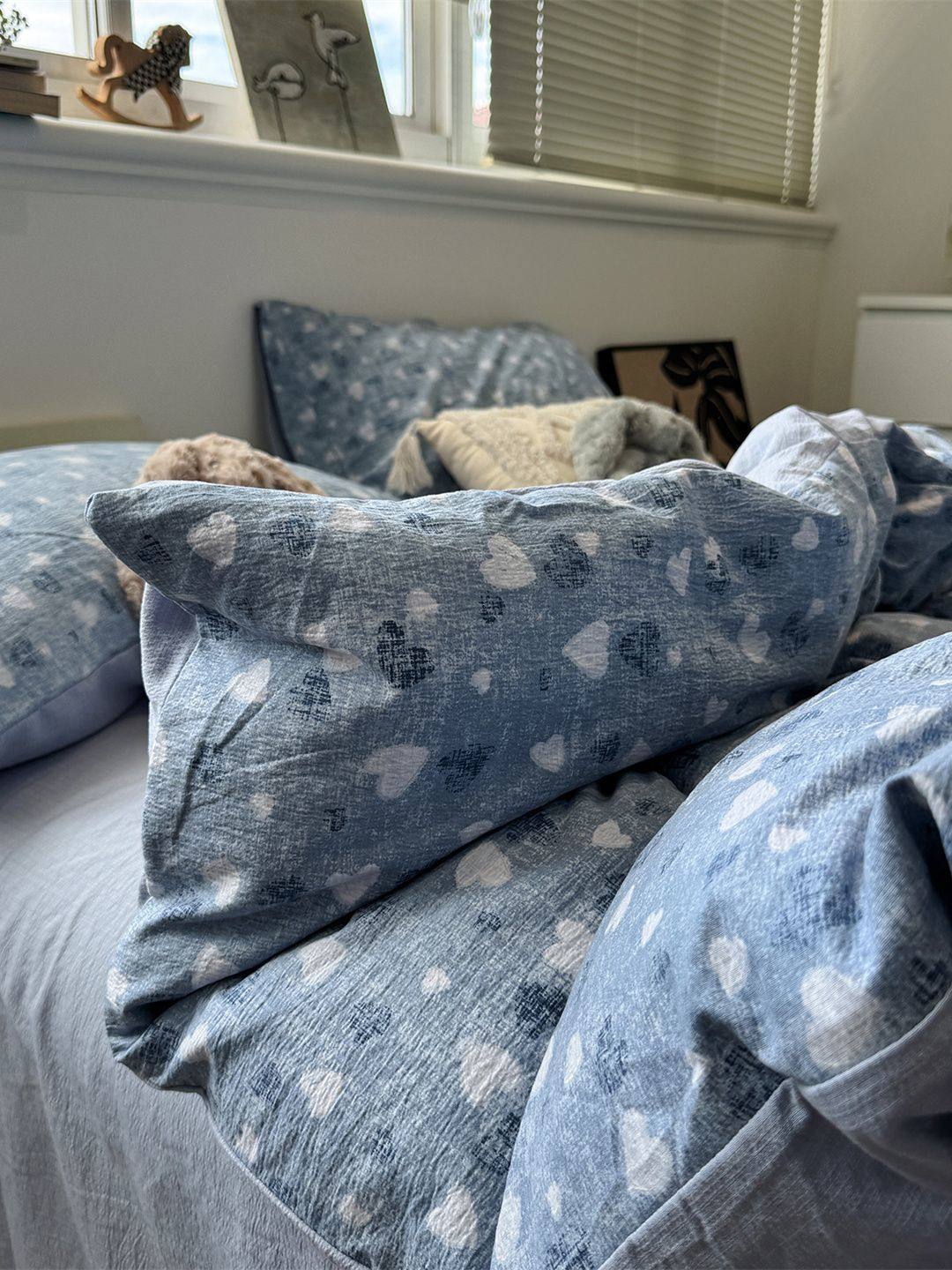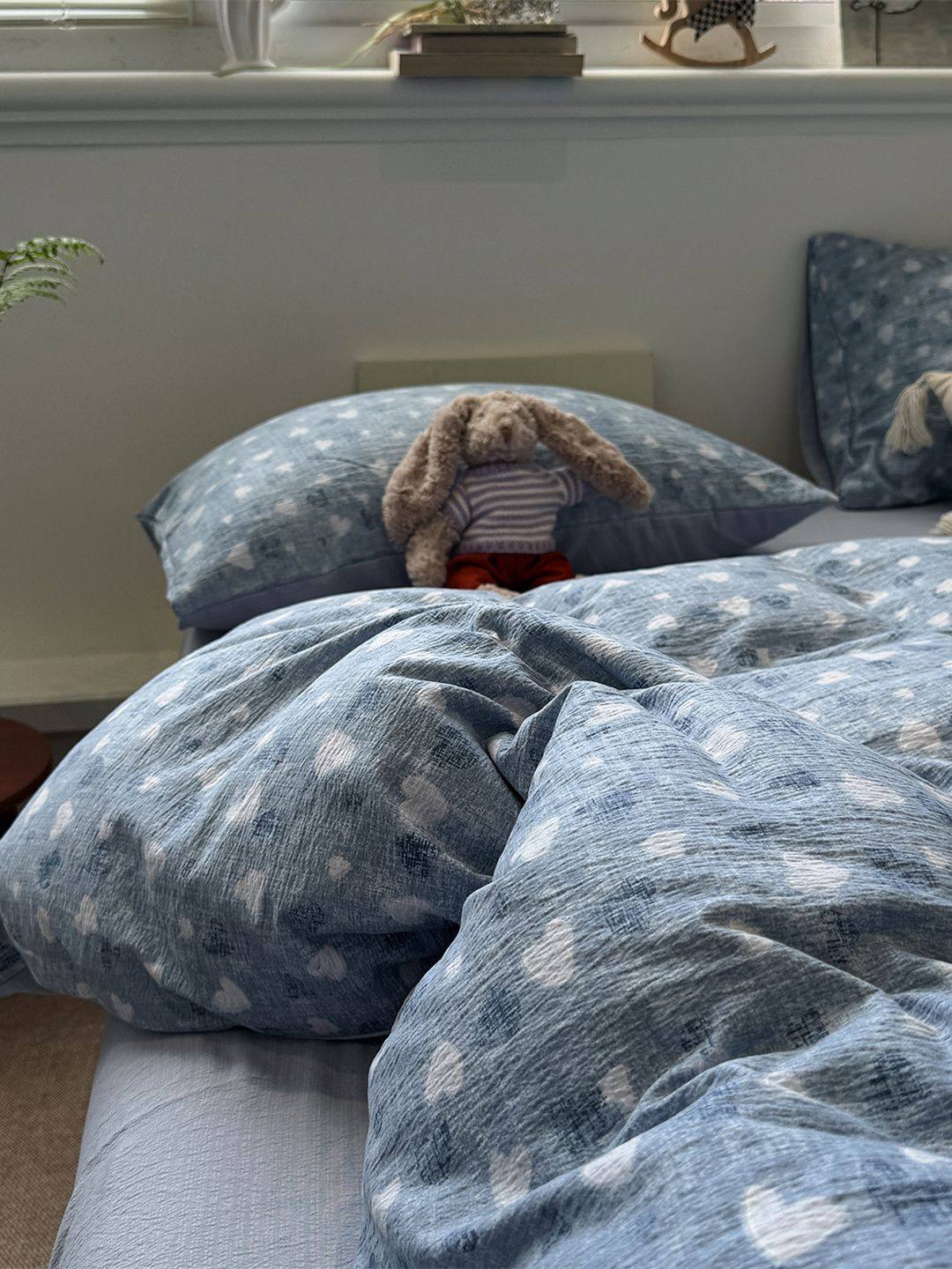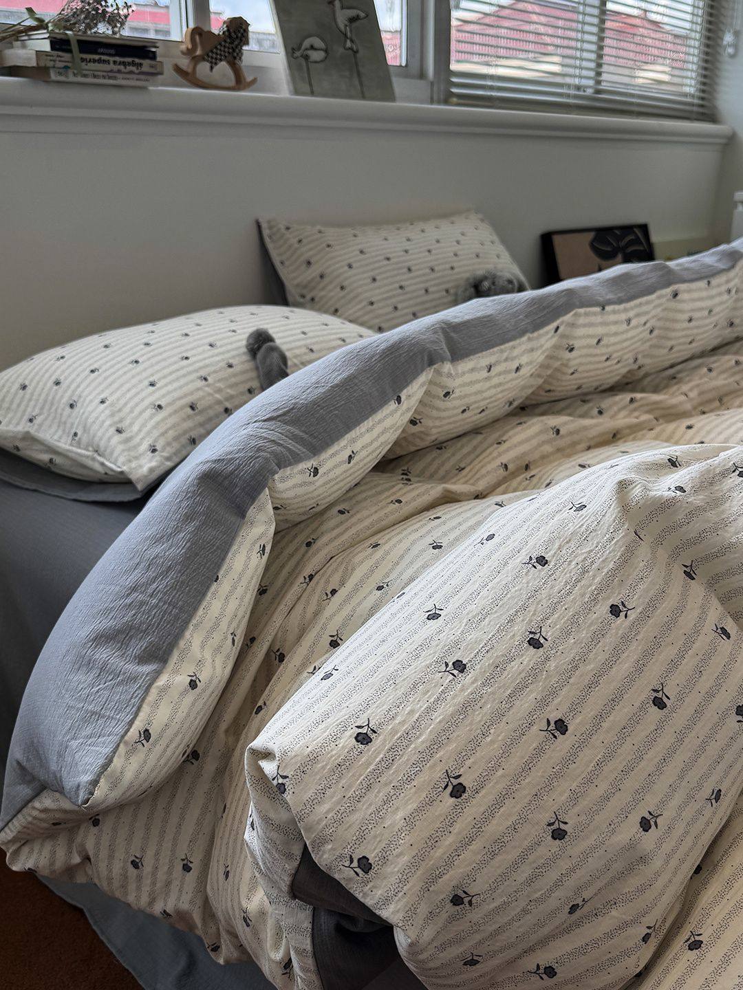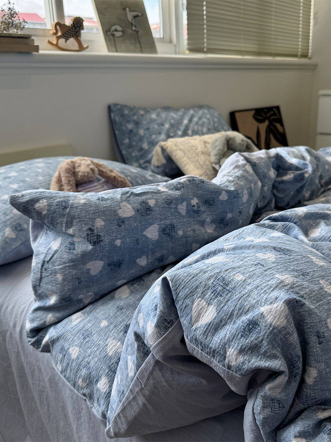 Washed Cotton Bed Four-Piece Fitted Sheet Set, Light Luxury Style Double-Layer Gauze Quilt Cover, Soft Bedroom Dormitory Bed Bed Sheets Three-Piece Set