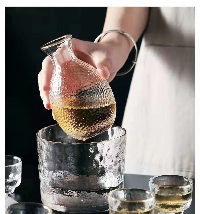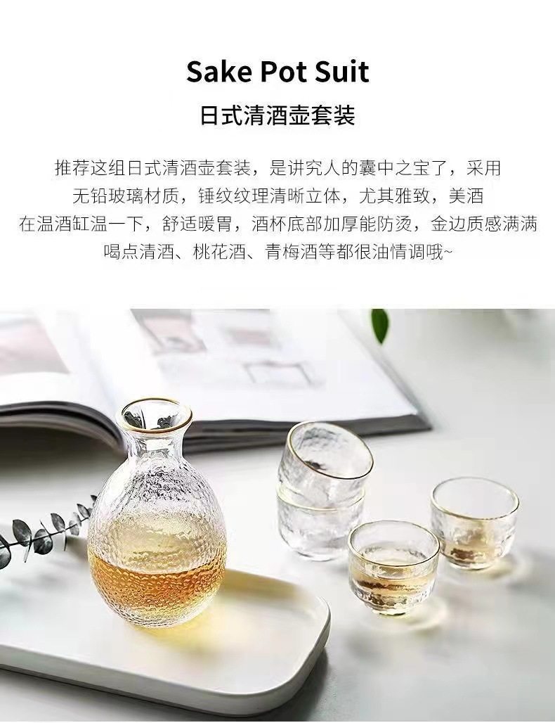 Japanese-Style Glass Sake Pot, Transparent Wine Warmer, Small Wine Glass, High-Looking Household Yellow Wine, Rice Wine, Plum Wine Set