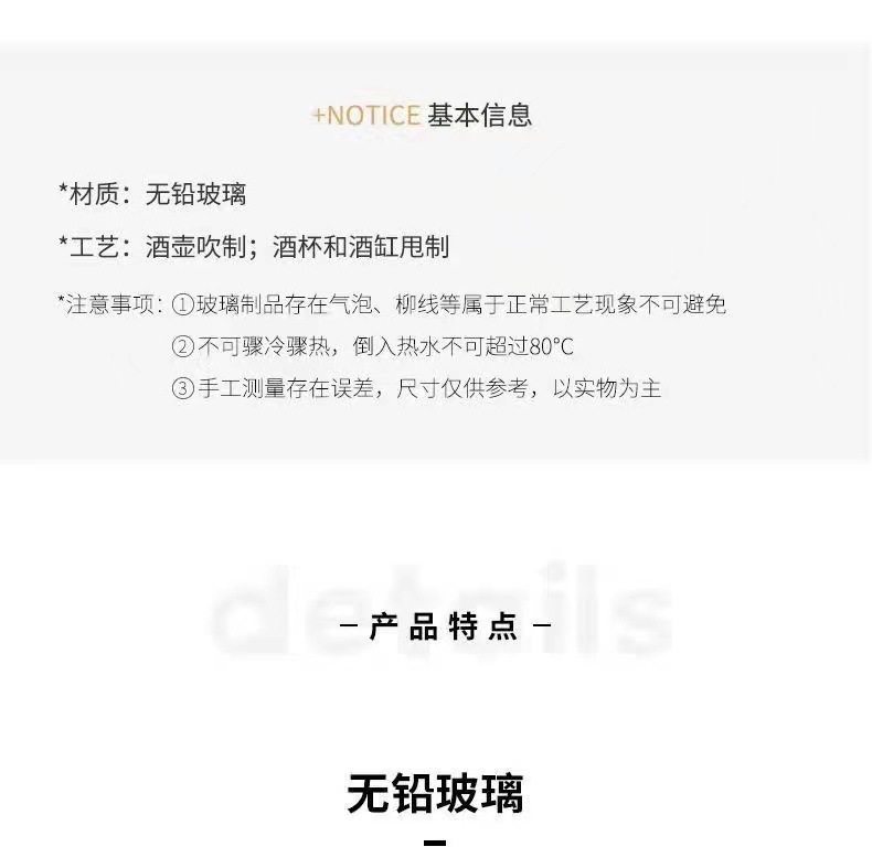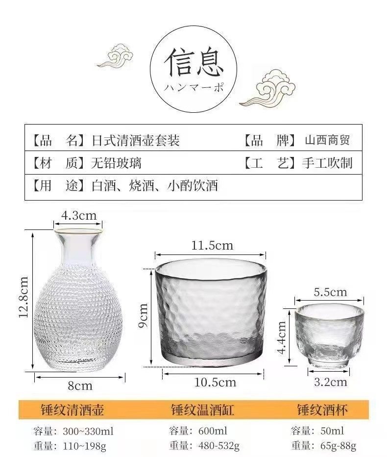 | Color | Transparent sake cup 1 piece 50ml --丨Best style returns,Phnom Penh Sake Cup 1 piece 50ml --丨The popular style returns,Frosted sake cup 1 piece 50ml --丨Best style returns,Transparent sake bottle + cork 300ml --丨Best style returns,Transparent wine warmer 600ml --丨The popular model returns,Phnom Penh sake bottle + cork 300ml --丨The popular model is back,Phnom Penh Wine Warmer 600ml --丨The popular model is back,Frosted sake bottle + cork 300ml --丨The popular style returns,Frosted wine warmer 600ml --丨Best style returns,Transparent six-piece set, sake jug + four cups + cork--丨The return of popular style,Transparent seven-piece set, pot + four cups + wine warmer + cork--丨The return of the popular model,Phnom Penh six-piece set, sake bottle + four cups + cork--丨The return of the popular model,Frosted six-piece set, sake bottle + four cups + cork--丨The return of the popular model,Phnom Penh seven-piece set, pot + four cups + wine warmer + cork--丨The return of the popular model,Frosted seven-piece set, pot + four cups + wine warmer + cork--丨The popular model is back,Transparent pot+four cups+cylinder+cork+pearl cotton color box--丨The popular model is back,Phnom Penh pot+four cups+cylinder+cork+pearl cotton color box--丨The popular model is back,Frosted pot+four cups+cylinder+cork+pearl cotton color box--丨The popular model is back |