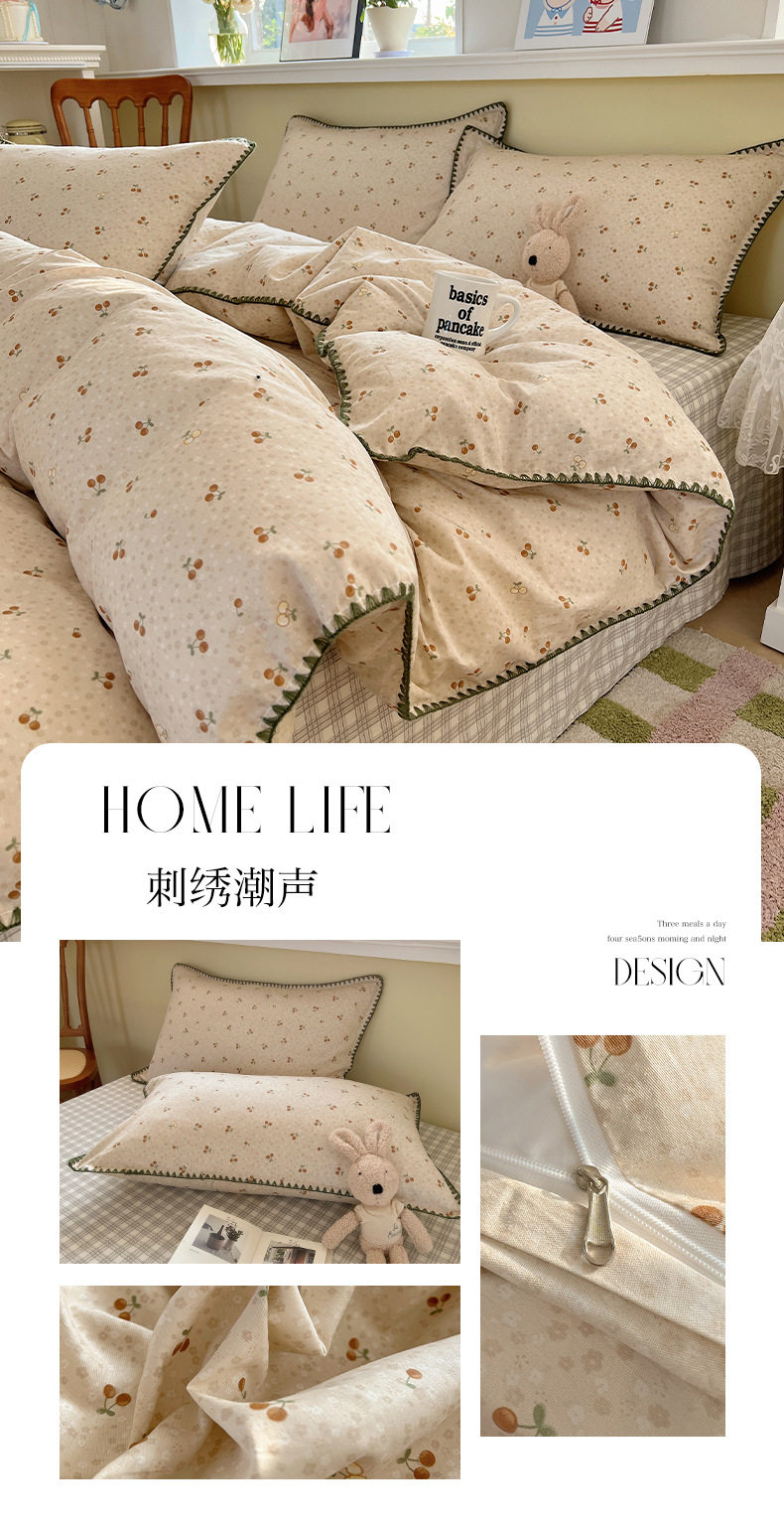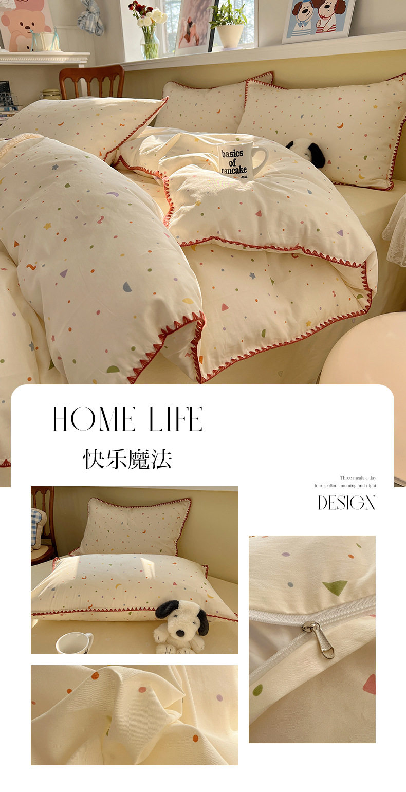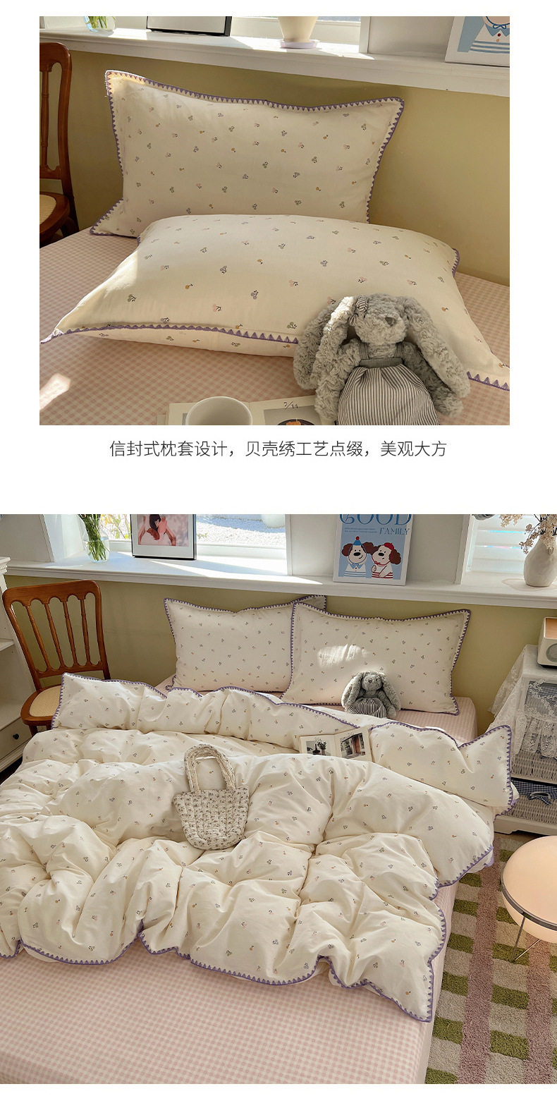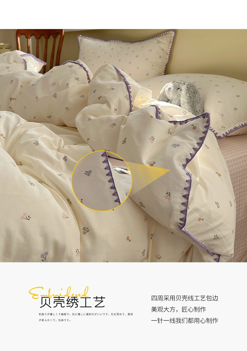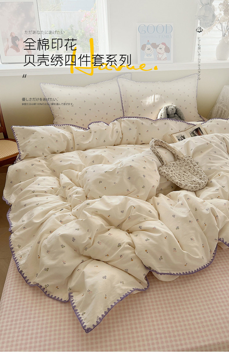 Light Luxury Shell Edge Four-Piece Set of Pure Cotton Bedding Bed Sheetss, Quilt Cover, Fitted Bed Sheets, Cotton Dormitory Three-Piece Set