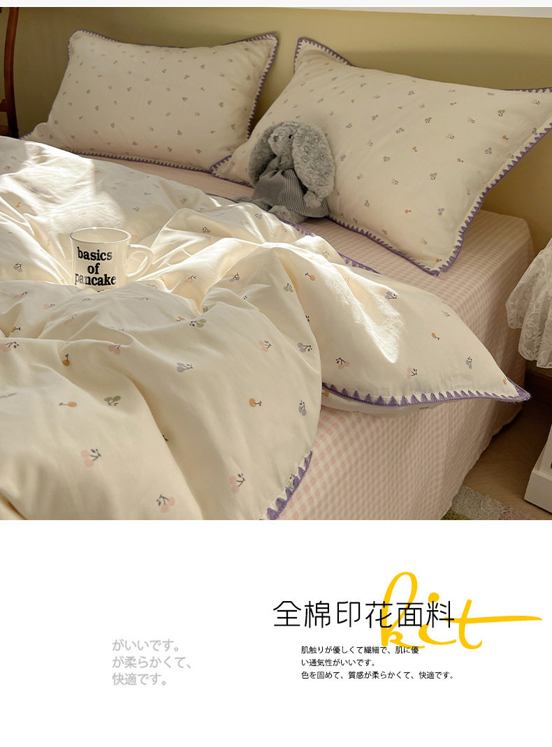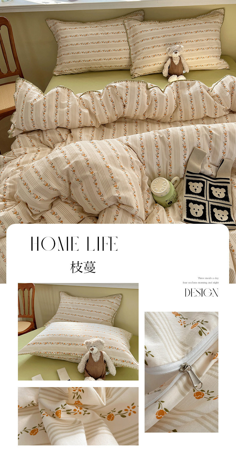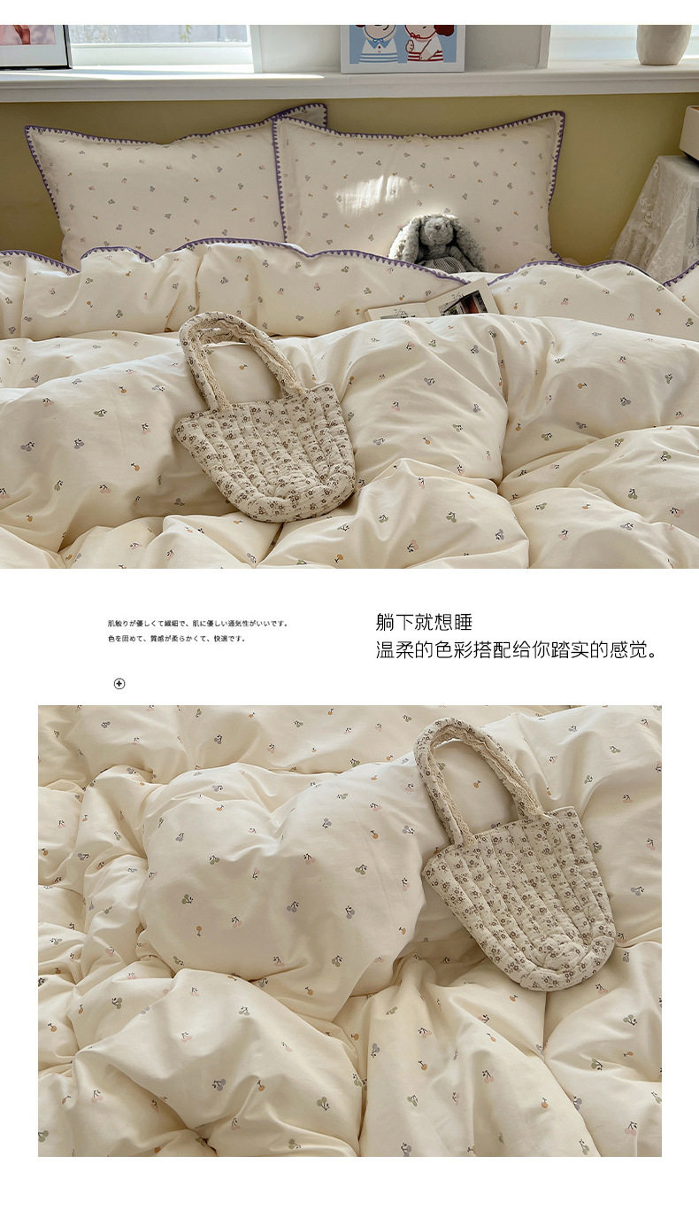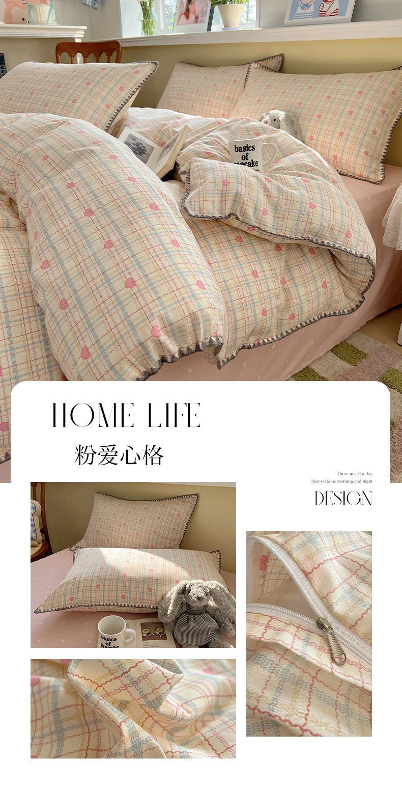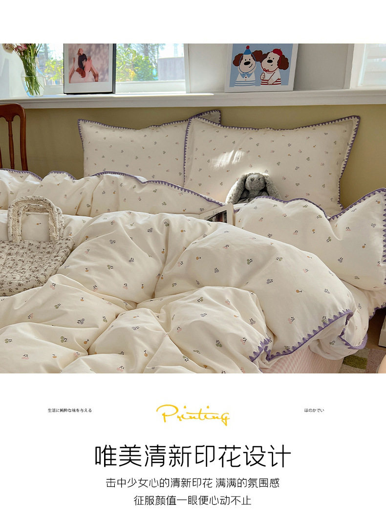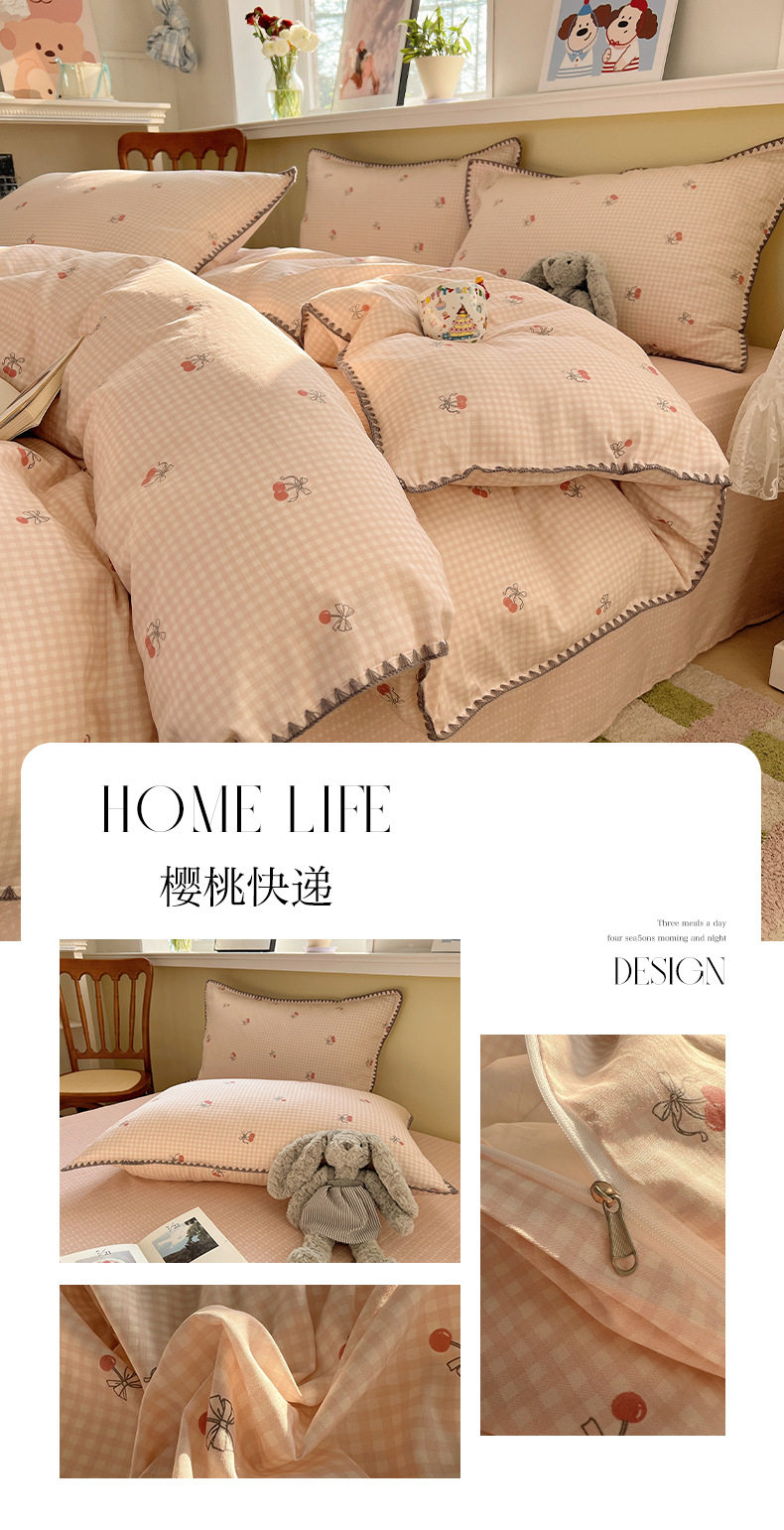 Light Luxury Shell Edge Four-Piece Set of Pure Cotton Bedding Bed Sheetss, Quilt Cover, Fitted Bed Sheets, Cotton Dormitory Three-Piece Set