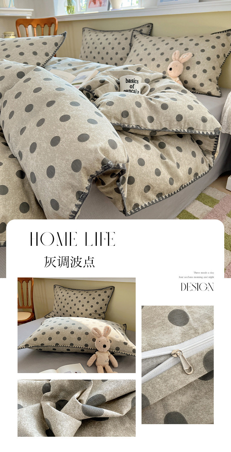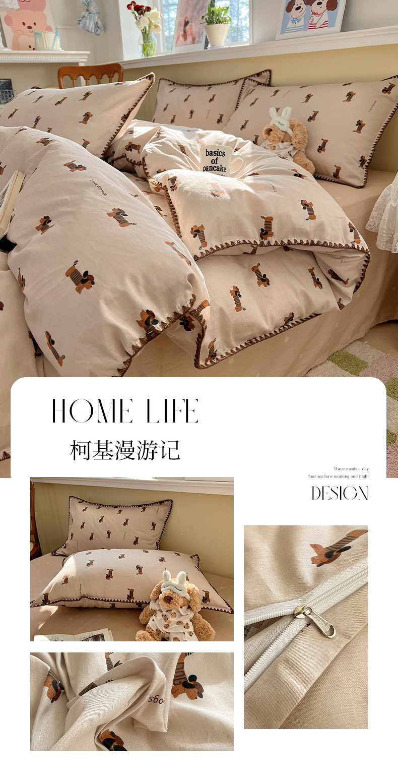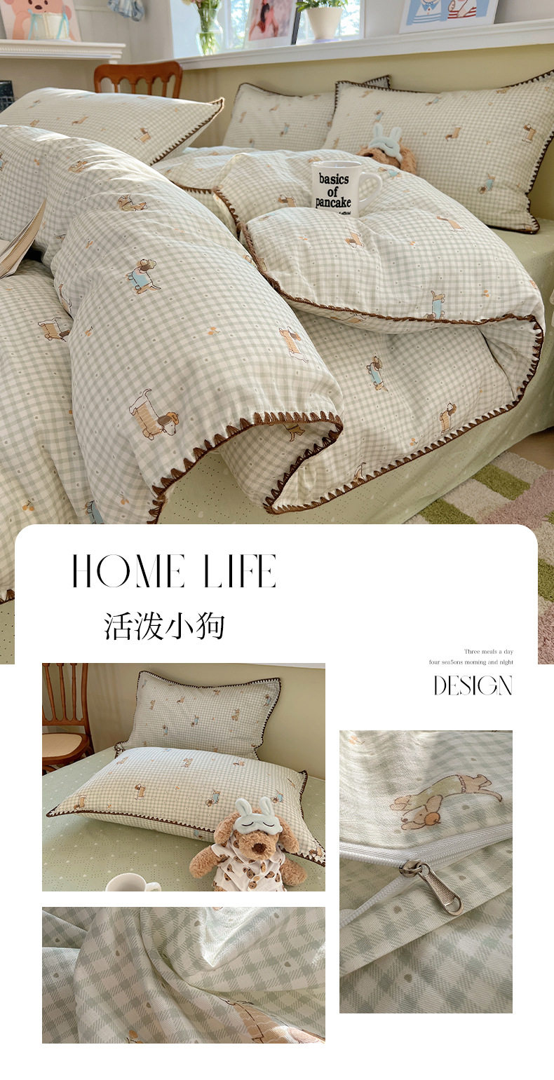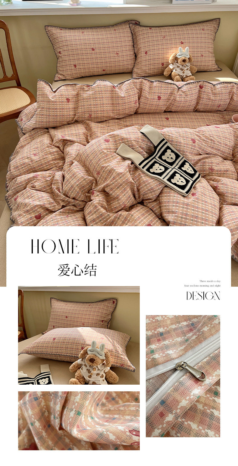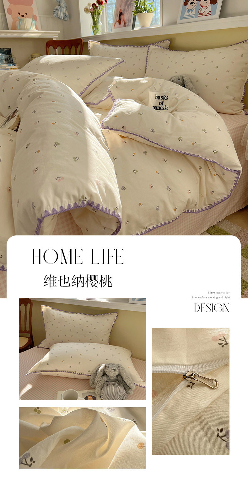 Light Luxury Shell Edge Four-Piece Set of Pure Cotton Bedding Bed Sheetss, Quilt Cover, Fitted Bed Sheets, Cotton Dormitory Three-Piece Set
