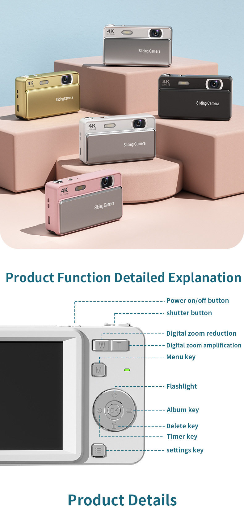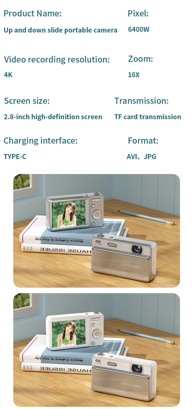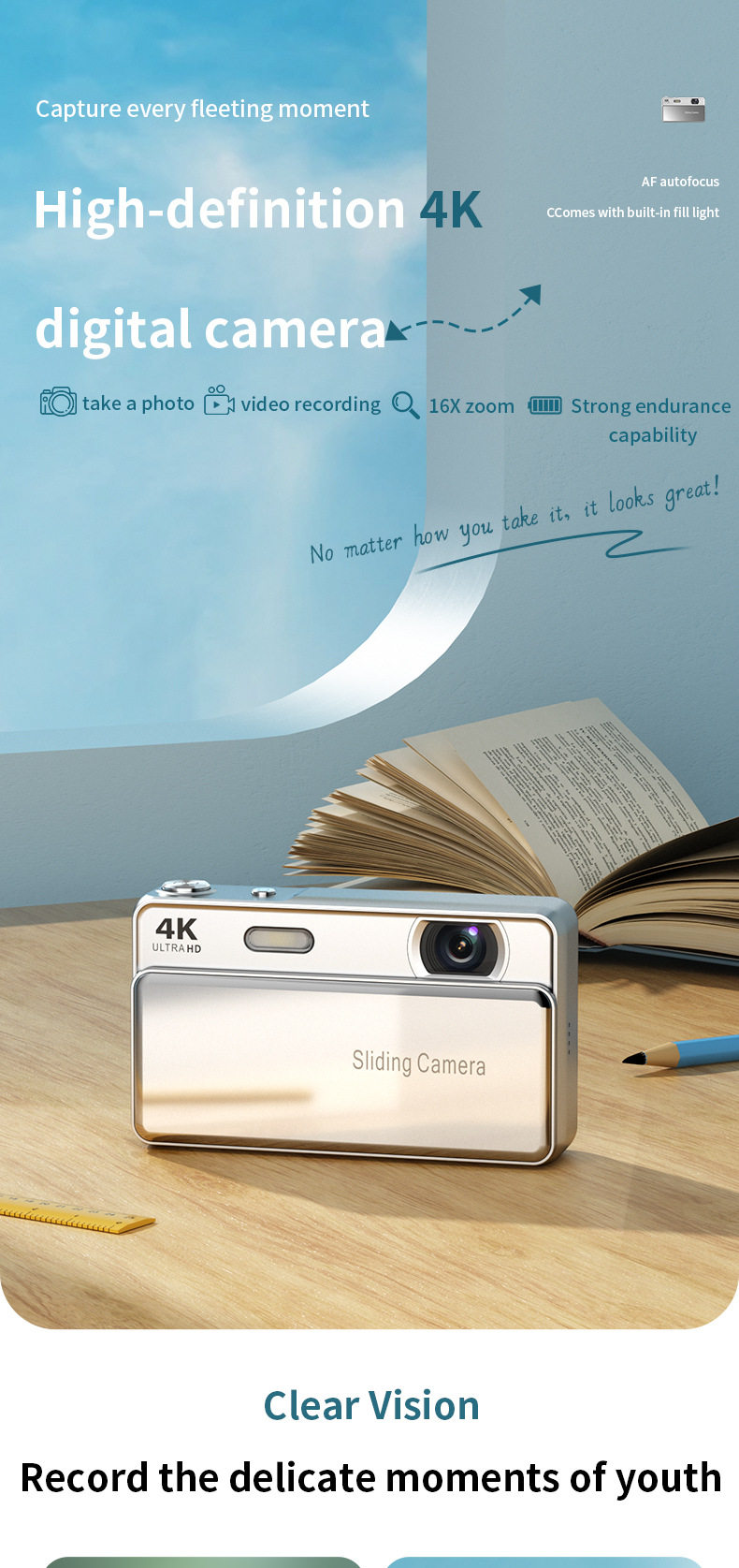 New M15 Slider Digital Camera Ccd Campus Camera Photo and Video One-Hour Student Mirrorless Camera Gift