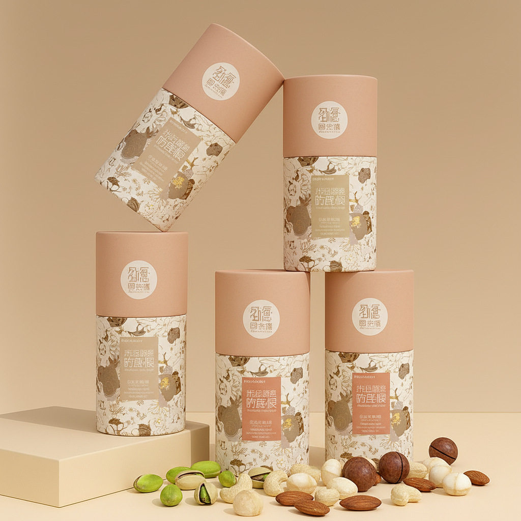 High-End Nut Paper Cans Customized Walnut Melon Seeds Pine Nuts Hazelnuts Almonds Macadamia Nuts Packaging Food Grade Customization