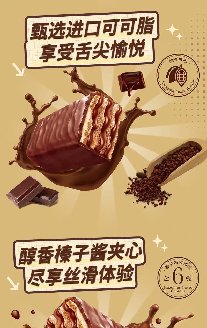 | Packaging specifications | Hazelnut chocolate wafer**10 pack,Hazelnut chocolate wafer**20 packs,Hazelnut chocolate wafer**30 packs,Hazelnut chocolate wafer**40 pack,Hazelnut chocolate wafer**50 pack,Hazelnut chocolate wafer**60 pack |