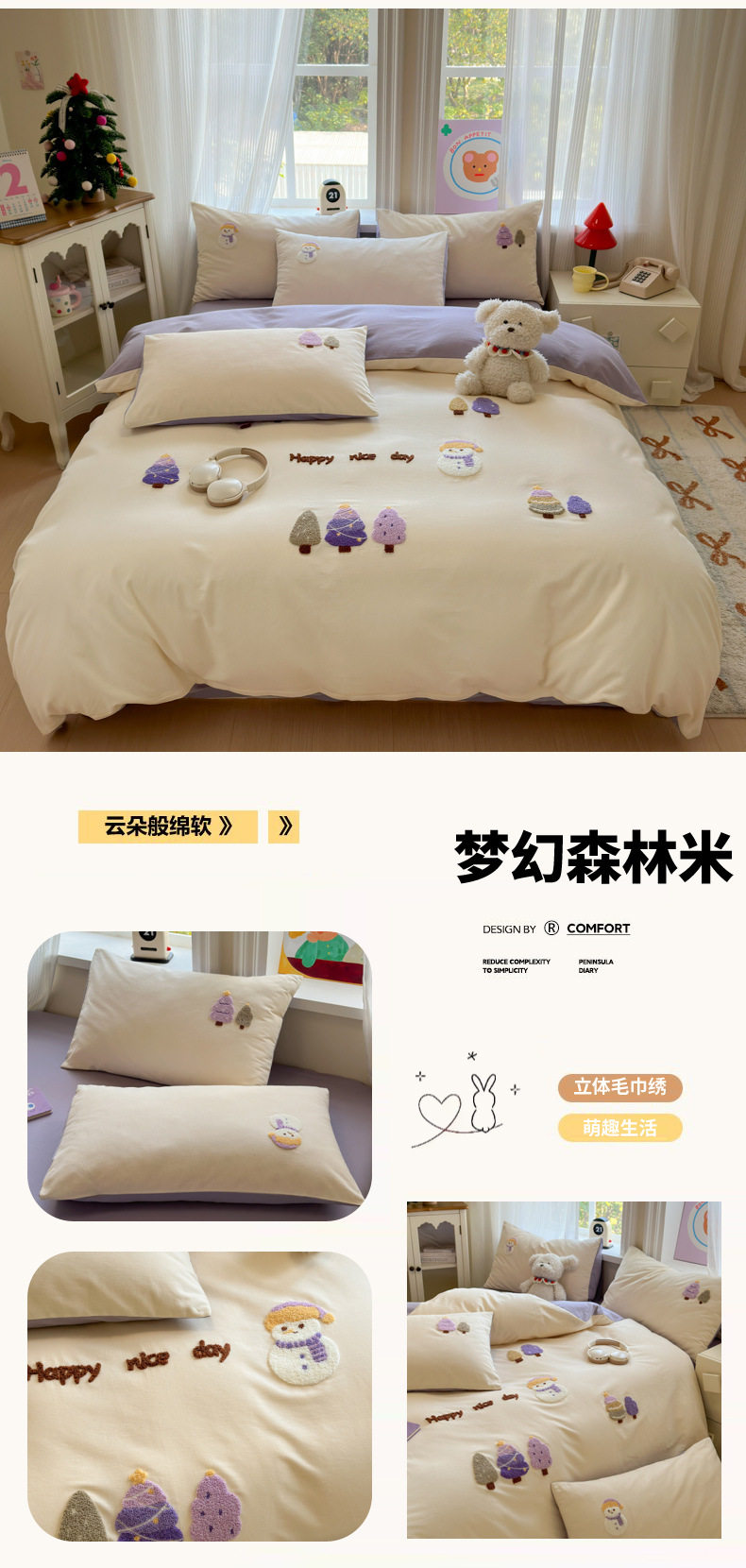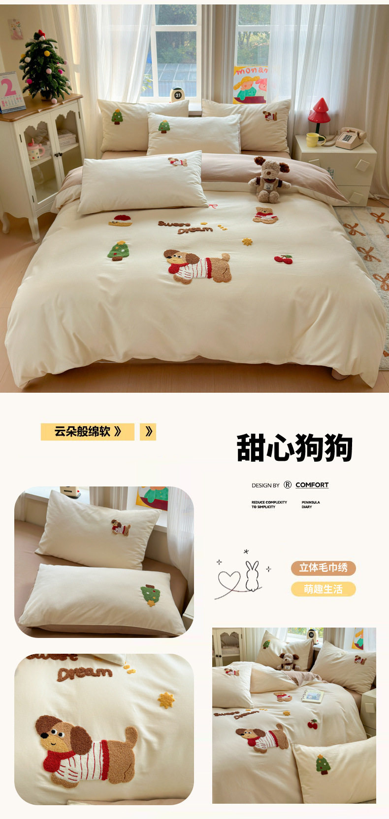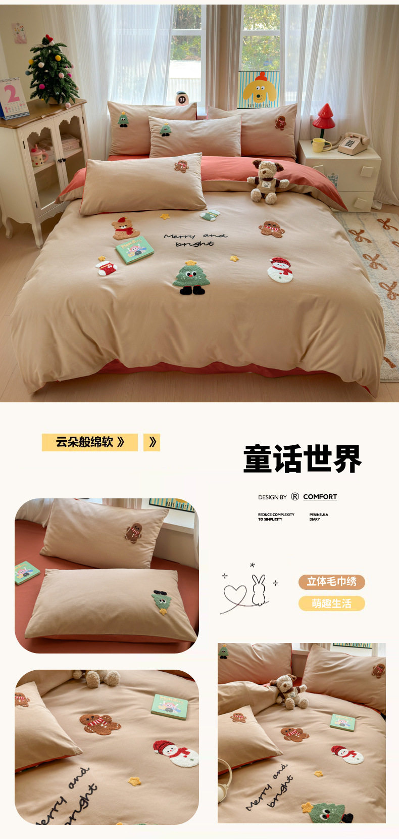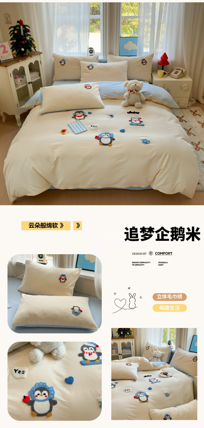 2026 New Style Pure Cotton Thickeneded Brushed Embroidered Four-Piece Set Cartoon Cute Cotton Student Dormitory Three-Piece Set