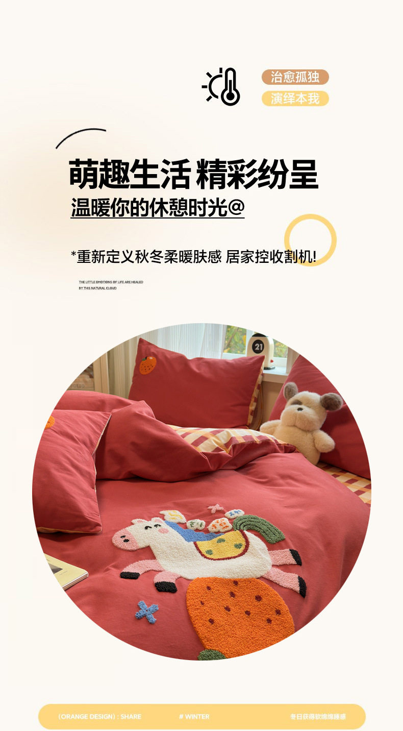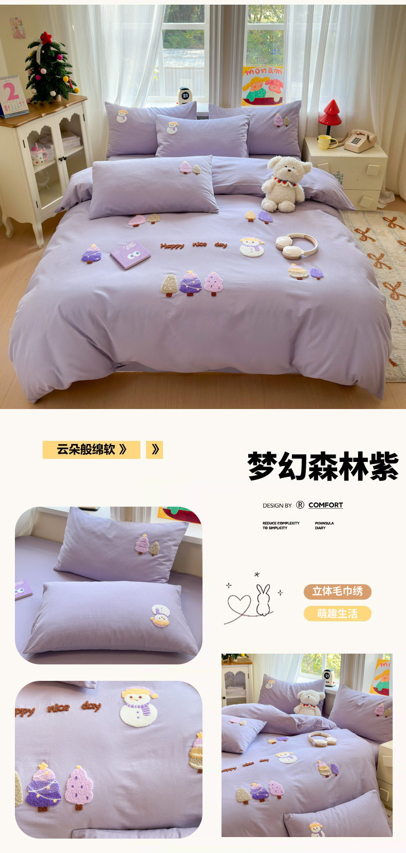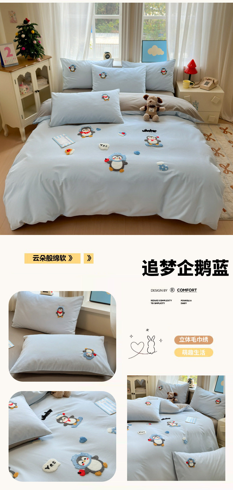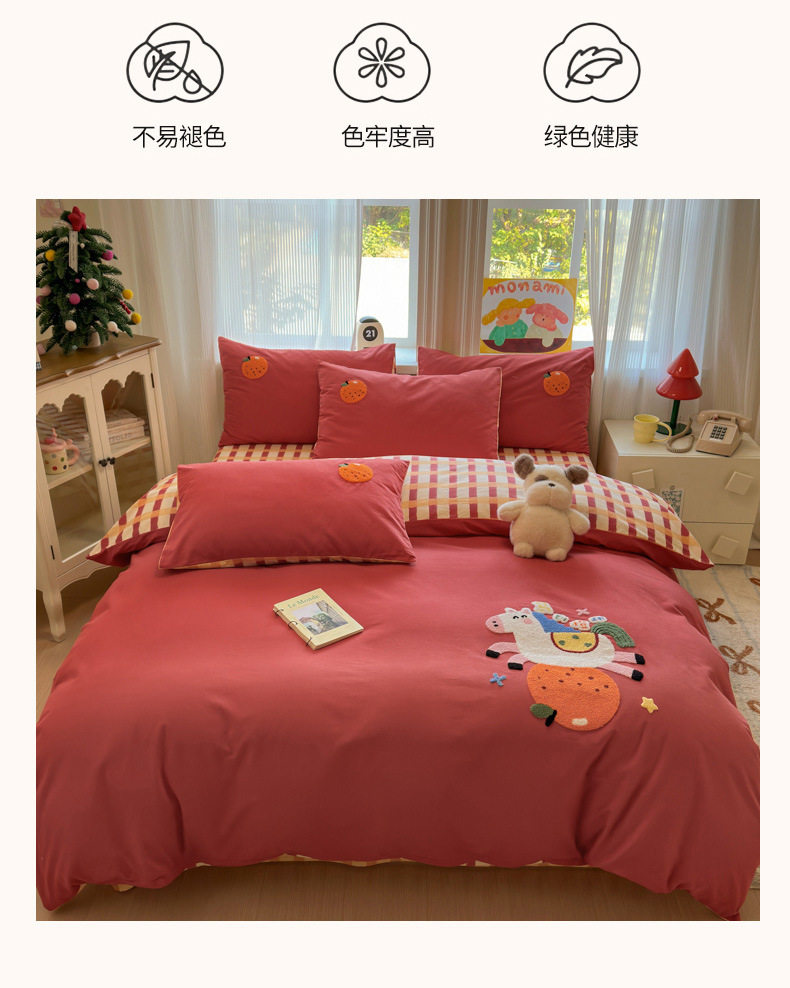 2026 New Style Pure Cotton Thickeneded Brushed Embroidered Four-Piece Set Cartoon Cute Cotton Student Dormitory Three-Piece Set