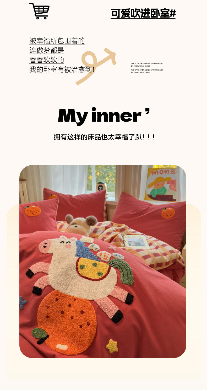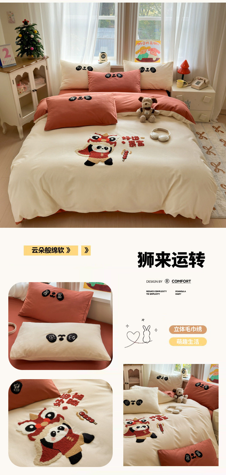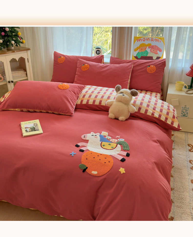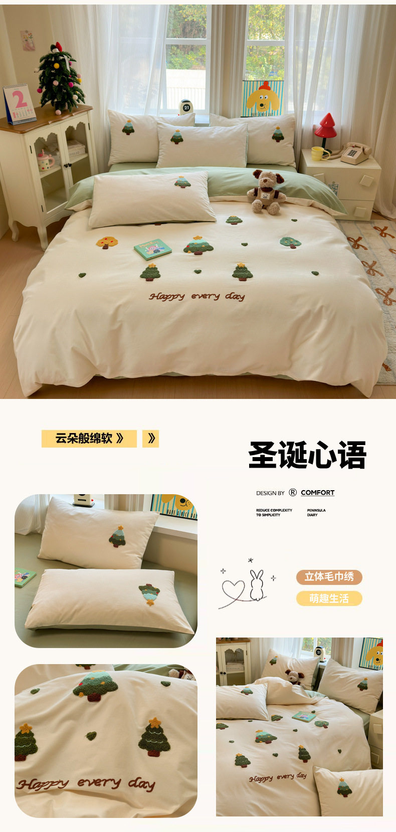 2026 New Style Pure Cotton Thickeneded Brushed Embroidered Four-Piece Set Cartoon Cute Cotton Student Dormitory Three-Piece Set