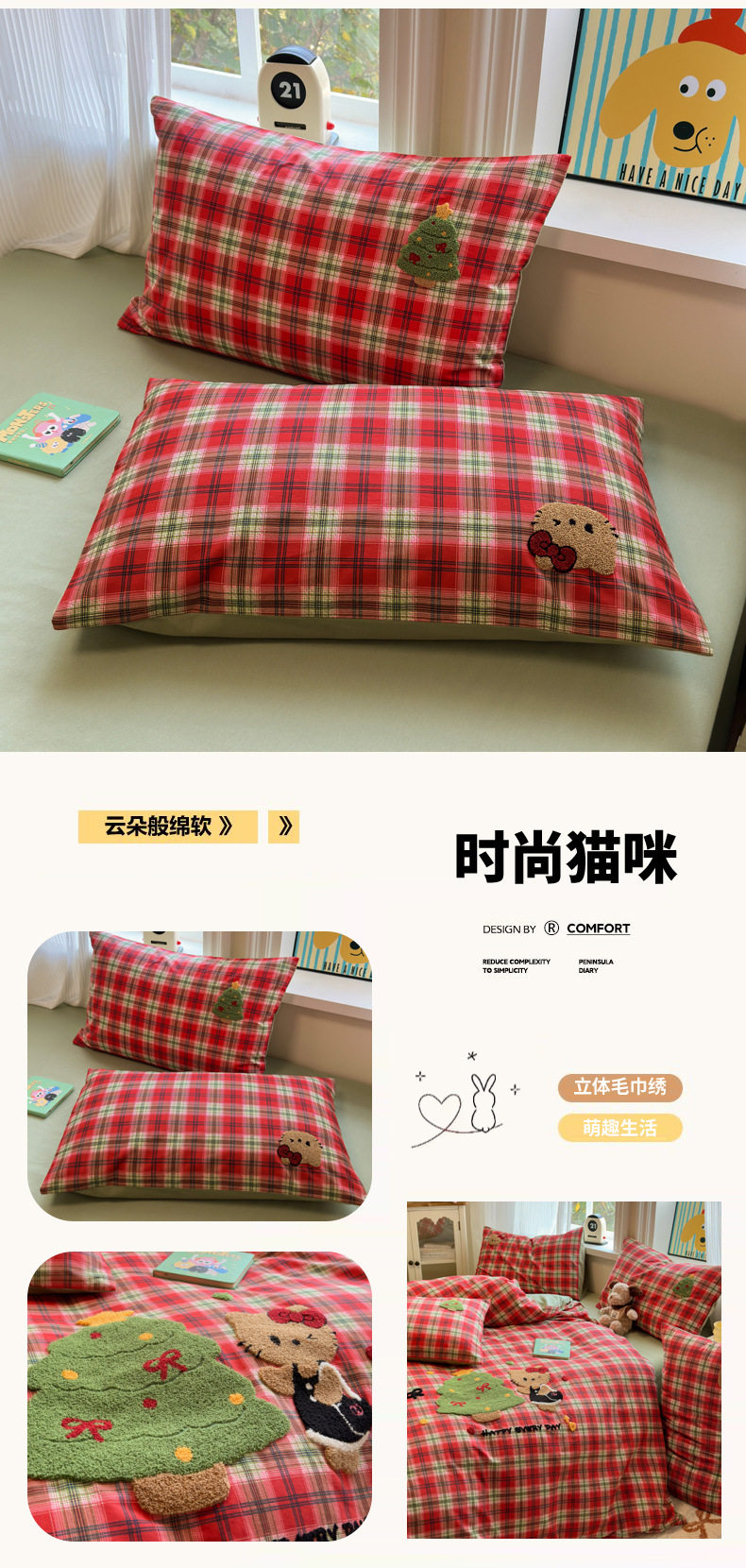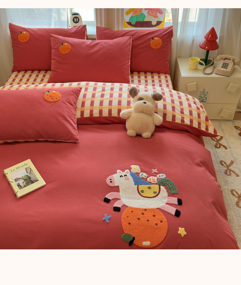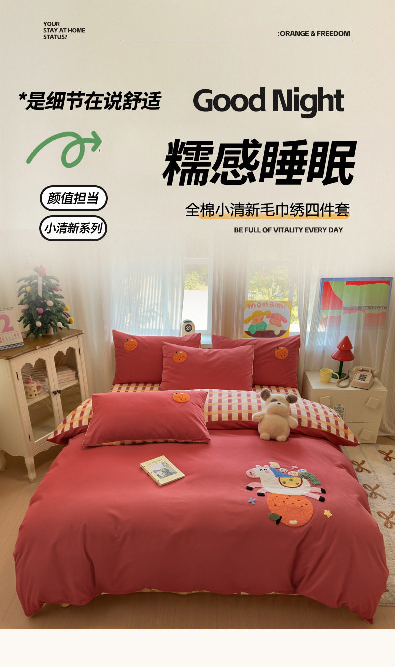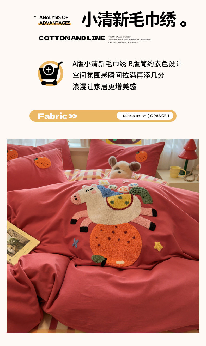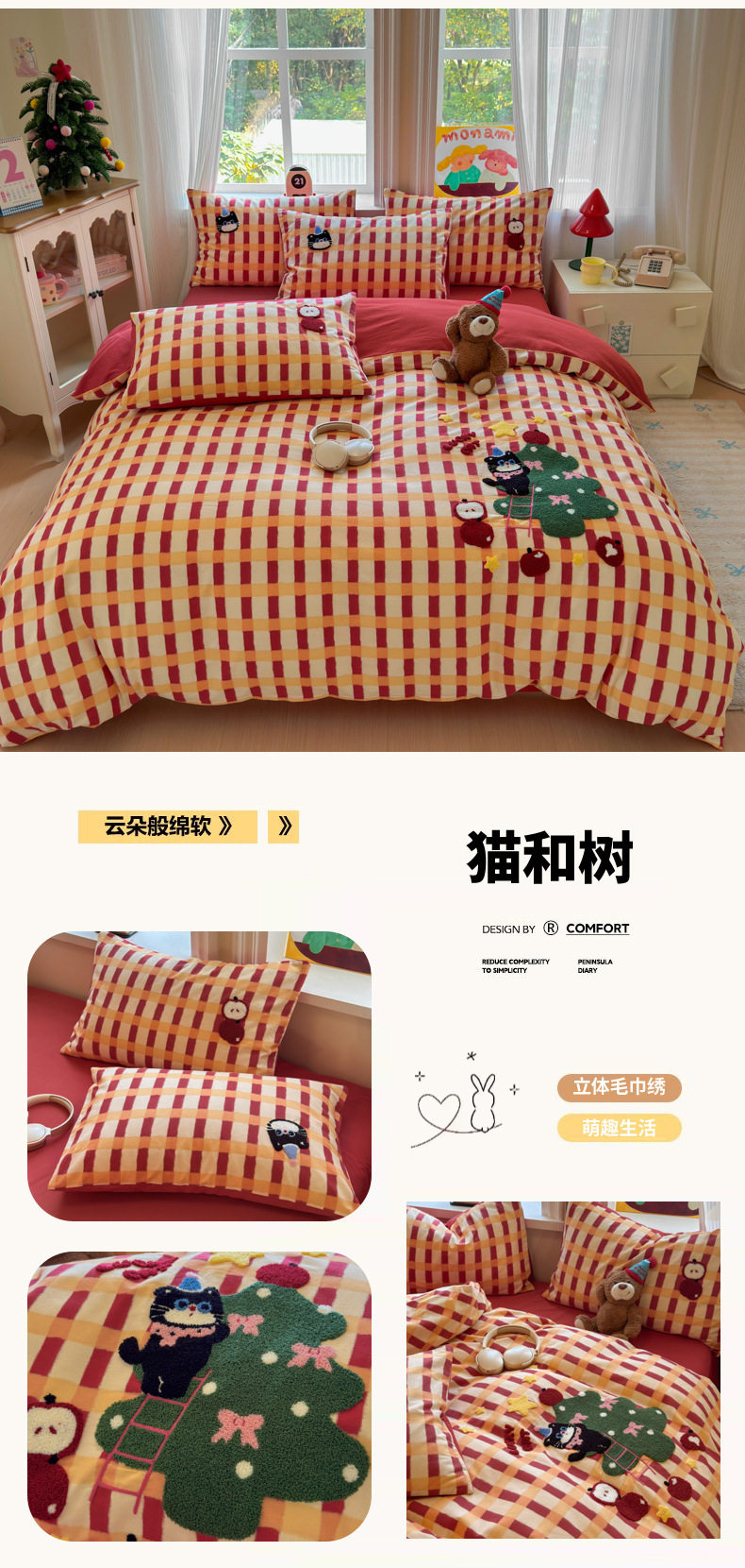 2026 New Style Pure Cotton Thickeneded Brushed Embroidered Four-Piece Set Cartoon Cute Cotton Student Dormitory Three-Piece Set