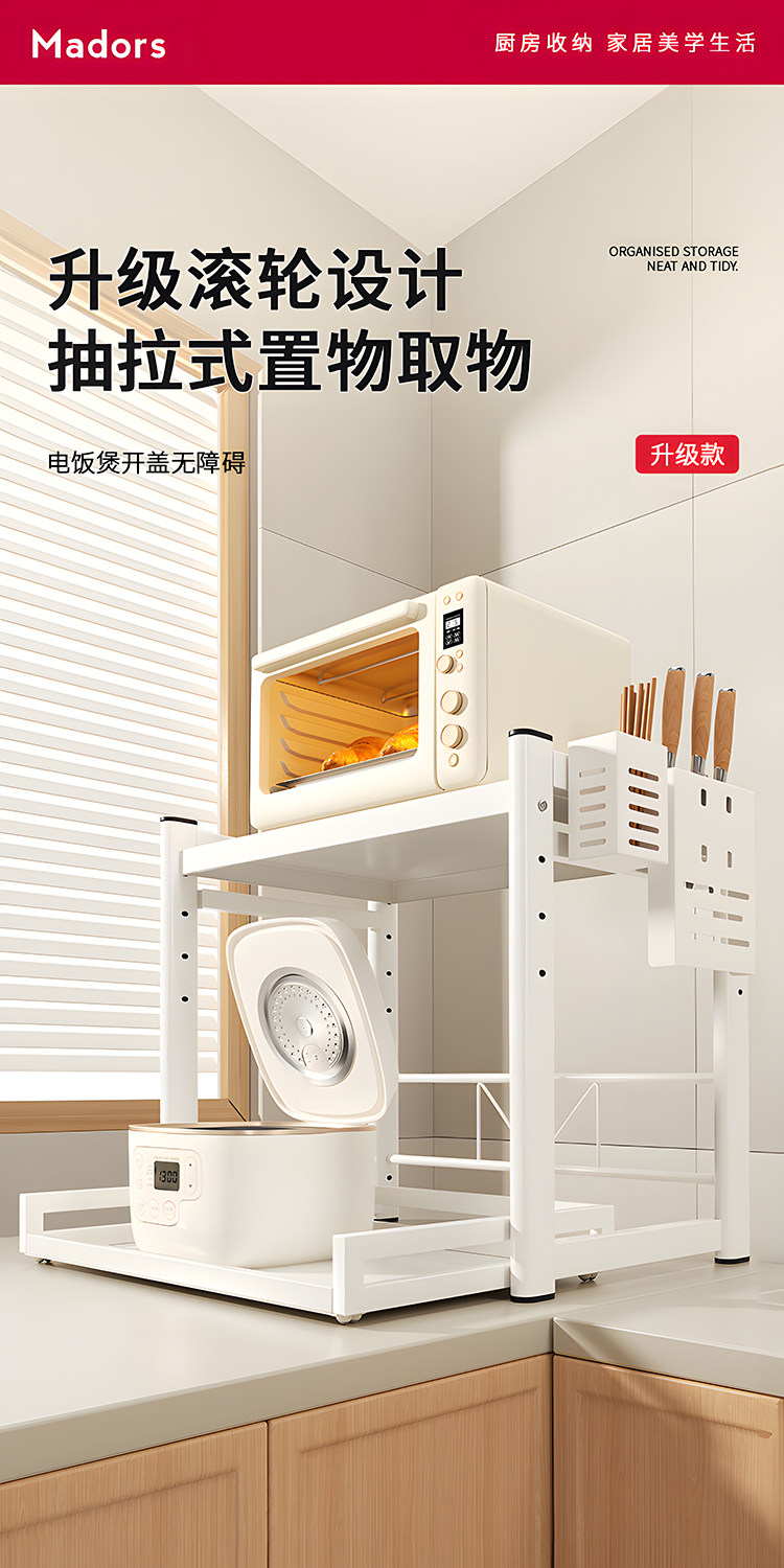 Kitchen Microwave Oven Storage Rack Multi-Functional Rice Cooker Oven Special Countertop Appliance Pull-Out Storage Rack
