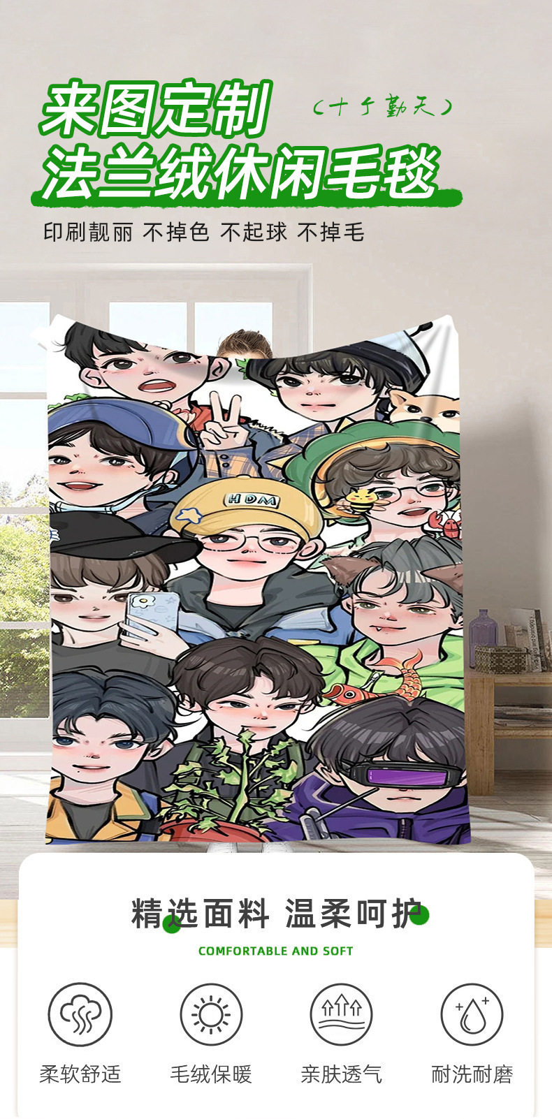 Digital Printed Winter Warm Flannel Blanket Office Thickened Velvet Nap Blanket Ten Days of Work Peripherals