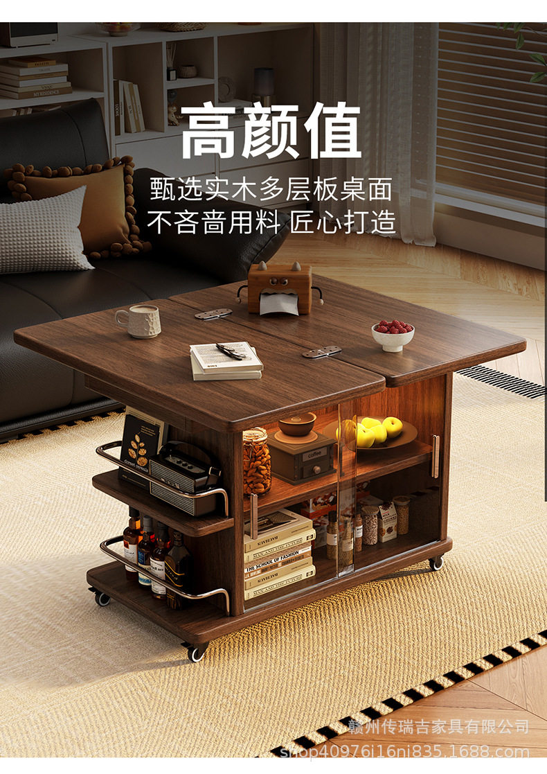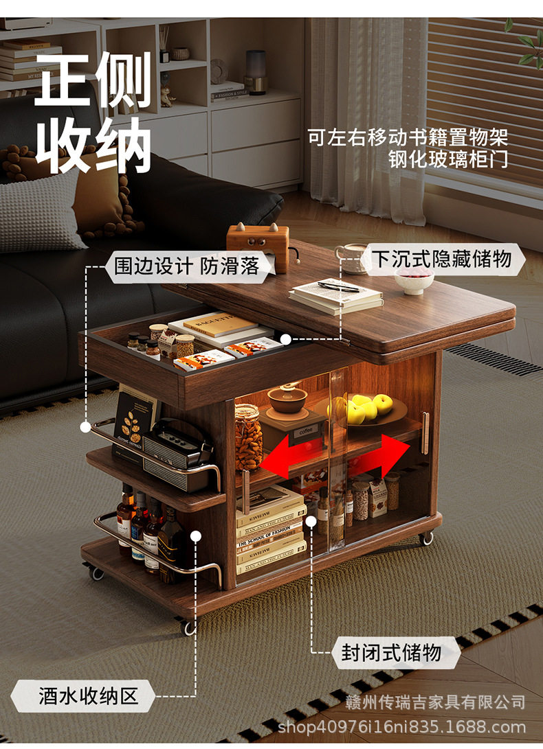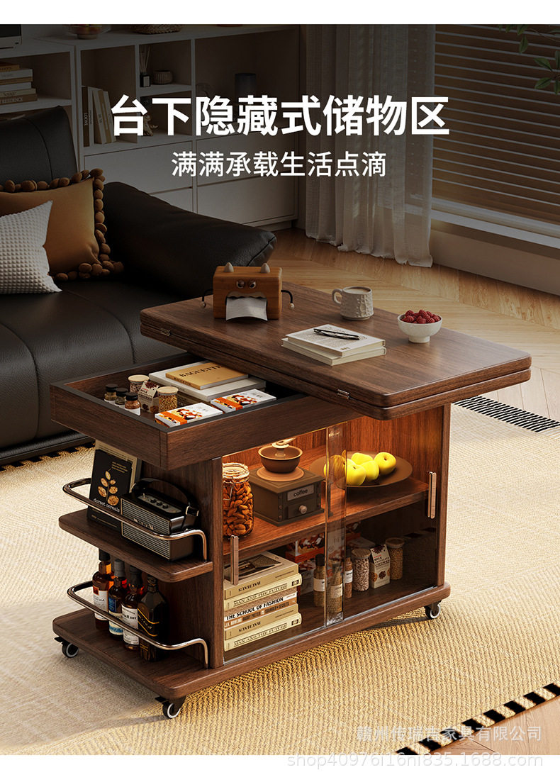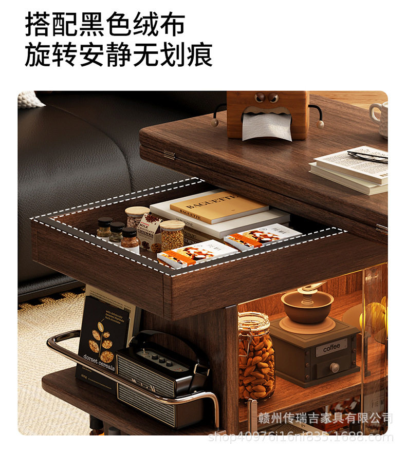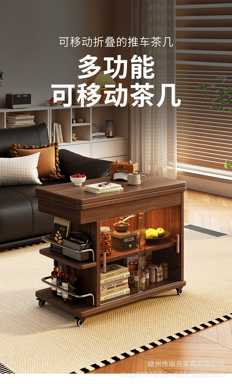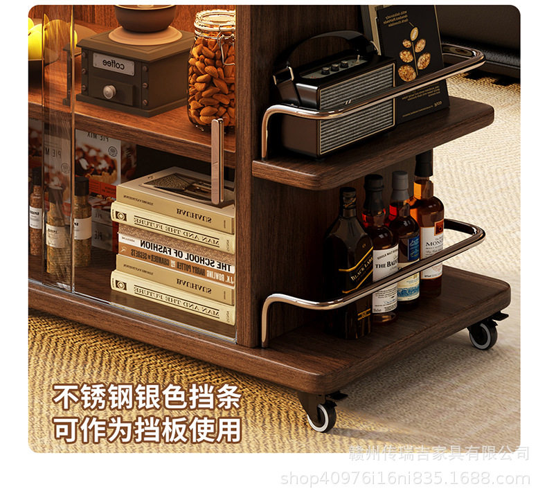 Light Luxury and High-End Sofa Side Cabinet Minimalist Side Table Living Room Modern Movable Multi-Functional Cart Folding Side Cabinet