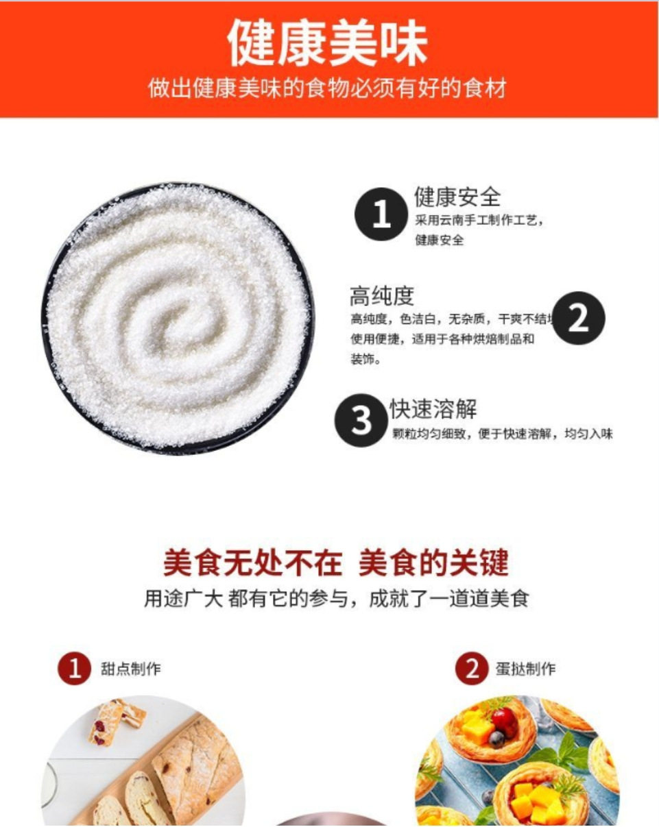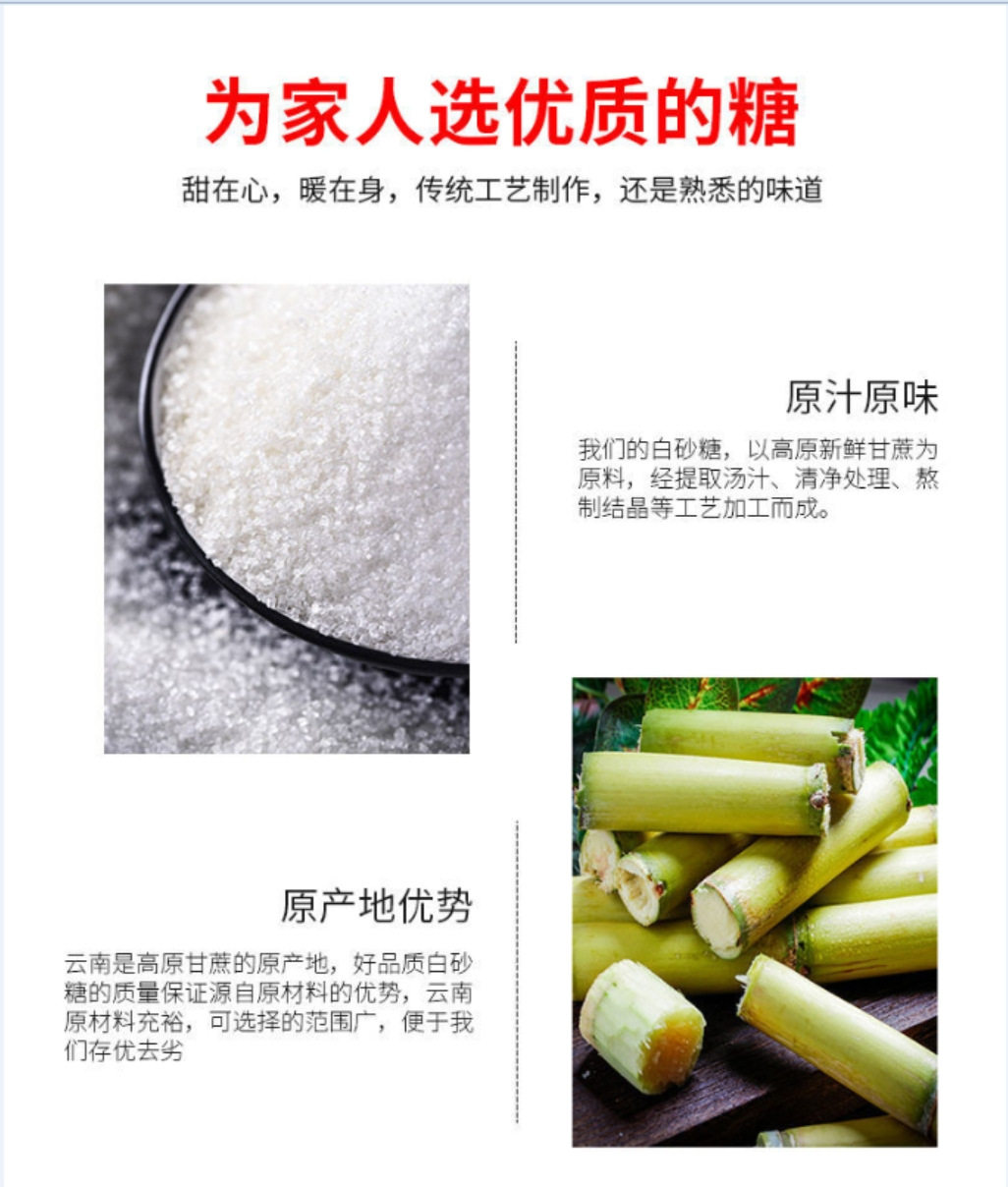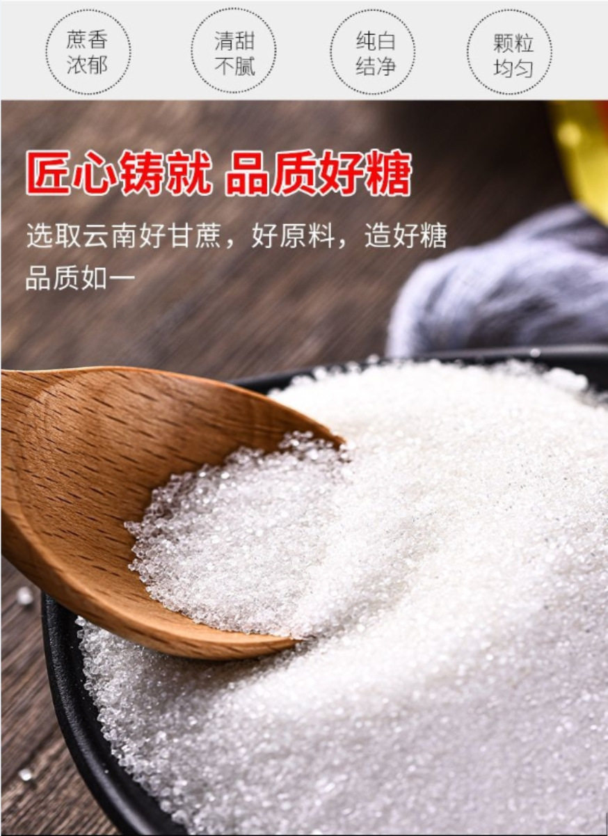 Yunnan Sugar Cane White Granulated Sugar Bagged Household Edible Sugar for Baking, Seasoning, Cooking, Convenient Sweet Taste, Clear Sweetness, Fine Granules
