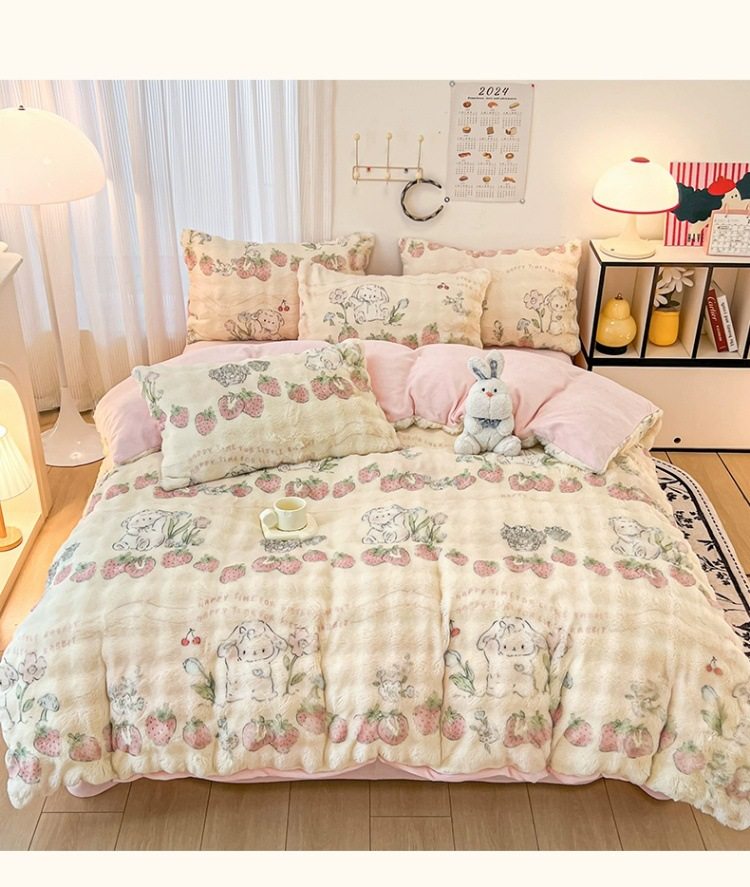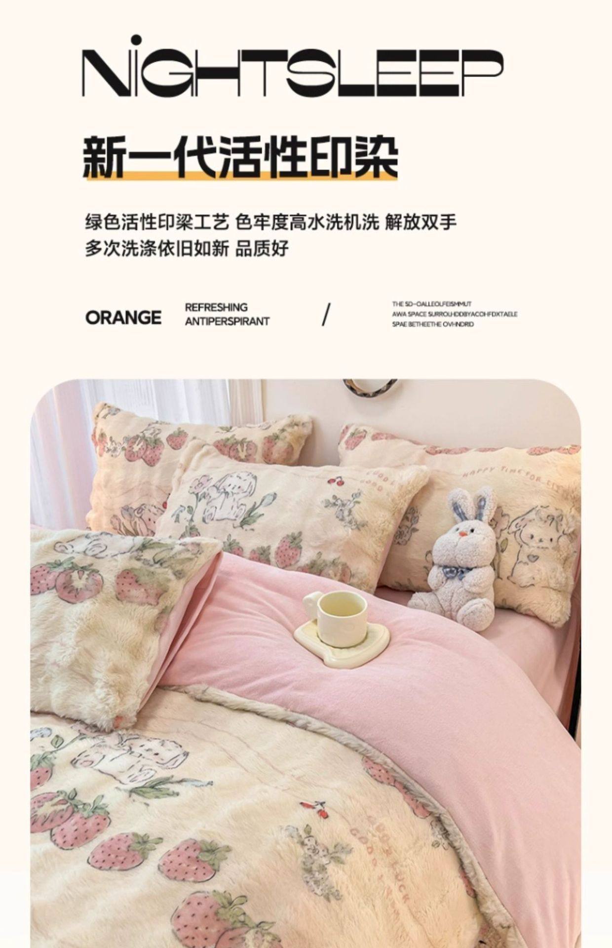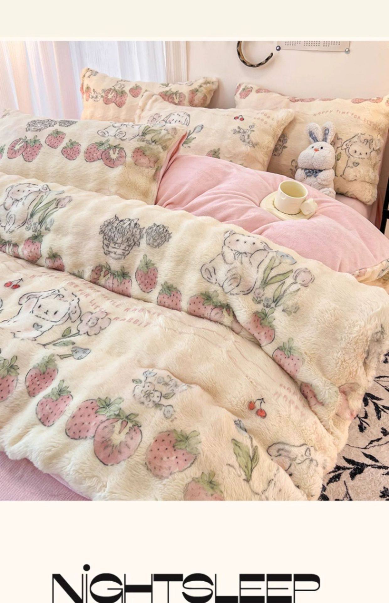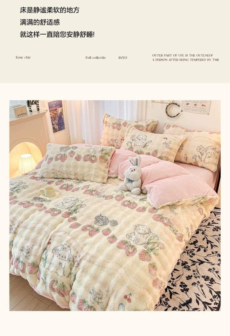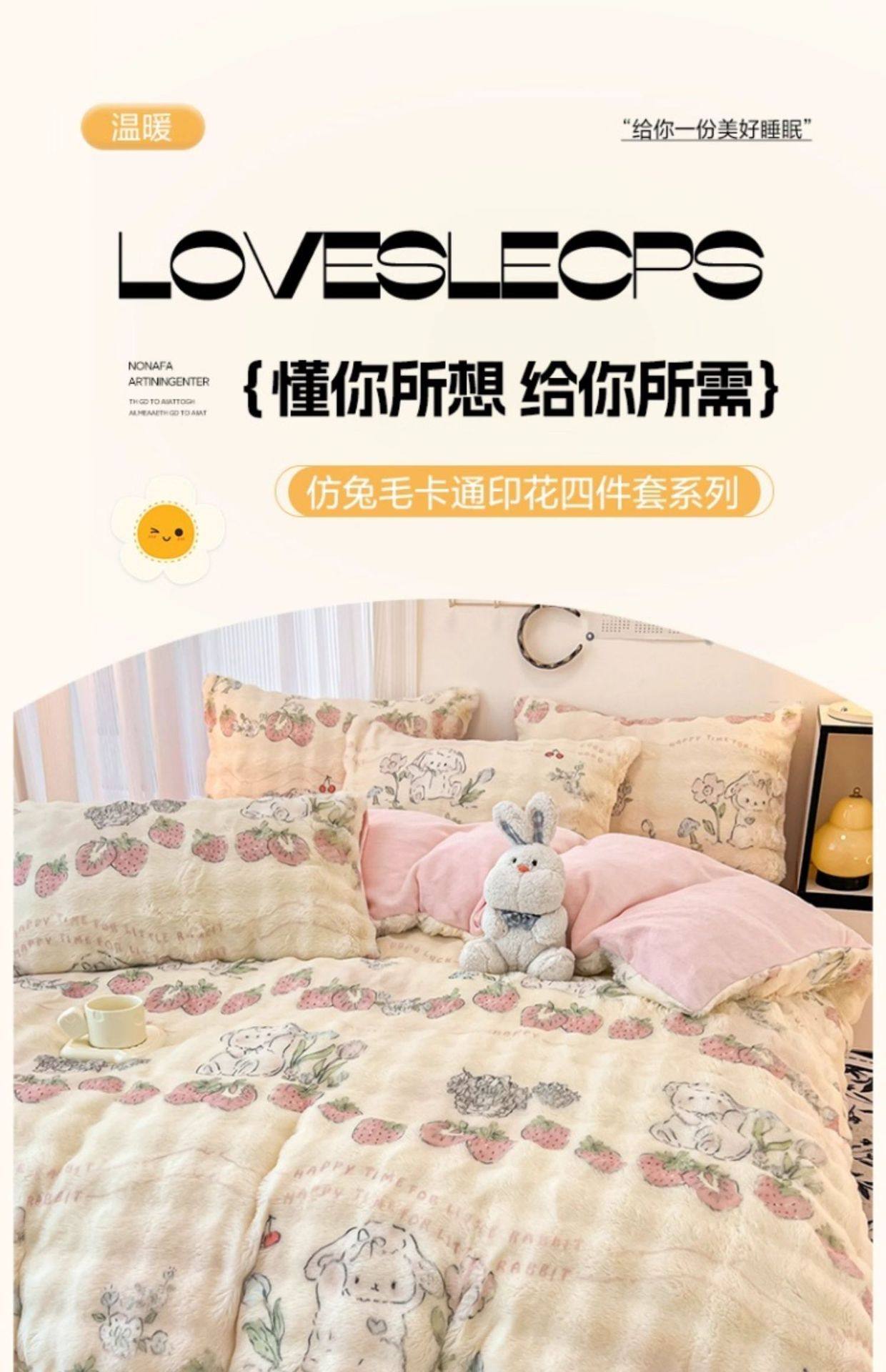 Winter Rabbit Plush Duvet Cover Single Piece Ins Cartoon Milk Coral Fleece Bed Sheet Duvet Cover Three or Four Piece Set Single Thickened