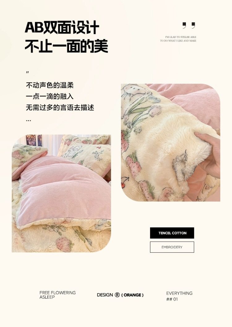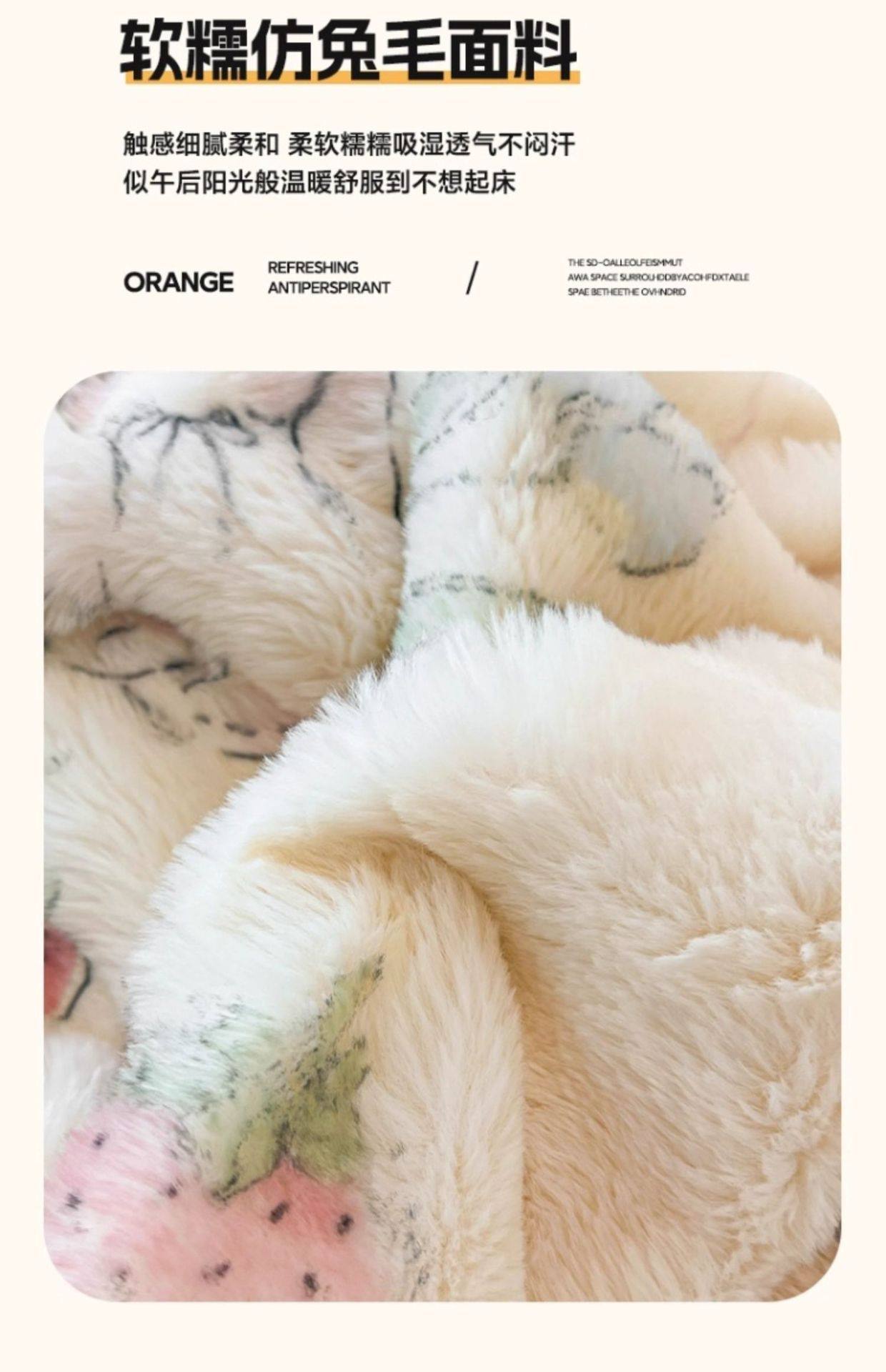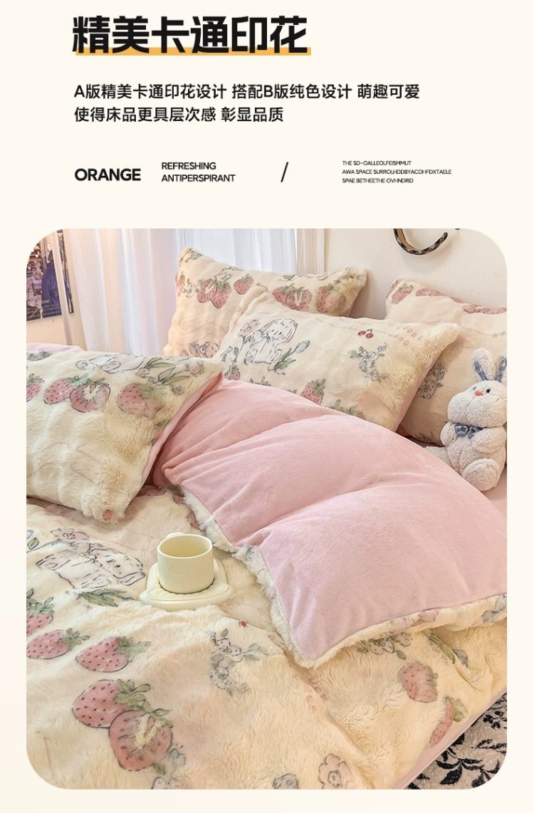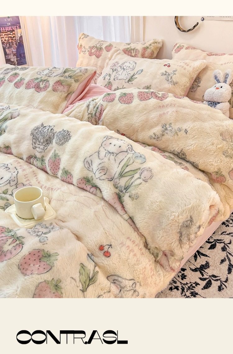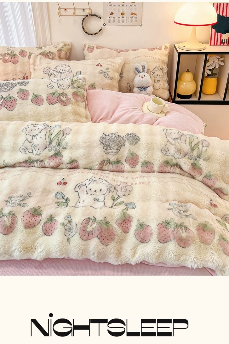 Winter Rabbit Plush Duvet Cover Single Piece Ins Cartoon Milk Coral Fleece Bed Sheet Duvet Cover Three or Four Piece Set Single Thickened