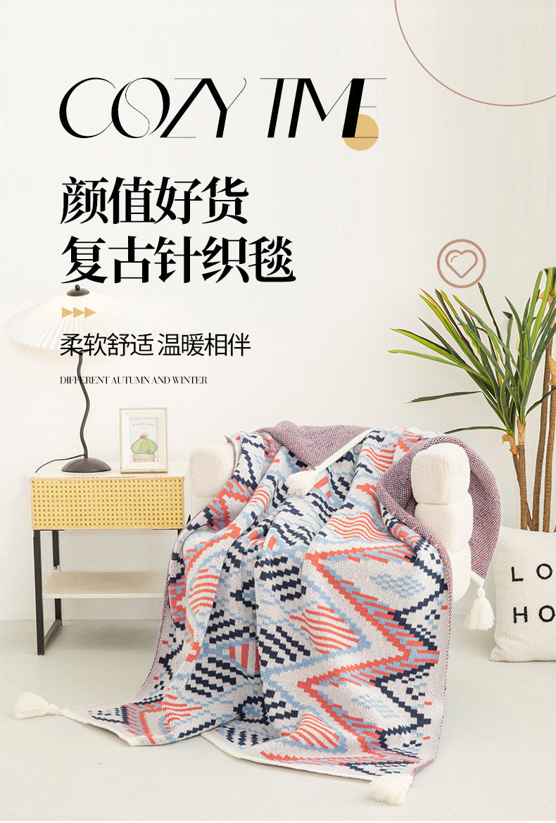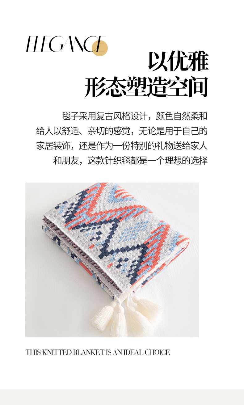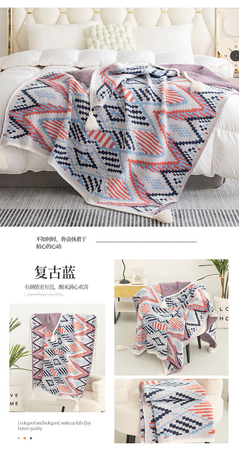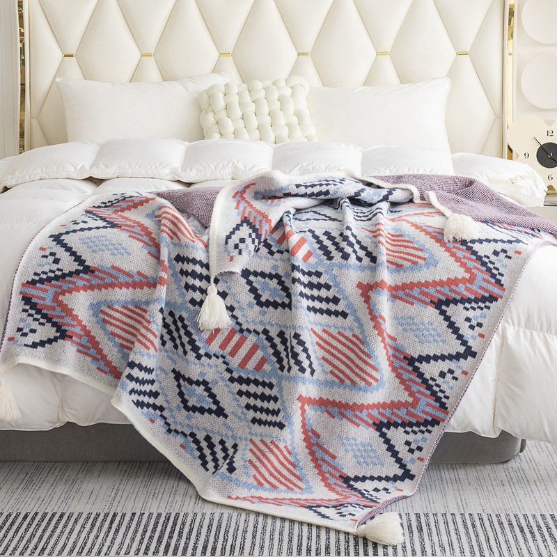 Cross-Border Bohemian Retro Tassel Knitted Blanket Nap Air-Conditioned Blanket Warm Sofa Office Blanket