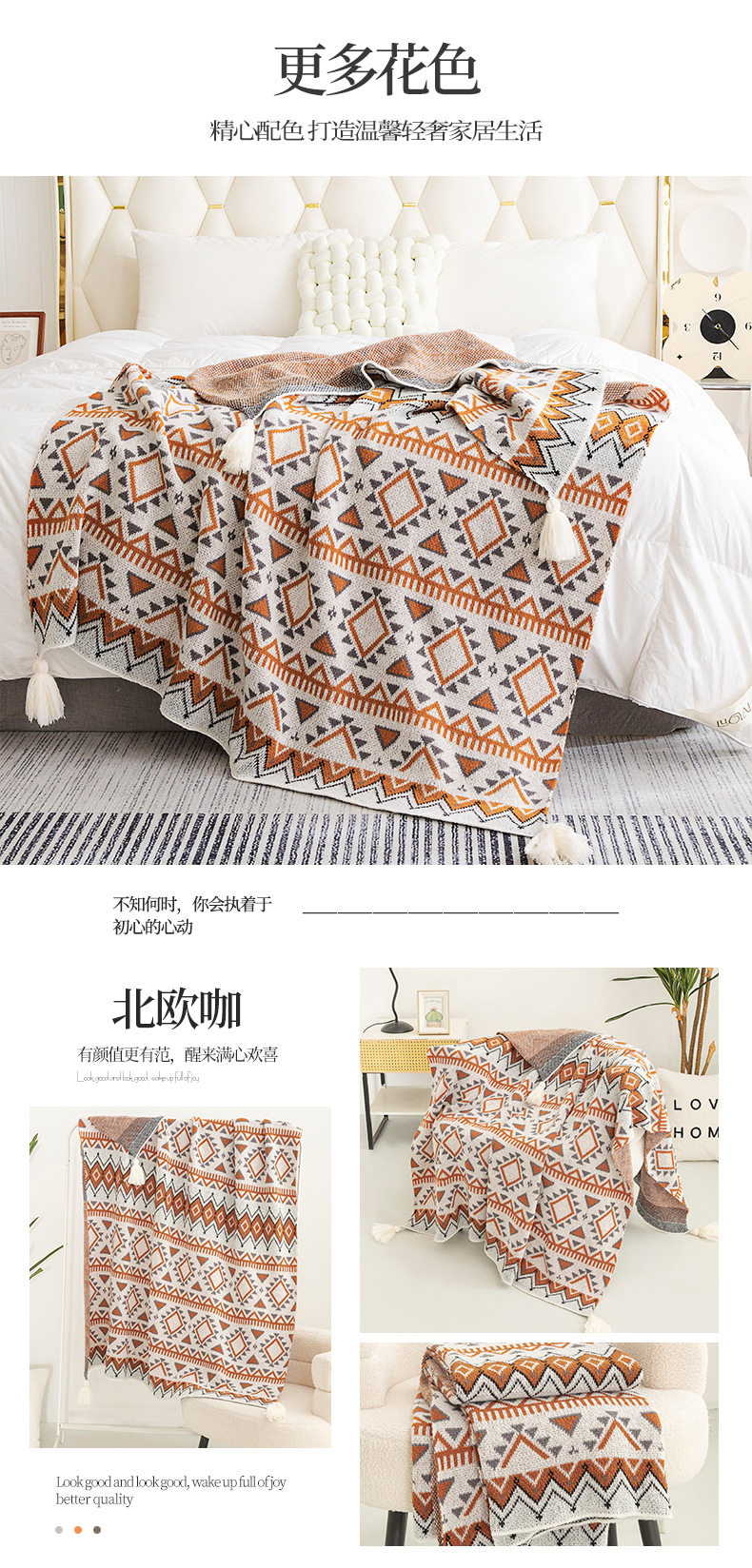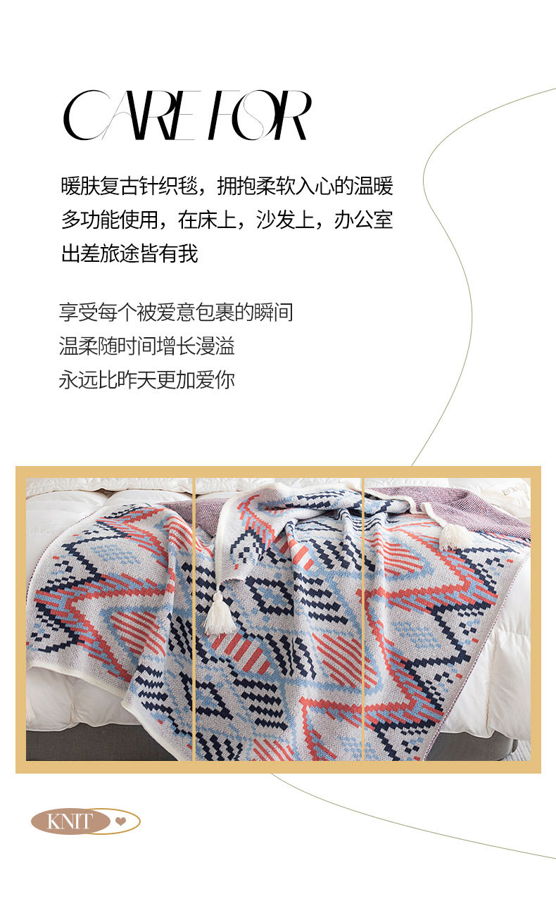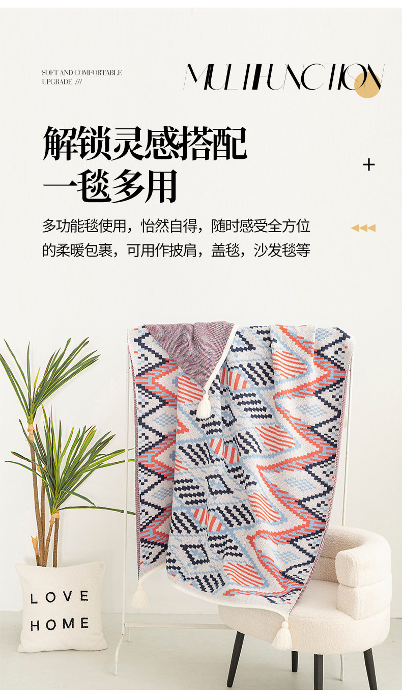 Cross-Border Bohemian Retro Tassel Knitted Blanket Nap Air-Conditioned Blanket Warm Sofa Office Blanket
