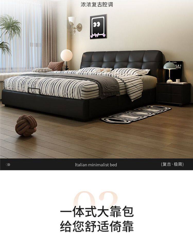 Italian Minimalist Bed Master Bedroom Modern Simple 1.5 Small Apartment Wedding Bed Black Soft Storage Bed Double