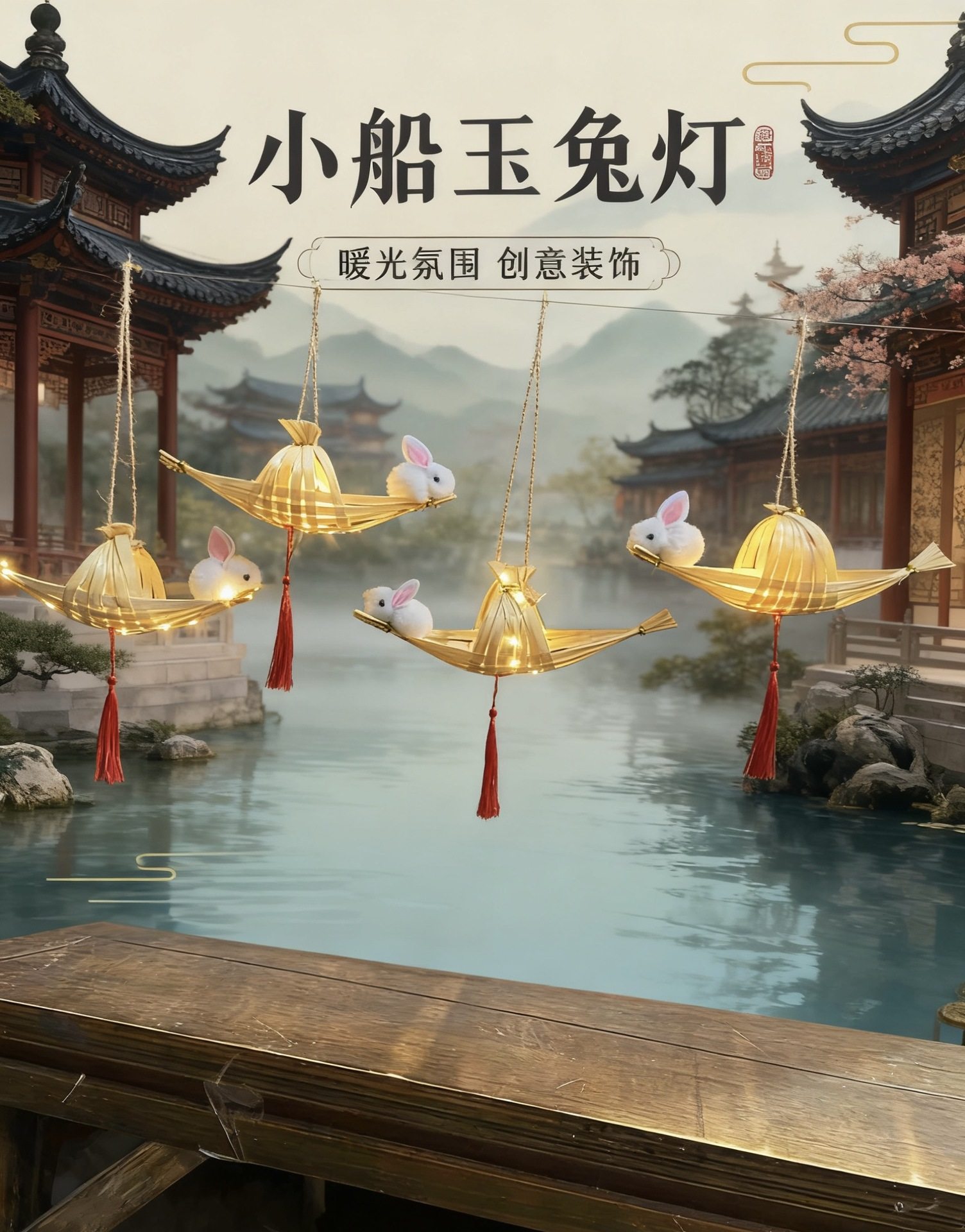 | Color | Glowing bamboo moon boat with jade rabbit accessories,Luminous bamboo moon boat strap accessories,Bamboo moon boat |