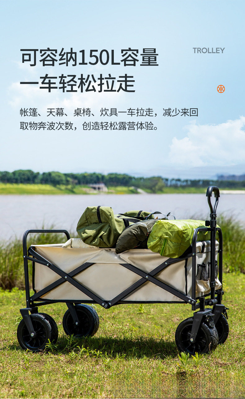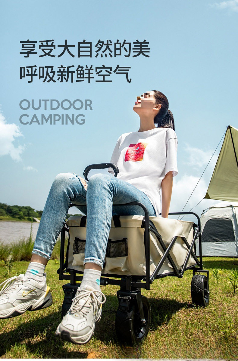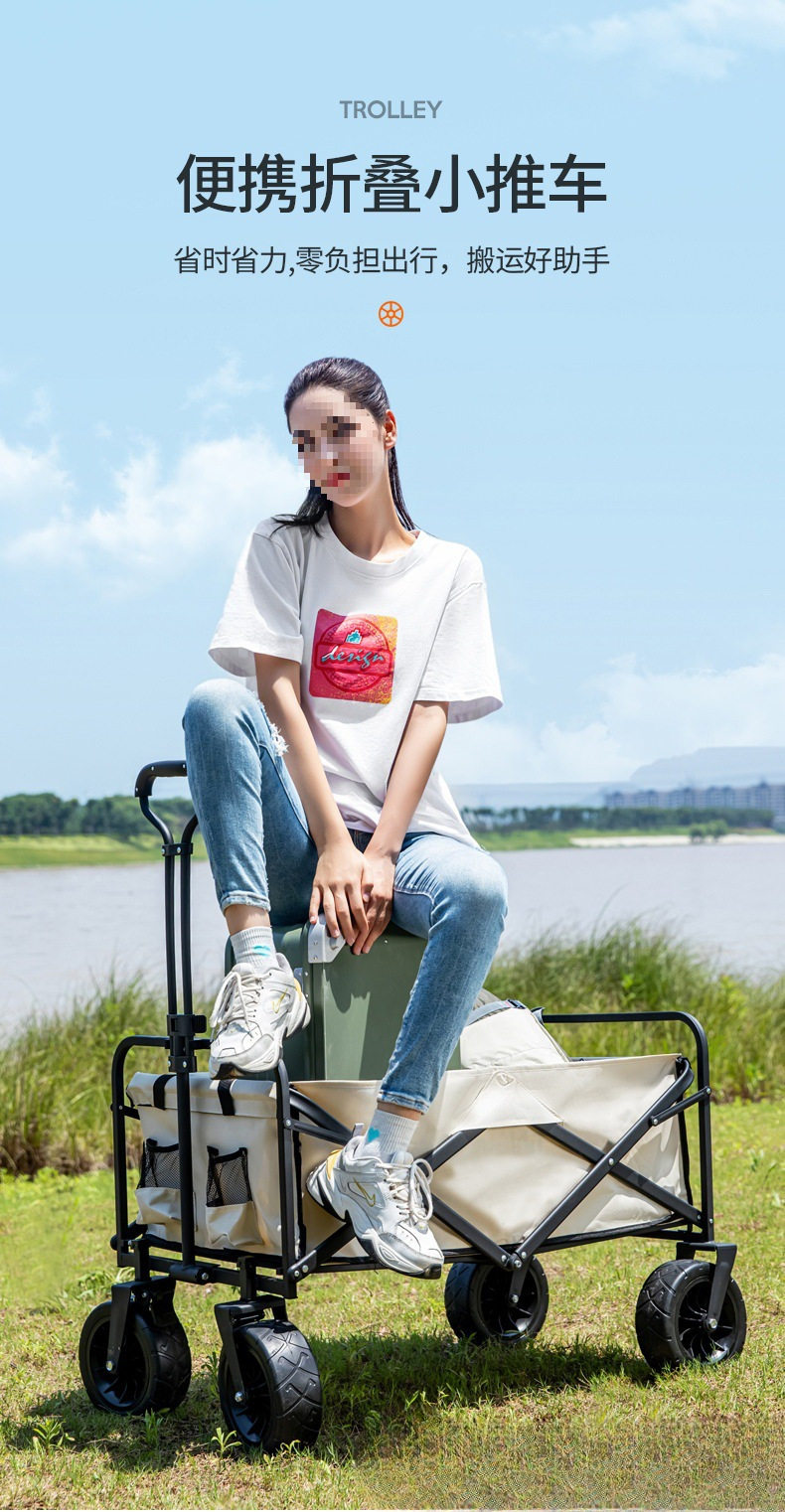 Outdoor Camping Cart Folding Cart Camping Trailer Portable Shopping Cart Children's Sit-Down Cart