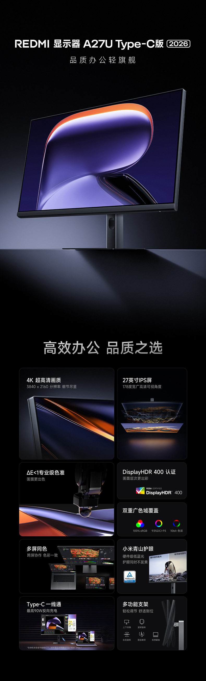 Redmi Monitor A27U Type-C Version 2026 Ultra-Clear 4K Office Fast Charging High Color Accuracy Eye Protection Monitor