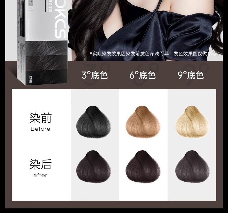 | Special makeup product name | Okcs jingcai hair color cream-gothic cold black |