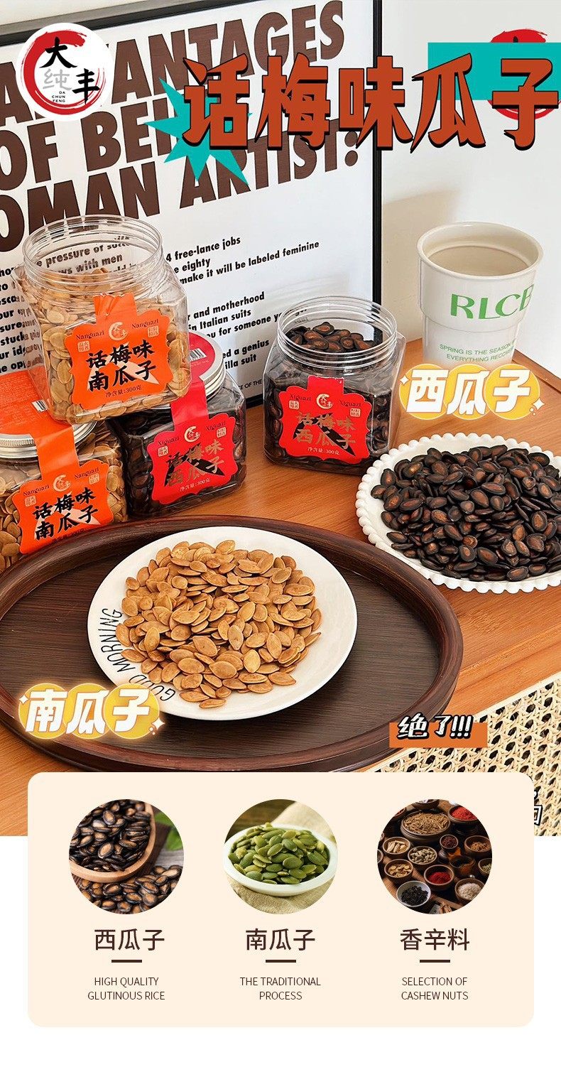 Dachunfeng Plum Flavor Watermelon Seeds 300g Canned Pumpkin Seeds Snack Roasted Nuts New Year Food Dried Fruit