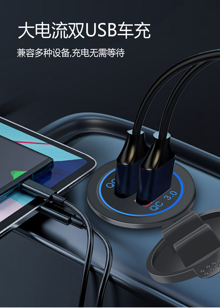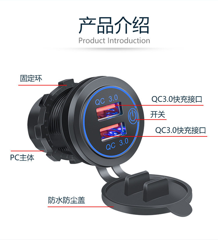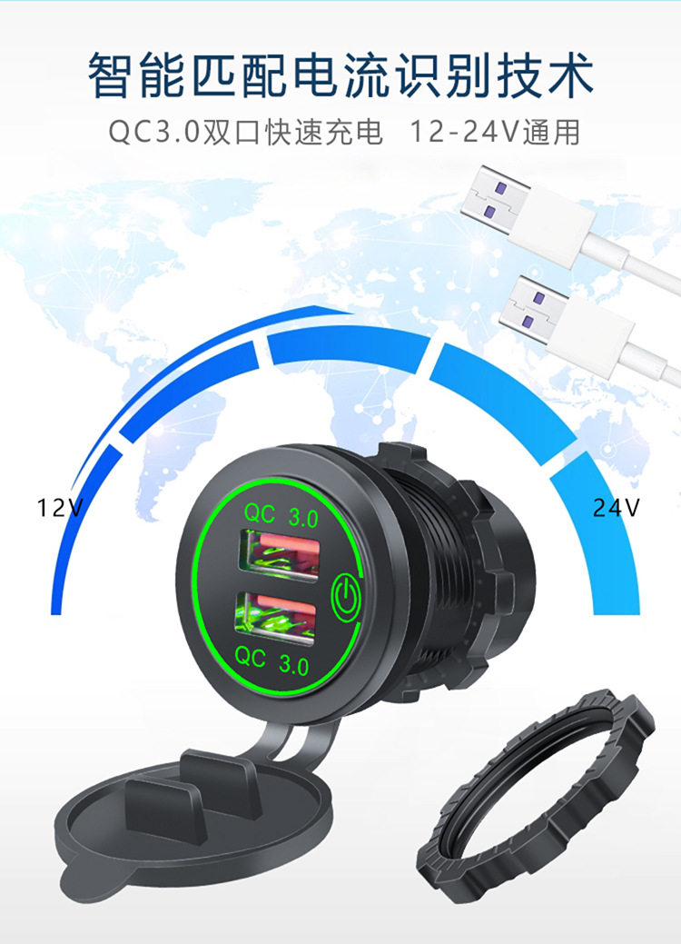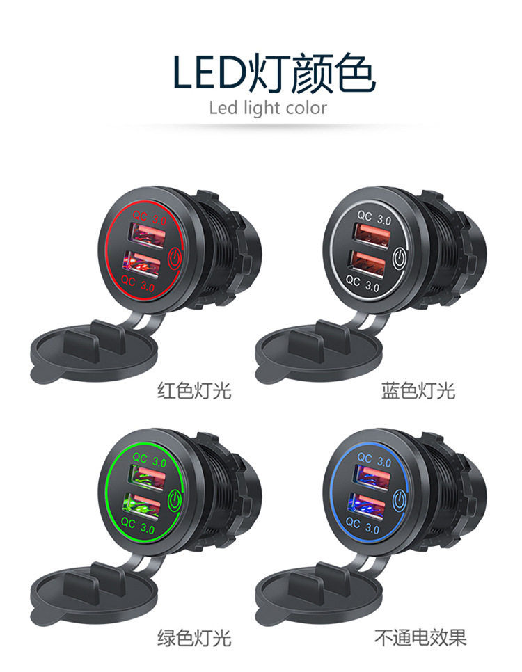 Cross-Border New Product for Automobiles, Motorcycles and Boats, Dual USB Modified Car Charger, Dual Qc36W with Switch/Without Switch