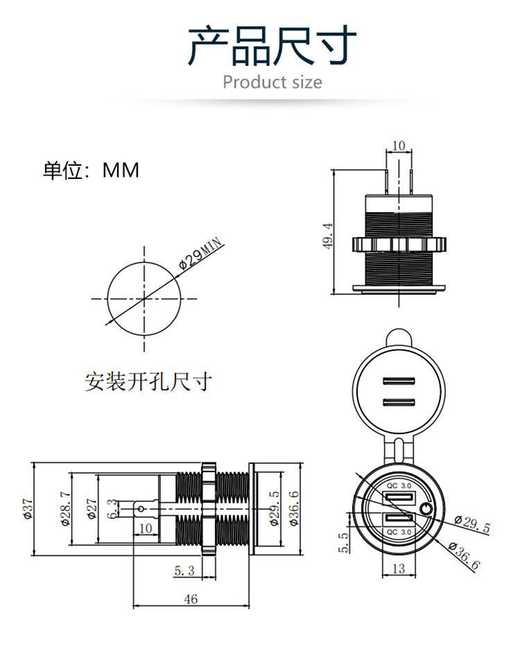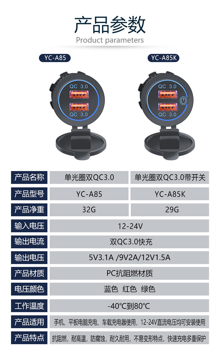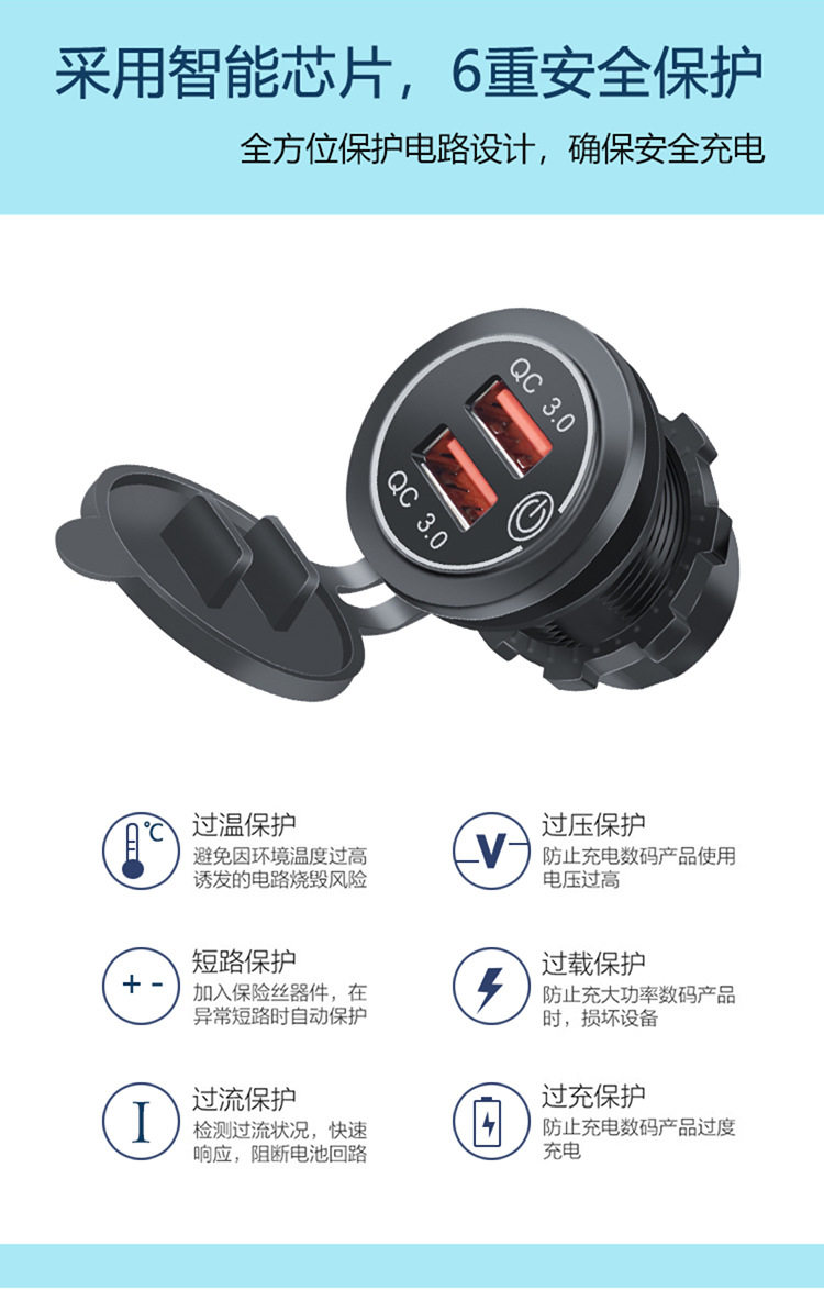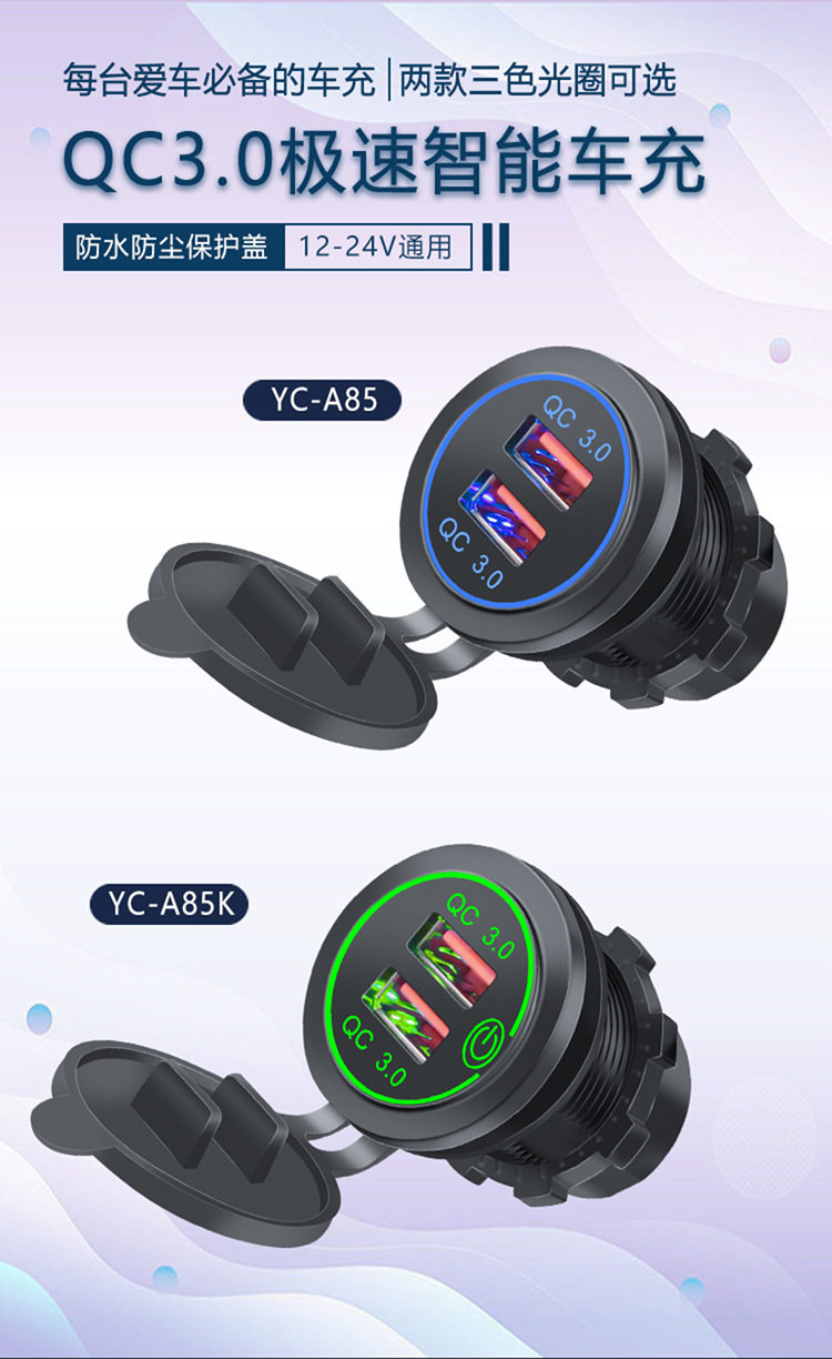 Cross-Border New Product for Automobiles, Motorcycles and Boats, Dual USB Modified Car Charger, Dual Qc36W with Switch/Without Switch