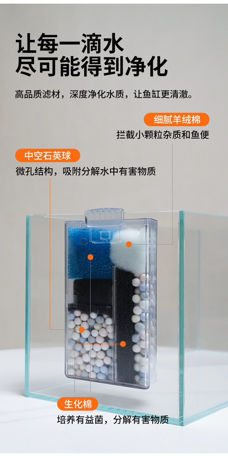 Creative Aquarium Interior Filter Set for Fish Tank, Small Desktop Ultra-Clear Glass Living Room Home Use
