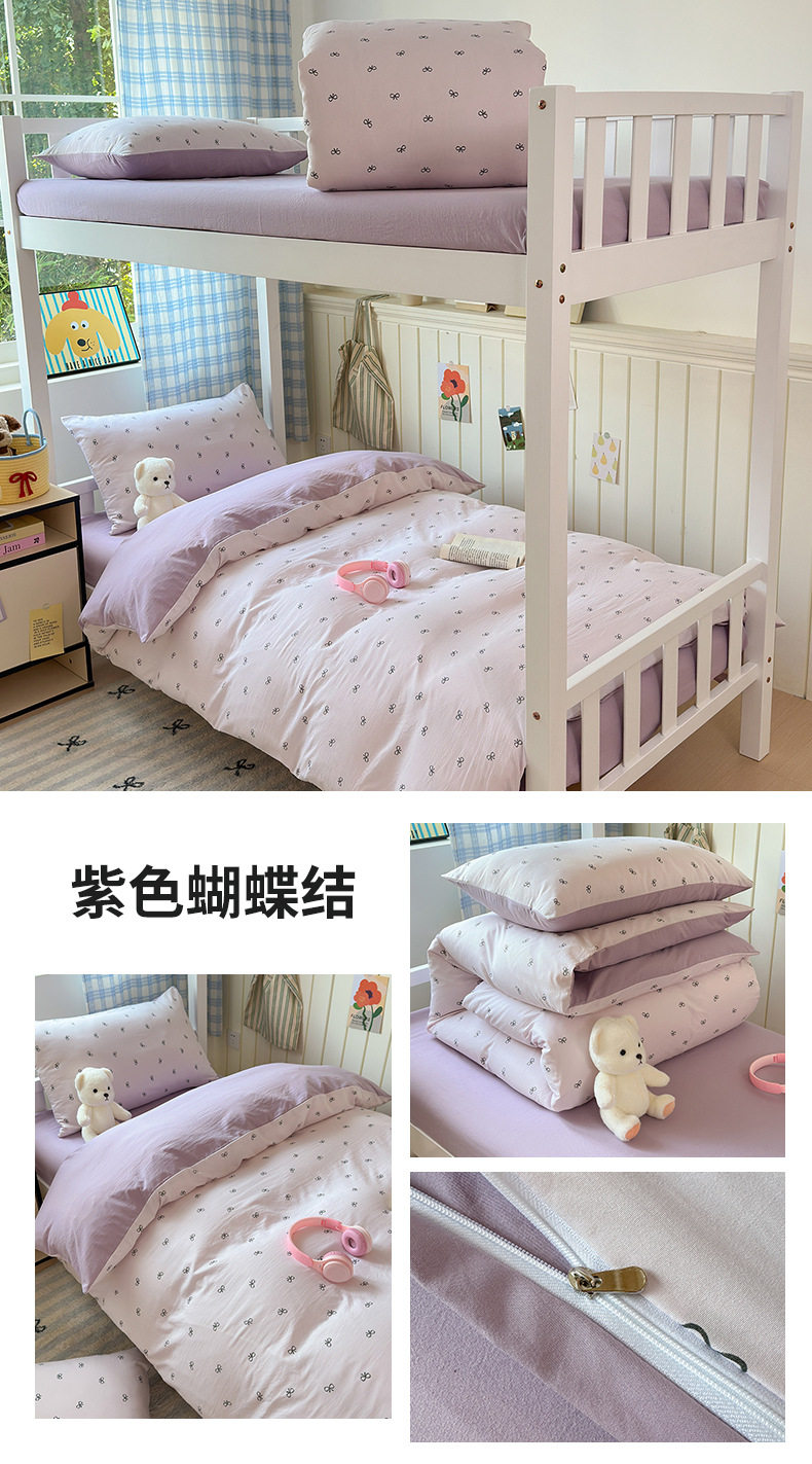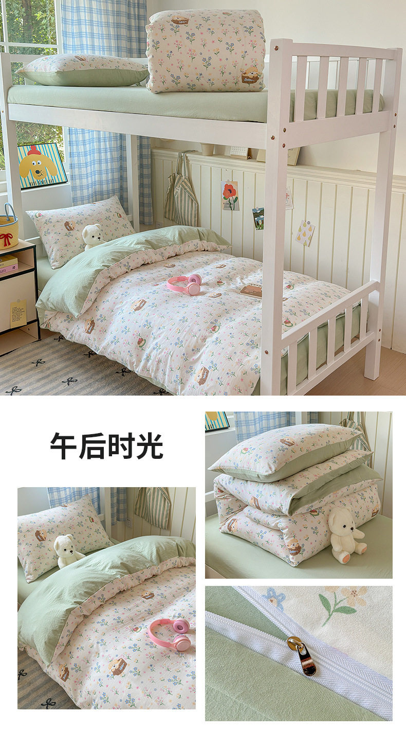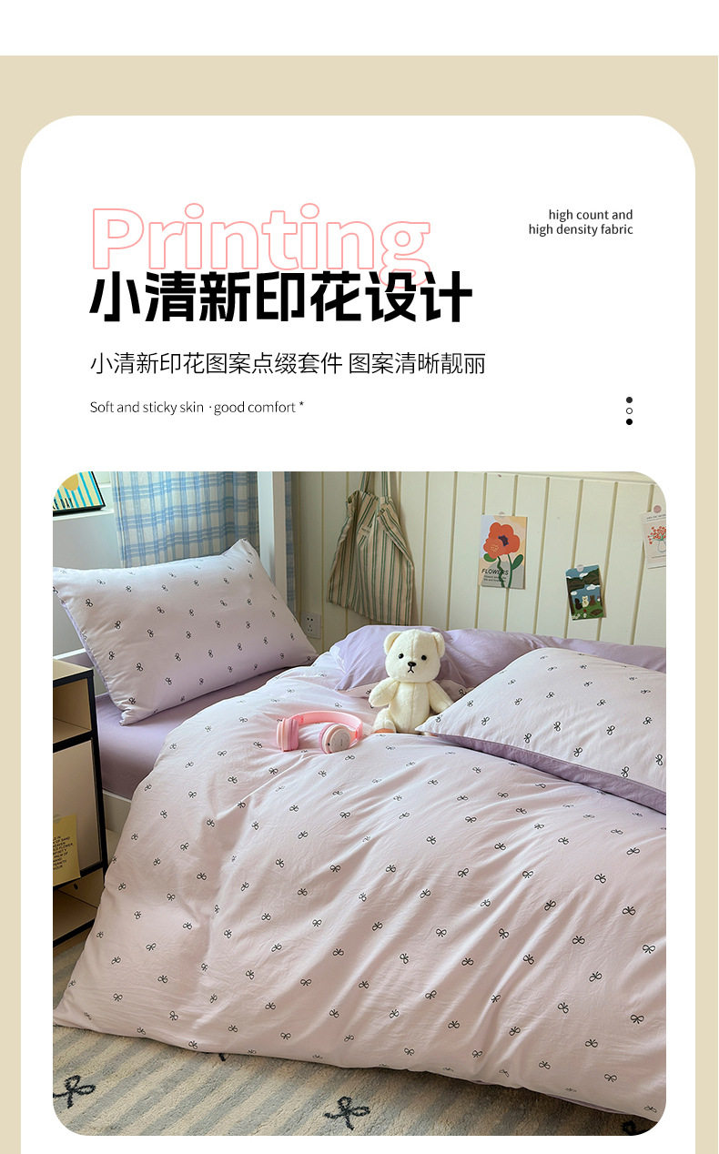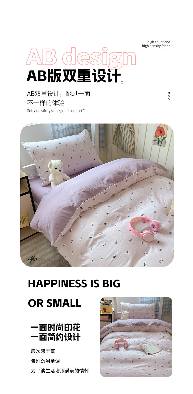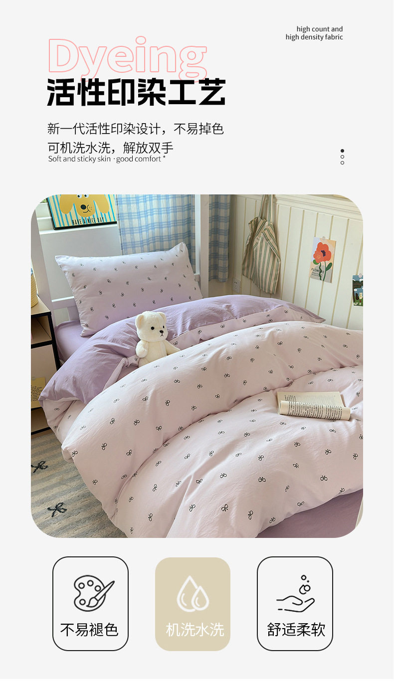 Class a Washed Cotton Four-Piece Set Pure Cotton Small Fresh Cotton Bed Bed Sheetss and Quilt Covers Student Dormitory Bedding Three-Piece Set 4
