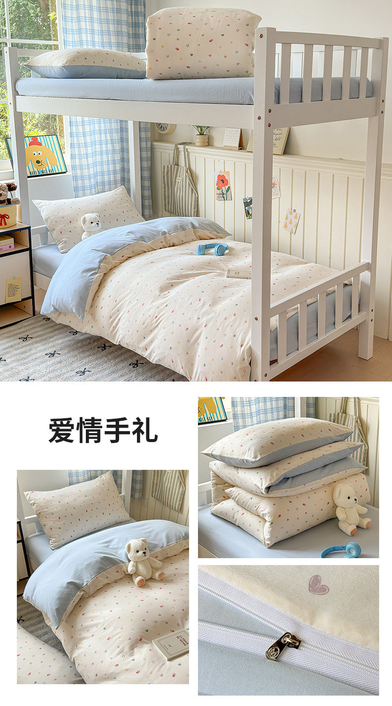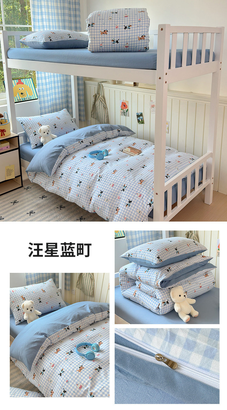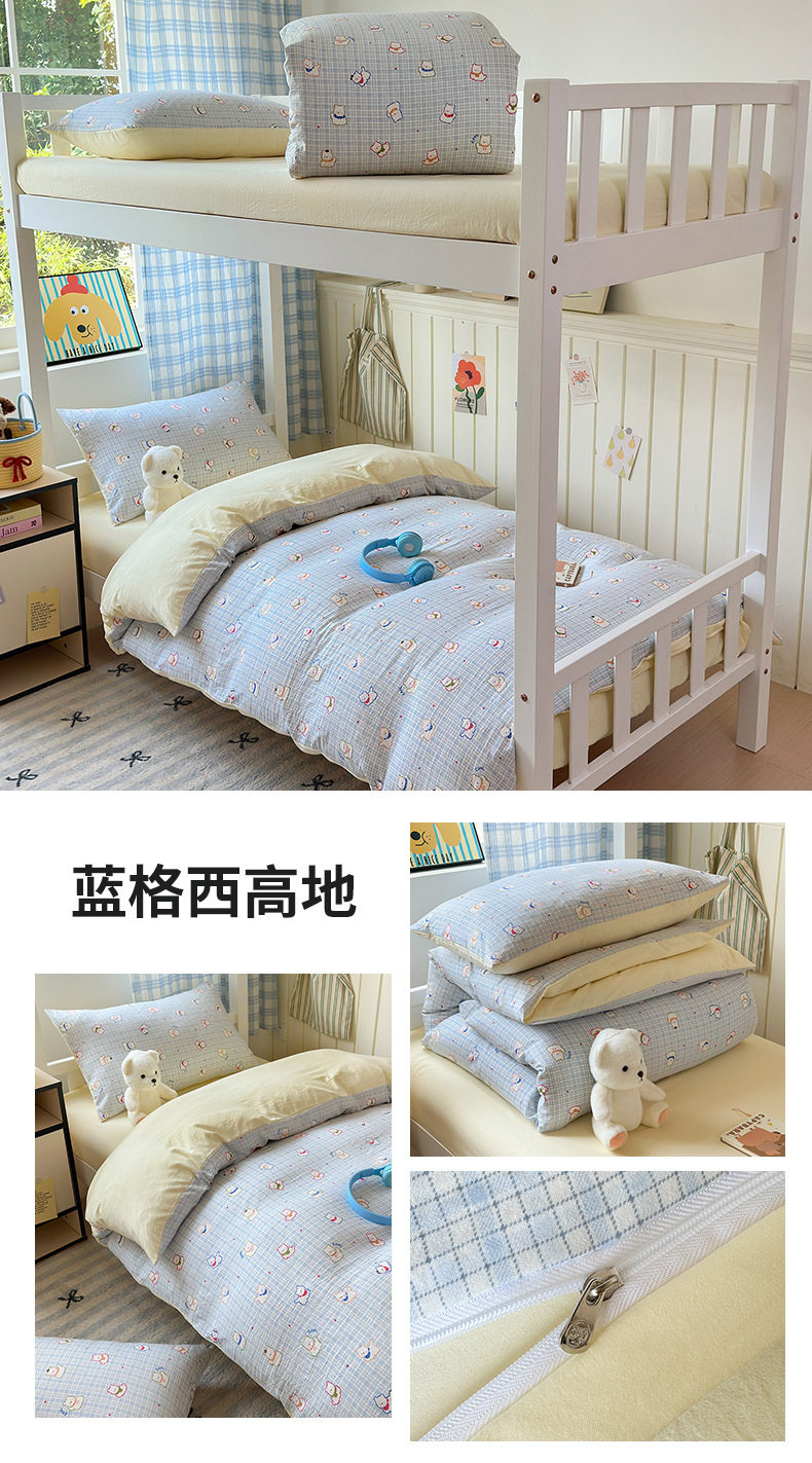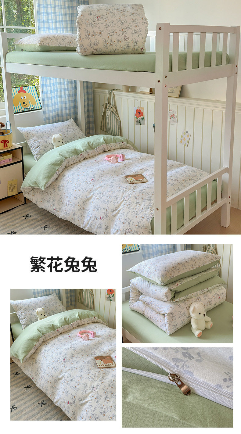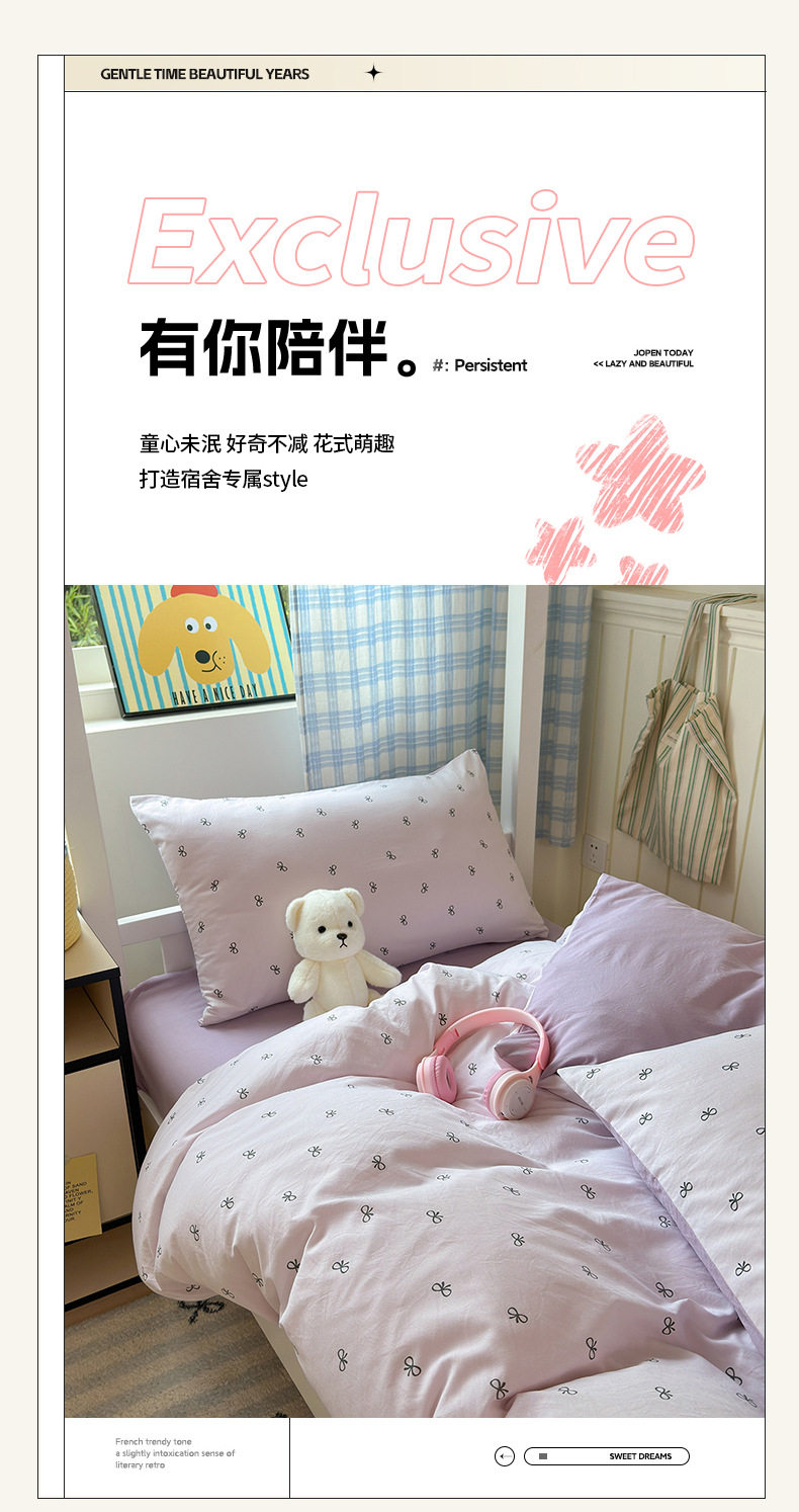 Class a Washed Cotton Four-Piece Set Pure Cotton Small Fresh Cotton Bed Bed Sheetss and Quilt Covers Student Dormitory Bedding Three-Piece Set 4