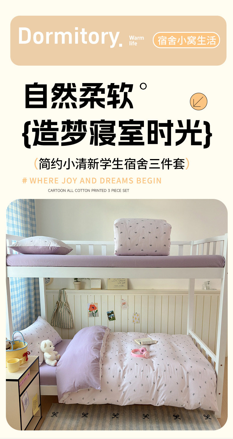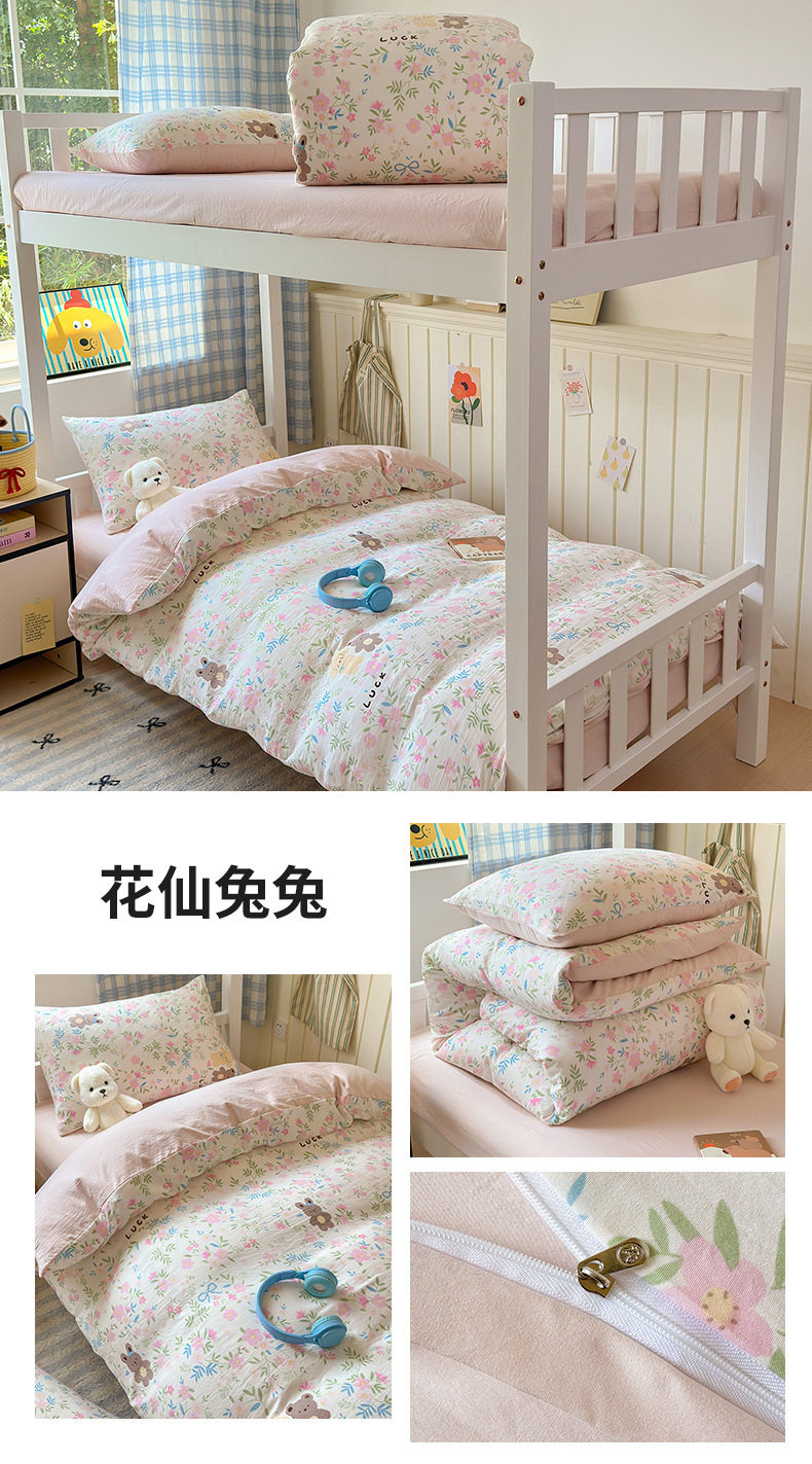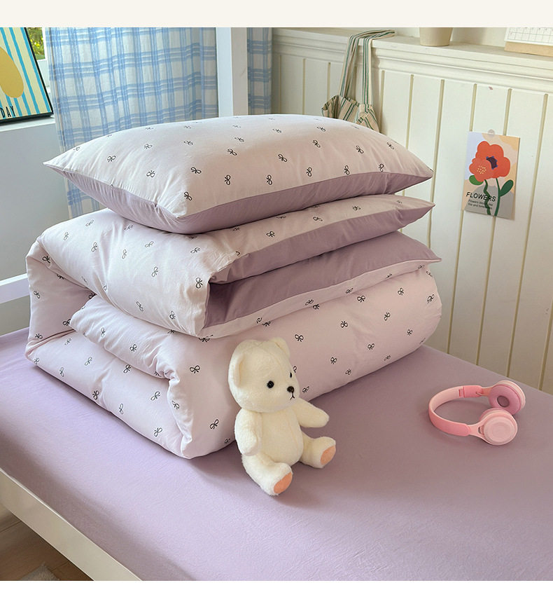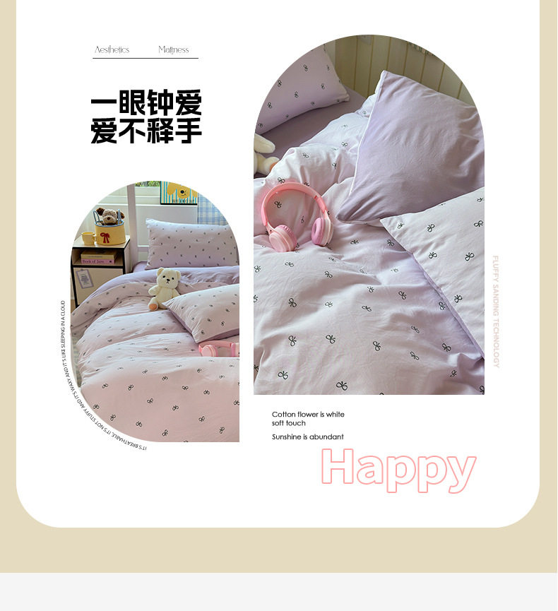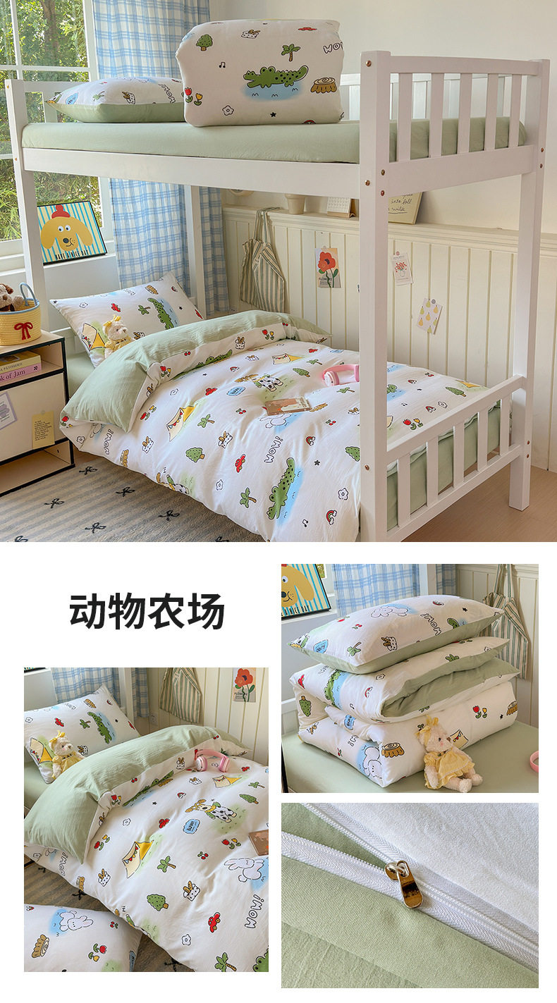 Class a Washed Cotton Four-Piece Set Pure Cotton Small Fresh Cotton Bed Bed Sheetss and Quilt Covers Student Dormitory Bedding Three-Piece Set 4