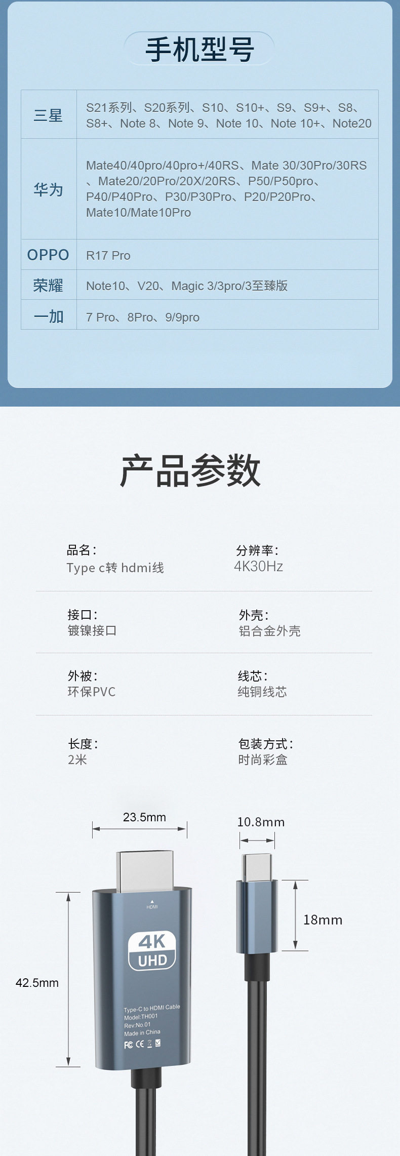 | Connecting cable | Type-c to hdmi conversion cable |