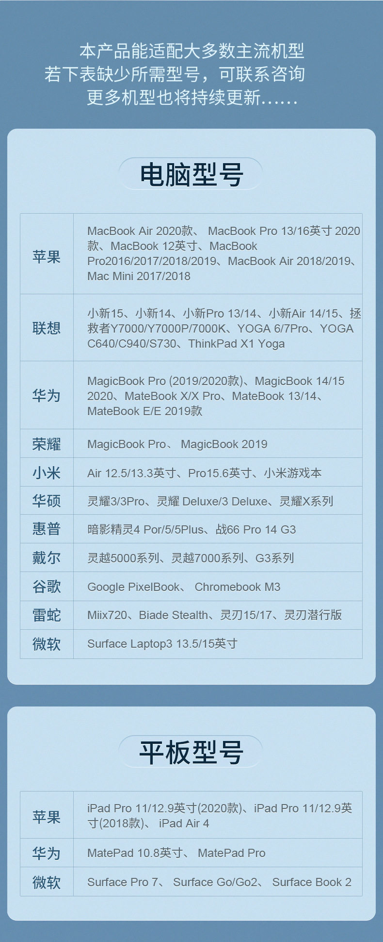 | Applicable equipment | Laptop cell phone tablet projector |